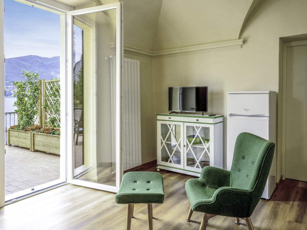 "Verde", 3-Zimmer-Wohnung 60 m2 im 2. Stock. Vollständig renoviert im Jahre 2020, komfortabel eingerichtet: Eingang. Wohn-/Esszimmer mit 1 Doppeldiwanbett und Sat-TV. Ausgang zur Terrasse. 1 Doppelzimmer. 1 Zimmer mit 2 Betten. Kochnische (Geschirrspüler, 4 Induktionskochplatten, Mikrowelle, Tiefkühler, elektrische Kaffeemaschine). Dusche/Bidet/WC. G-Heizung. Parkettböden. Terrasse 25 m2. Terrassenmöbel. Sehr schöne Sicht auf den See. Zur Verfügung: Waschmaschine, Haartrockner. Internet (Wireless LAN, gratis). CIR:012114-CNI-00068