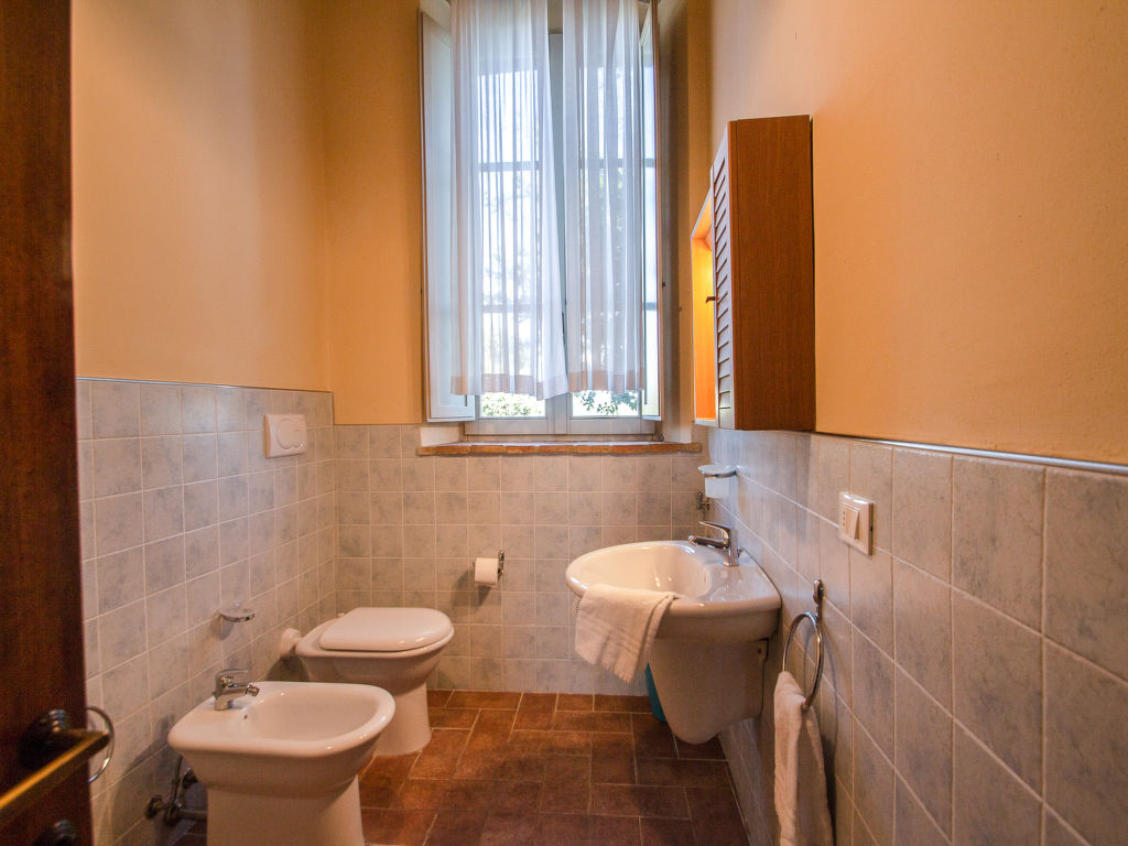 "Tenuta per 18 pax", 13-Zimmer-Wohnung 410 m2 auf 2 Stockwerken, im Erdgeschoss. Objekt geeignet für 18 Erwachsene. Zweckmässig und geschmackvoll eingerichtet: Wohnzimmer mit TV. 1 Doppelzimmer. 1 Zimmer mit 2 Betten. Wohn-/Esszimmer mit TV. 1 Doppelzimmer. Kochnische (4 Kochplatten, Backofen, Tiefkühler). 3 Duschen/Bidet/WC. Obergeschoss: grosses Wohn-/Esszimmer mit TV. 1 Doppelzimmer. 1 Doppelzimmer. 1 Zimmer mit 2 Betten. Grosses Wohn-/Esszimmer mit TV. 1 Doppelzimmer. 1 Doppelzimmer. 1 Zimmer mit 2 Betten. Küche (4 Kochplatten, Backofen, Geschirrspüler, Tiefkühler). 2 Bäder/Bidet/WC, 2 Duschen/Bidet/WC. Garten. Terrassenmöbel, Gartengrill. Zur Verfügung: Kinderhochstuhl, Babybett bis 2 Jahre. Internet (Wireless LAN, gratis). 1 Haustier/Hund erlaubt. Innerhalb des Hofes, getrennt von den Wohnungen, ein Esszimmer mit einer Küchenzeile (05 Brenner, Backofen, Geschirrspüler, Kühlschrank) für 18 Personen.