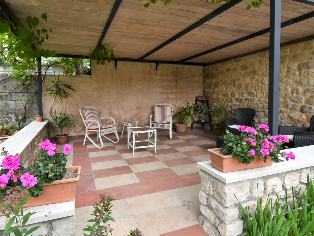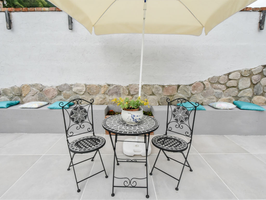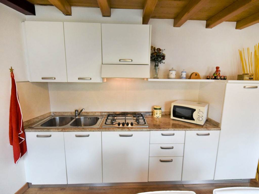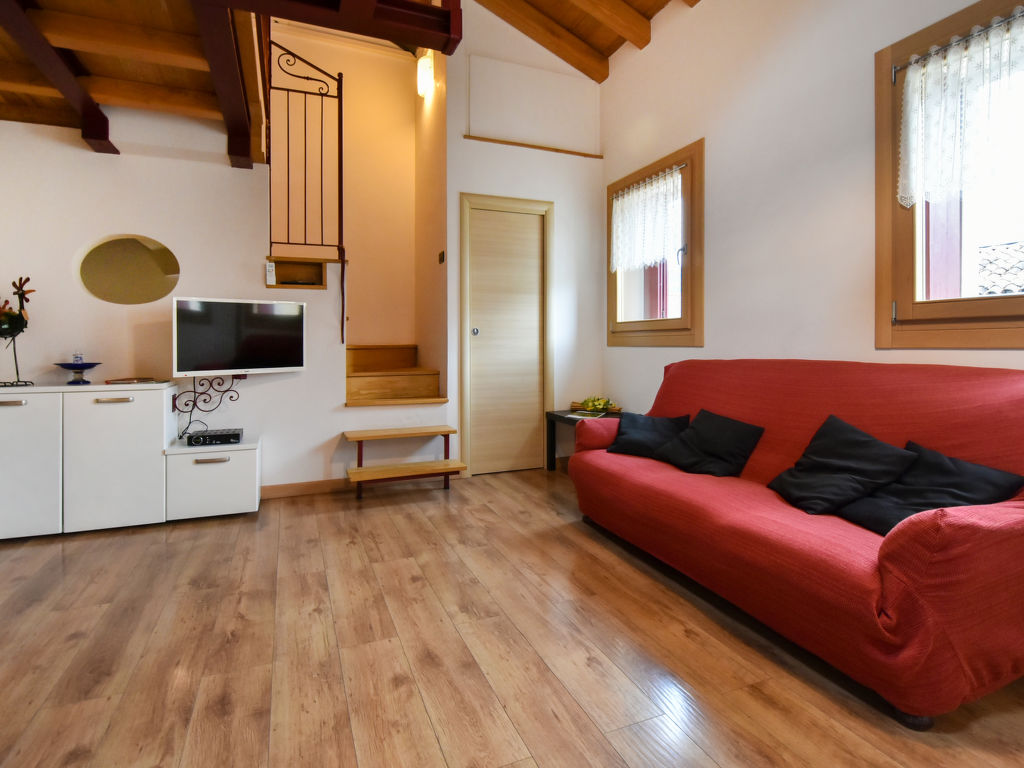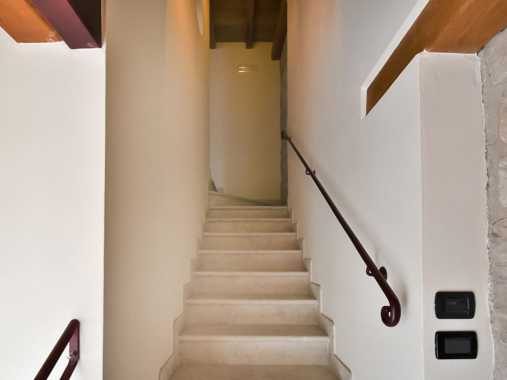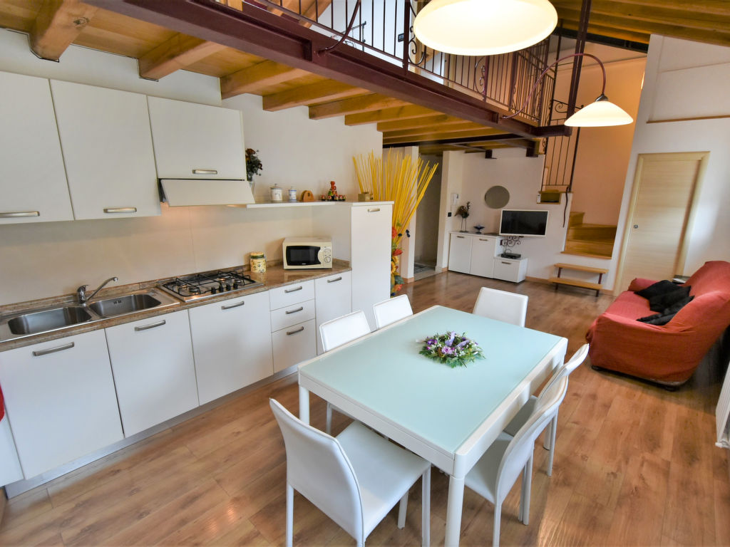 "Gustet Quadri 5", 4-Zimmer-Wohnung 80 m2 auf 2 Stockwerken im 1. Stock. Geräumig und hell, teilweise abgeschrägt, zweckmässig und komfortabel eingerichtet: grosses Wohn-/Esszimmer mit Esstisch und TV (Flachbildschirm). Ausgang zum Garten. 1 Doppelzimmer. Kochnische (4 Flammen, Toaster, Wasserkocher, Mikrowelle, Tiefkühler). Dusche/Bidet/WC. Obergeschoss: offene Galerie mit Dachfenster mit 2 Betten. 1 abgeschrägtes Zimmer mit Dachfenster mit 1 Bett und sep. WC. Heizung, Klimaanlage (extra). Parkettböden. Terrassenmöbel, Liegestühle. Zur Verfügung: Waschmaschine, Haartrockner. Internet (Wireless LAN, gratis). Bitte beachten: Nichtraucher-Haus. CIR: M0260420010