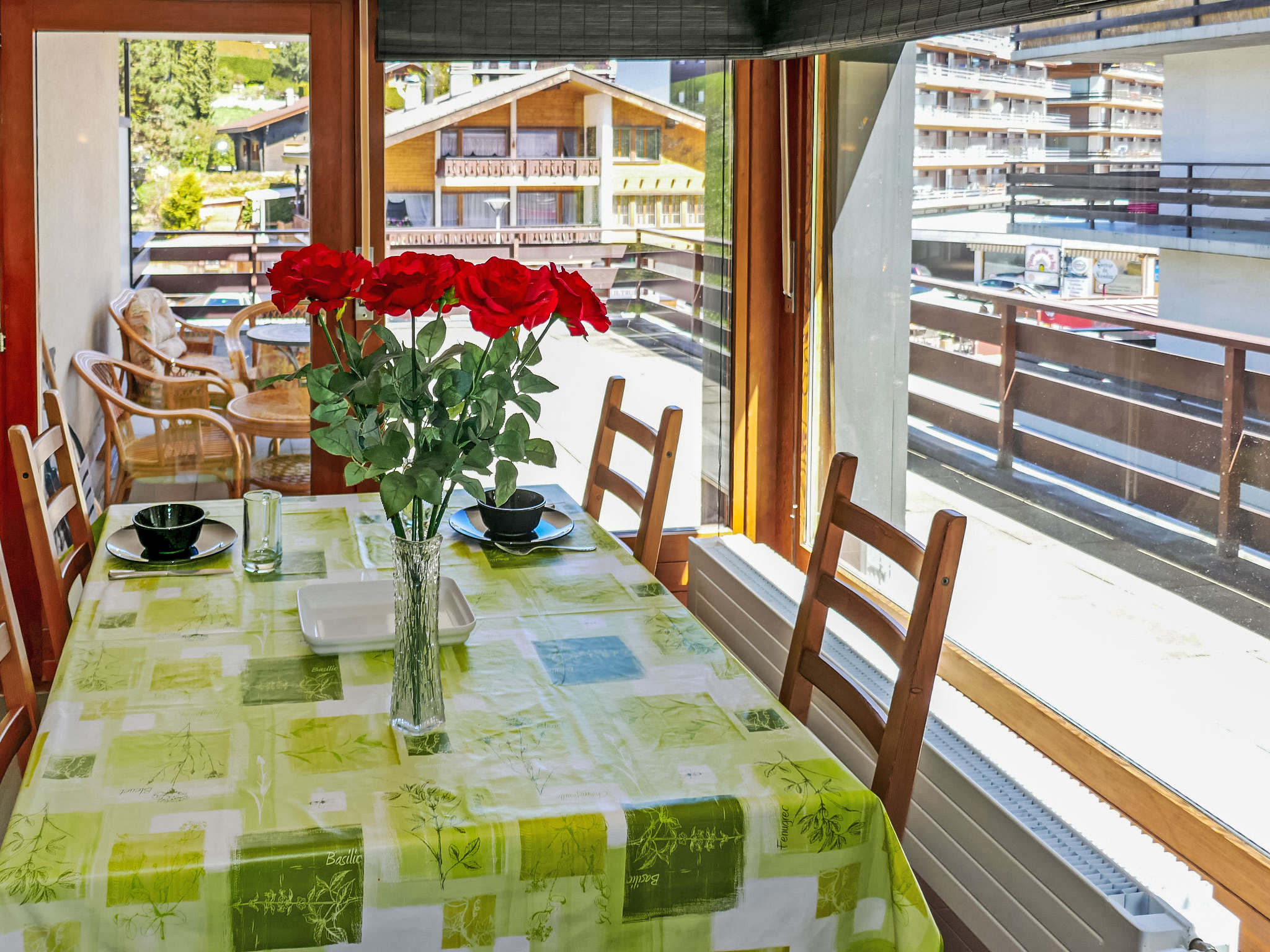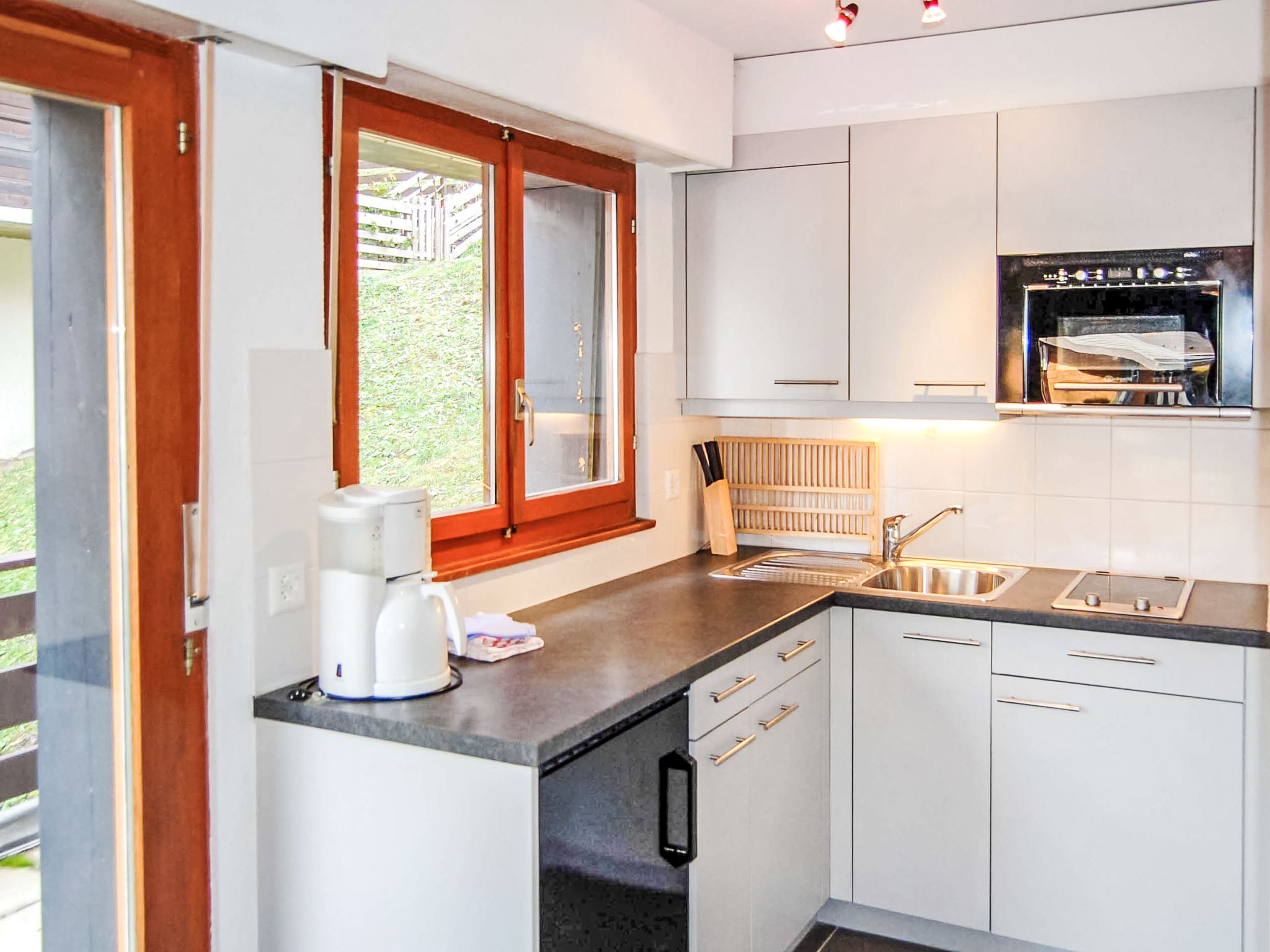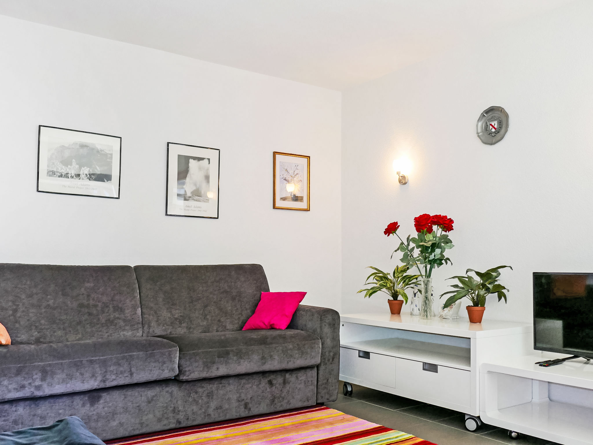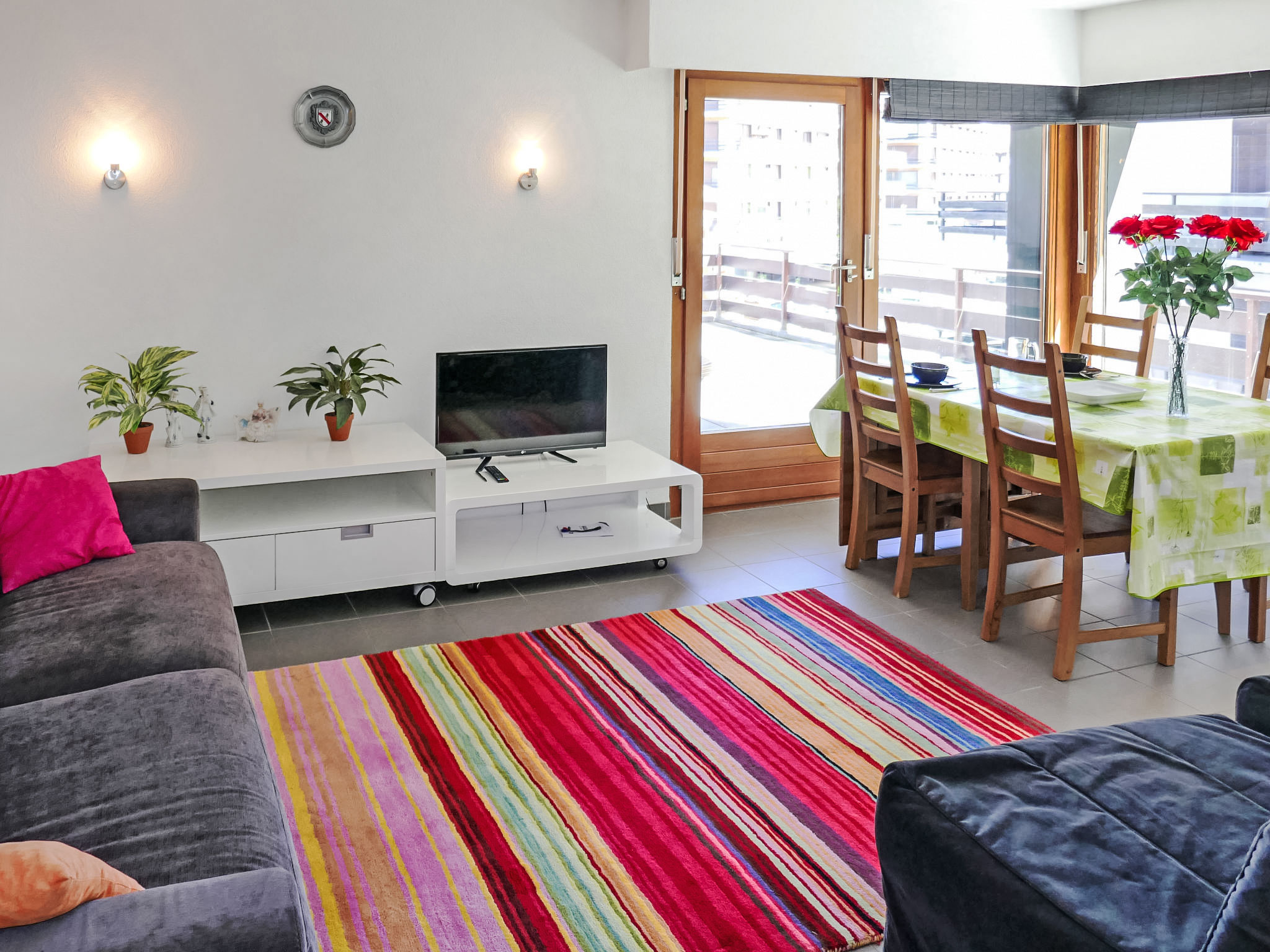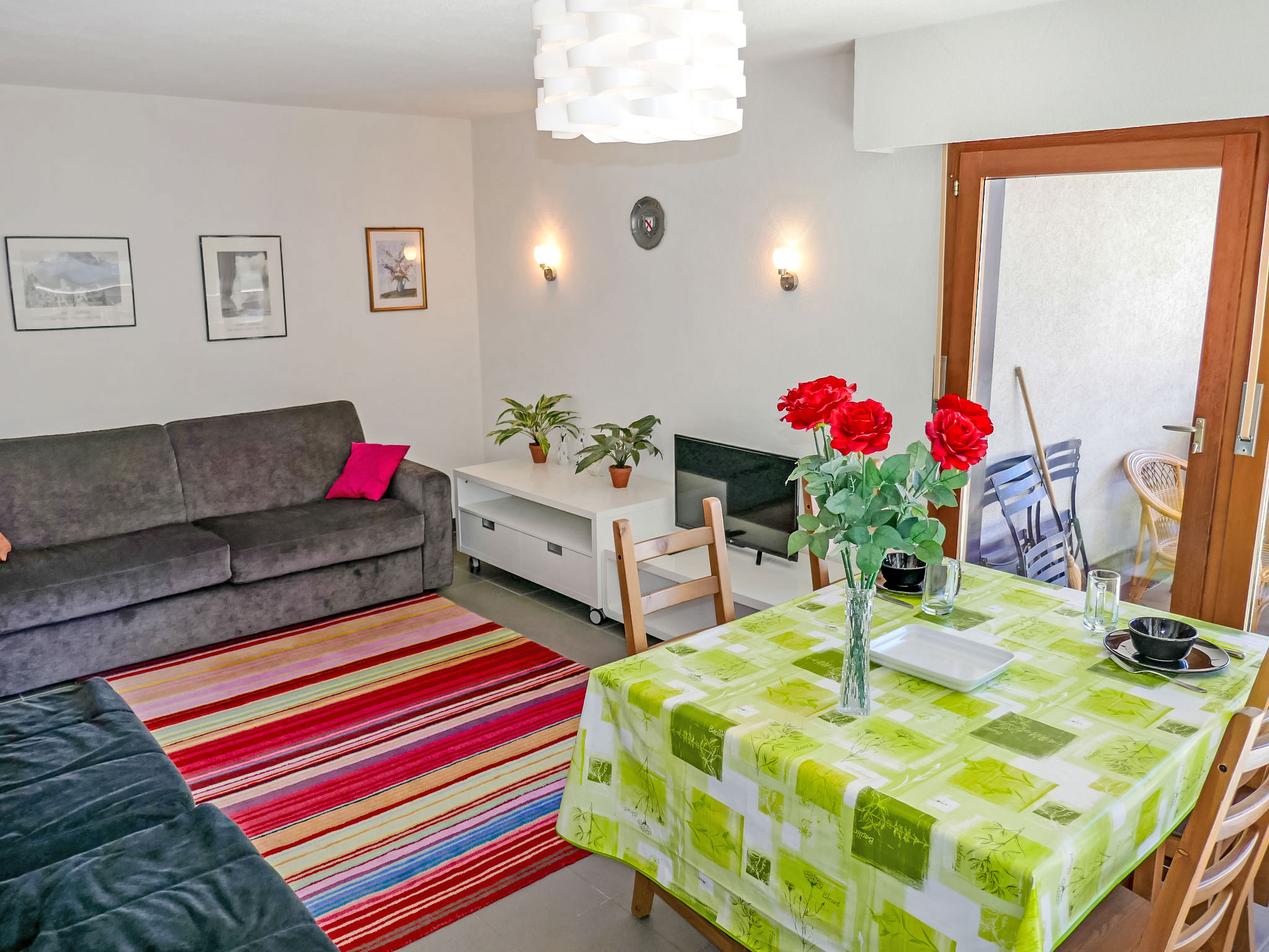 "Zanfleuron A1", 1-Zimmer-Wohnung 30 m2 im 1. Stock. Komfortabel eingerichtet: Wohn-/Schlafzimmer mit 1 Diwanbett (140 cm, Länge 190 cm), Kabel-TV. Ausgang zur Terrasse. Offene Küche (2 Glaskeramikherd Platten, Mikrowelle, Fondue Set (Käse)). Bad/WC. Grosse Terrasse, Nordostlage. Balkonmöbel. Sicht auf die Ortschaft. Zur Verfügung: Haartrockner. Internet (Wireless LAN, gratis). Bitte beachten: Nichtraucher-Unterkunft. 1 Haustier/Hund erlaubt.