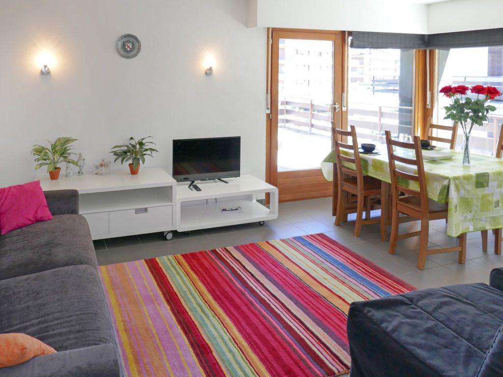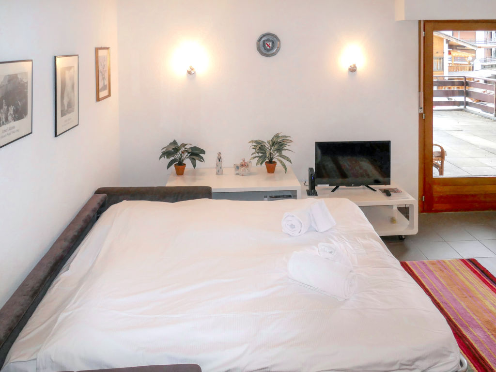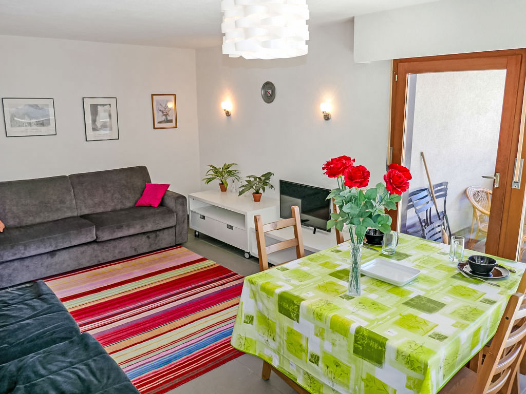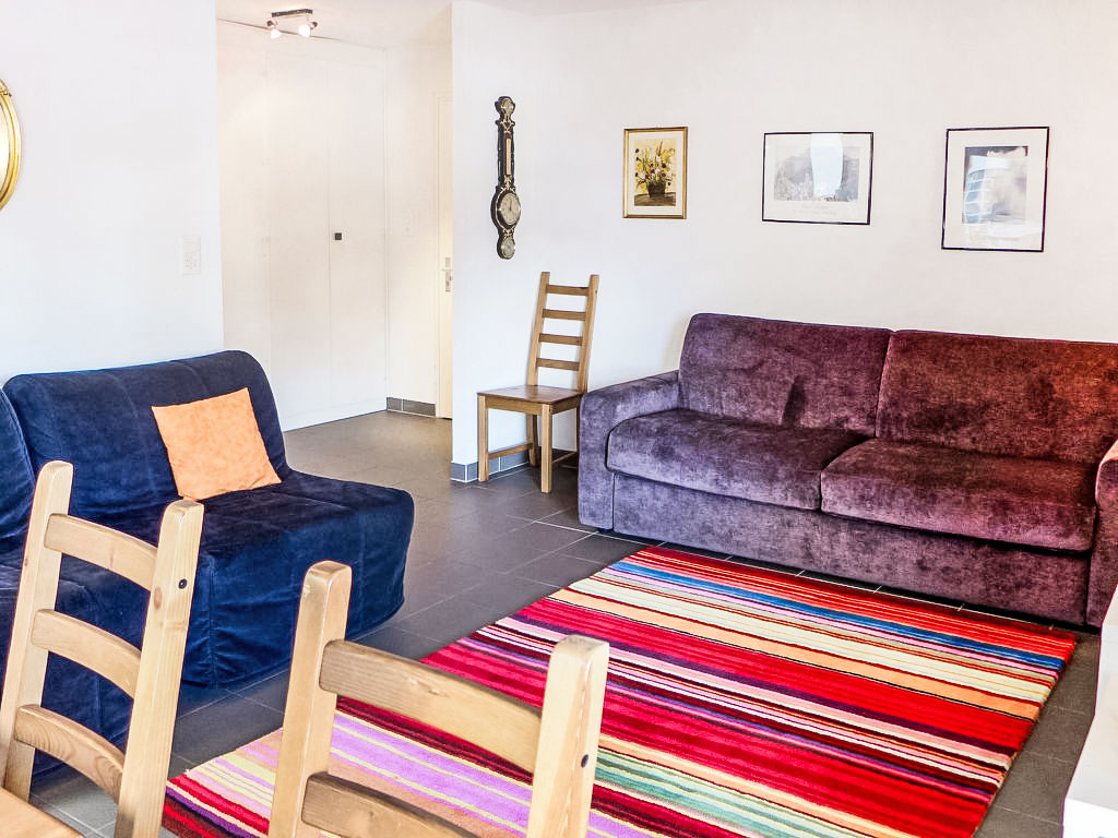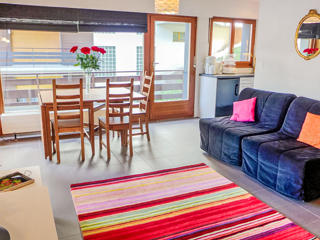 "Zanfleuron A1", 1-Zimmer-Wohnung 30 m2 im 1. Stock. Komfortabel eingerichtet: Wohn-/Schlafzimmer mit 1 Diwanbett (140 cm, Länge 190 cm), Kabel-TV. Ausgang zur Terrasse. Offene Küche (2 Glaskeramikherd Platten, Mikrowelle, Fondue Set (Käse)). Bad/WC. Grosse Terrasse, Nordostlage. Balkonmöbel. Sicht auf die Ortschaft. Zur Verfügung: Haartrockner. Internet (Wireless LAN, gratis). Bitte beachten: Nichtraucher-Unterkunft. 1 Haustier/Hund erlaubt.