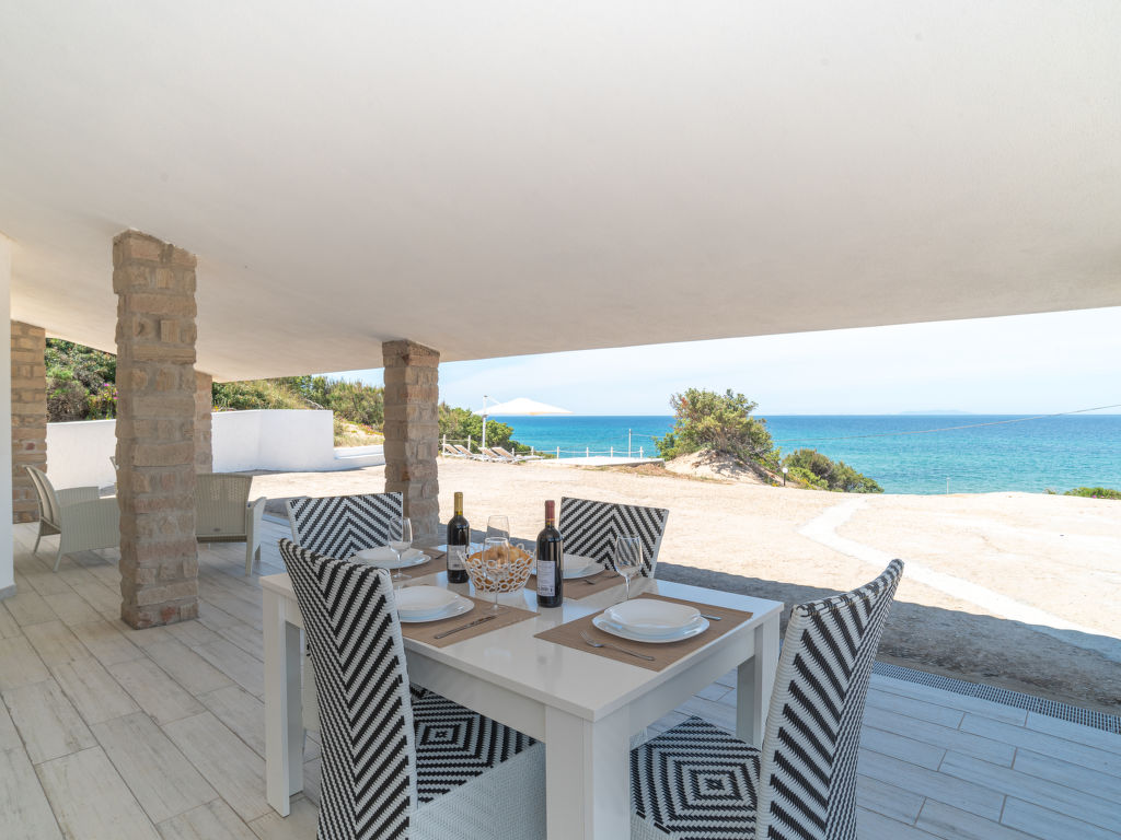 4-Zimmer-Villa 110 m2, im Erdgeschoss. Modern und gemütlich eingerichtet: Wohn-/Esszimmer mit Sat-TV und Klimaanlage. Ausgang zum Gartensitzplatz. 2 Doppelzimmer, jedes Zimmer mit Sat-TV und Klimaanlage. 1 Zimmer mit 2 Betten, Sat-TV und Klimaanlage. Grosse Kochnische (Backofen, Geschirrspüler, 4 Induktionskochplatten, Toaster, Wasserkocher, Mikrowelle, Tiefkühler, elektrische Kaffeemaschine). Dusche/WC, Dusche/Bidet/WC. Klimaanlage (extra). Gartensitzplatz 80 m2, überdacht. Terrassenmöbel, Liegestühle (3). Sicht auf das Meer und die Ortschaft. Zur Verfügung: Waschmaschine, Bügeleisen, Kinderhochstuhl, Babybett (extra). Internet (Wireless LAN, gratis). Beachten Sie bitte: Das Badezimmer, mit Dusche und WC, befindet sich ausserhalb des Hauptgebäudes, in einem separaten Raum.