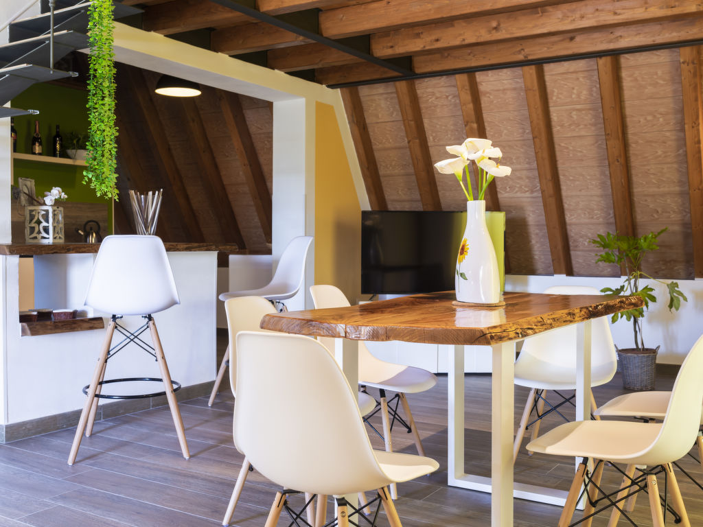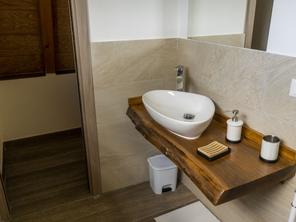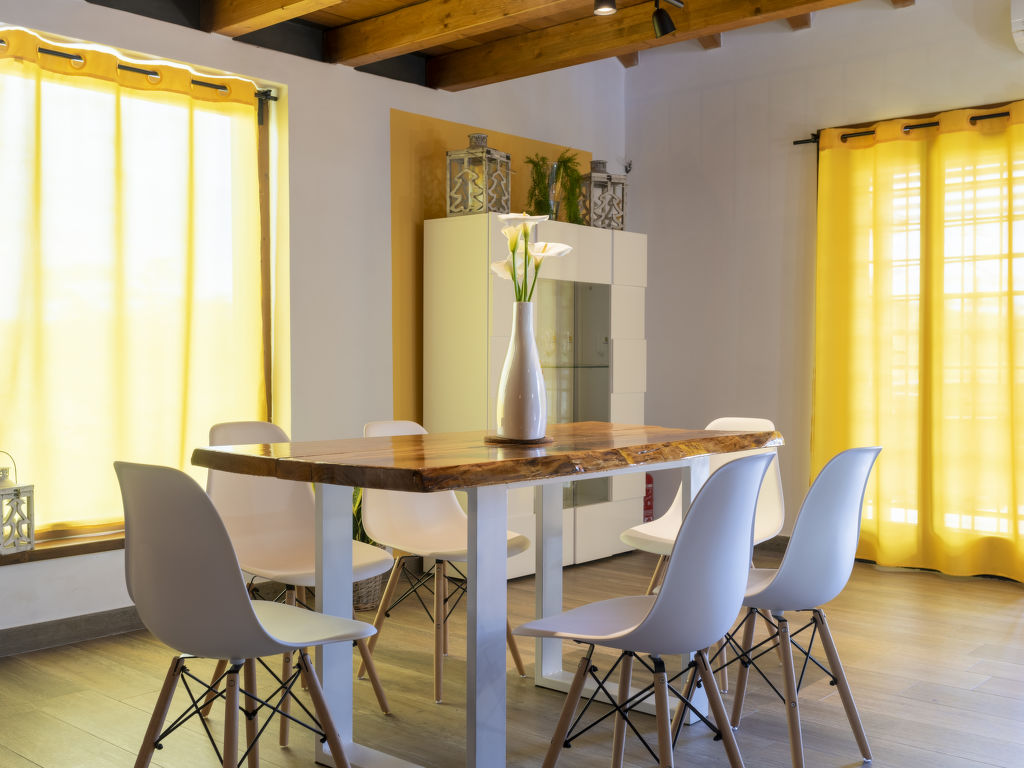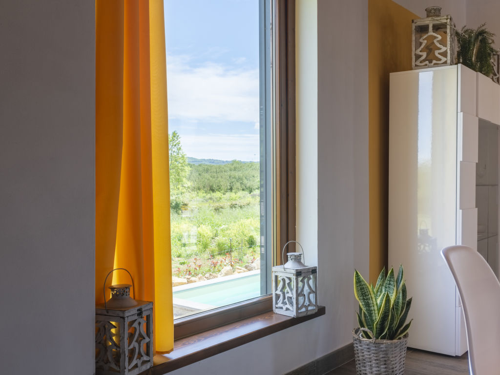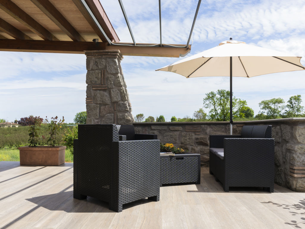 "Melograno", 2-Zimmer-Chalet 60 m2 auf 2 Stockwerken, im erhöhten Erdgeschoss. Modern und stilvoll eingerichtet: offenes Wohn-/Esszimmer mit 1 Doppeldiwanbett und TV (Flachbildschirm). Ausgang zur Terrasse. Offene Küche (Backofen, Geschirrspüler, 4 Flammen, Toaster, Tiefkühler, elektrische Kaffeemaschine). Ausgang zur Terrasse. Sep. WC. E-Heizung, Klimaanlage. Obergeschoss: abgeschrägte, offene Galerie mit 1 Doppelbett (140 cm). Dusche/Bidet/WC. Terrasse 45 m2. Terrassenmöbel. Schöne, auf die Landschaft. Zur Verfügung: Internet (Wireless LAN).