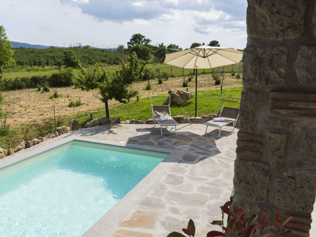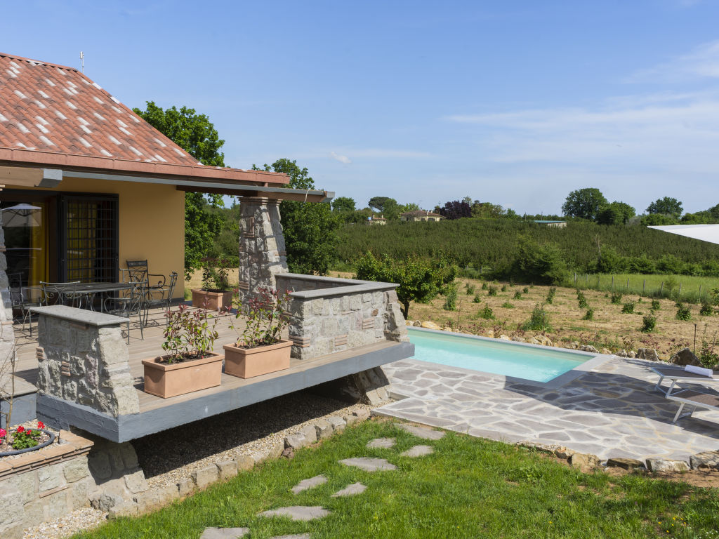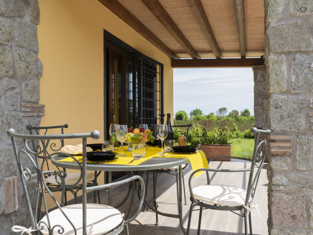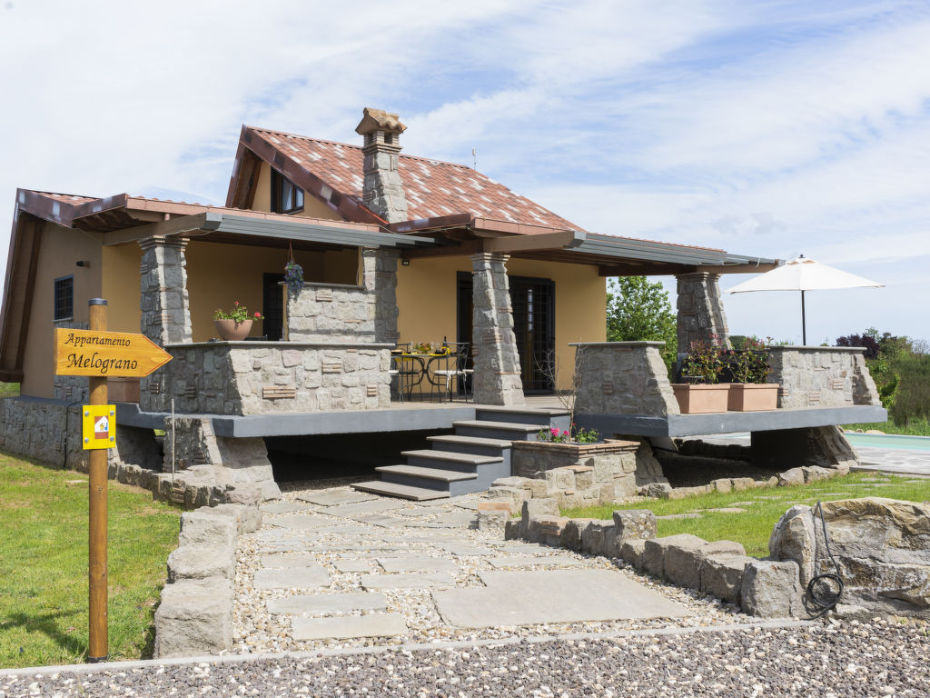Modernes, alleinstehendes, komfortables Chalet "Melograno". 2 Häuser im Ferienresort. 3 km vom Zentrum von Sutri, 50 km vom Zentrum von Roma, 45 km vom Meer, 12 km vom See. Zur Mitbenutzung: Park 3 ha (eingezäunt). Grill. Zur Alleinbenutzung: Garten 500 m2, Schwimmbad (6 x 3 m, 130 cm tief, 16.05.-03.10.). Gartenmöbel, Poolpflege durch den Besitzer/Gärtner. Im Hause: Empfang, Ruheraum. Parkplatz (überdacht) auf dem Grundstück. Supermarkt 2 km, Sandstrand "Santa Severa" 45 km, Badesee "Lago Di Vico" 12 km. Golfplatz (18 Loch) 7 km. Nahe gelegene Sehenswürdigkeiten: Viterbo 30 km, Lado Di Bracciano 13 km. Ab Hof Verkauf von bäuerlichen Produkten. Bitte beachten: Die Residenz wird durch elektrische Tore geschlossen. Ferienwohnung Ref. IT5607.649.1 befindet sich auf dem gleichen Grundstück.