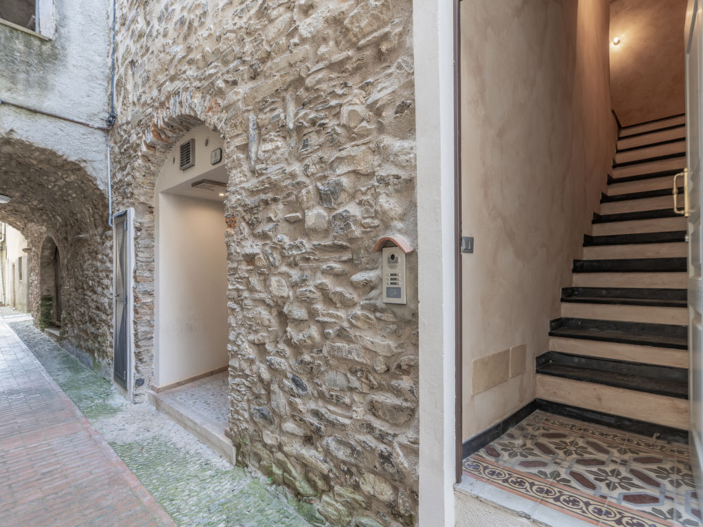Borgomaro: Historisches Appartementhaus "Piccolo Borgomaro", auf 3 Stockwerken, renoviert im Jahre 2021. 4 Häuser in der Residenz. Im Ortszentrum von Borgomaro, 15 km vom Zentrum von Imperia, 8 km vom Zentrum von Pontedassio, 20 km vom Zentrum von Diano Marina, 18 km vom Meer, 200 m vom Fluss. 100 m Fussweg bis zum Haus. Öffentliche Parkplätze 100 m auf der Strasse. Lebensmittelgeschäft 100 m, Supermarkt 8 km, Restaurant, Bar, Bäckerei, Bushaltestelle 100 m, Bahnstation "Imperia Oneglia" 15 km. Bitte beachten: kein Fahrstuhl vorhanden.