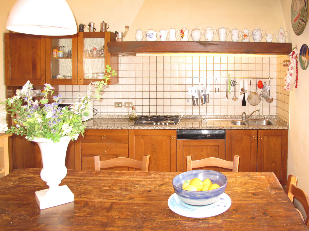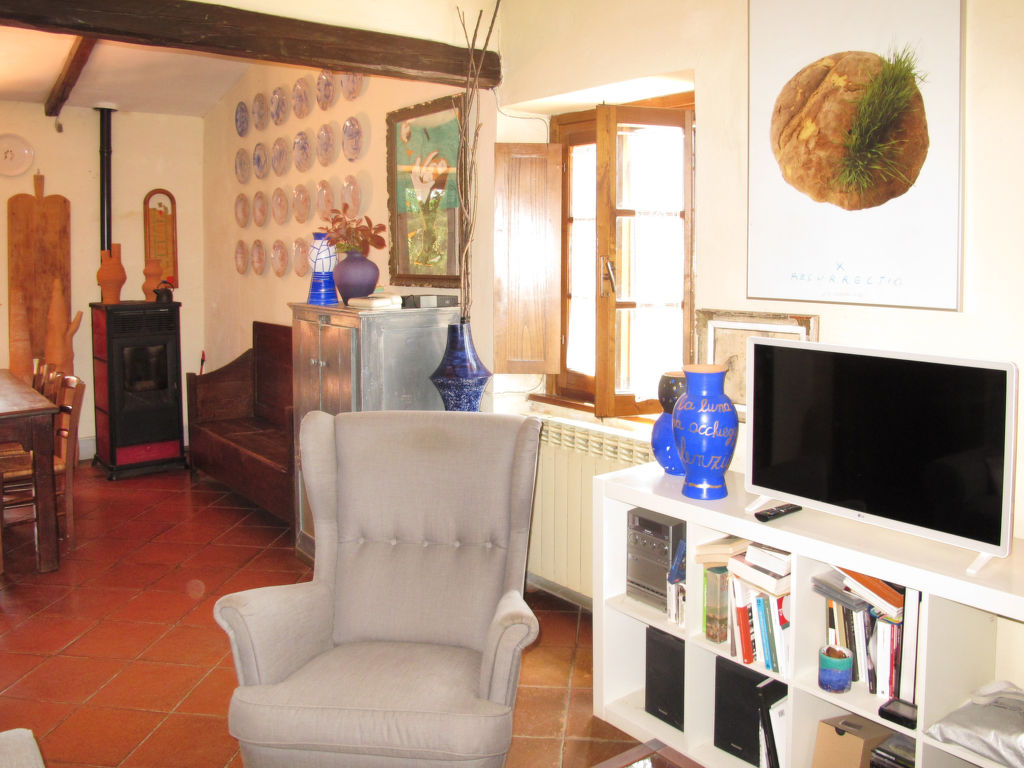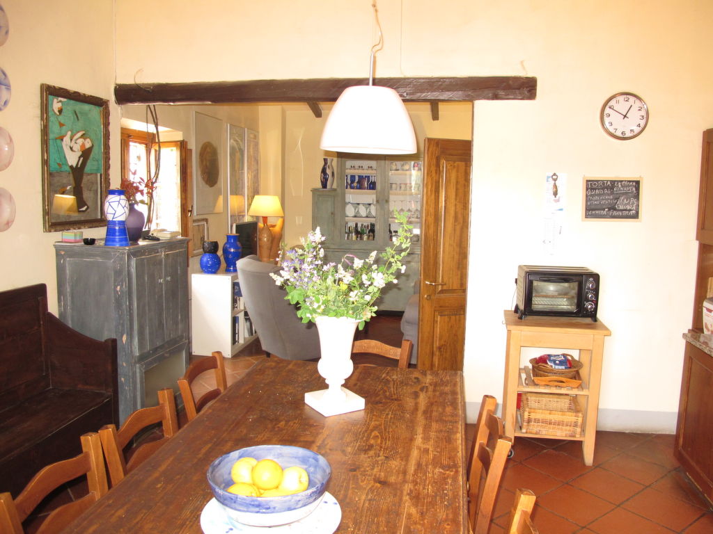 3-Zimmer-Wohnung 80 m2 im 1. Stock. Objekt geeignet für 4 Erwachsene. Geräumig und hell, rustikal und geschmackvoll eingerichtet: grosses Wohn-/Esszimmer mit Esstisch und TV (Flachbildschirm). Ausgang zur Terrasse. 2 Doppelzimmer. Offene Küche (Mini-Backofen, Geschirrspüler, 4 Flammen, Wasserkocher, Mikrowelle, Tiefkühler, elektrische Kaffeemaschine). Dusche/Bidet/WC. G-Heizung (extra). Natursteinböden. Komfortable Einrichtung im Landhausstil. Terrasse 25 m2, Gartensitzplatz. Terrassenmöbel, Gartengrill, Liegestühle, Abstellkammer. Schöne Sicht auf die Landschaft. Zur Verfügung: Internet (Wireless LAN, gratis). Parkplatz Nr. 2 (eingezäunt). Bitte beachten: geeignet für Familien. Nichtraucher-Unterkunft. 1 kleines Haustier/Hund erlaubt. Eigener Eingang.