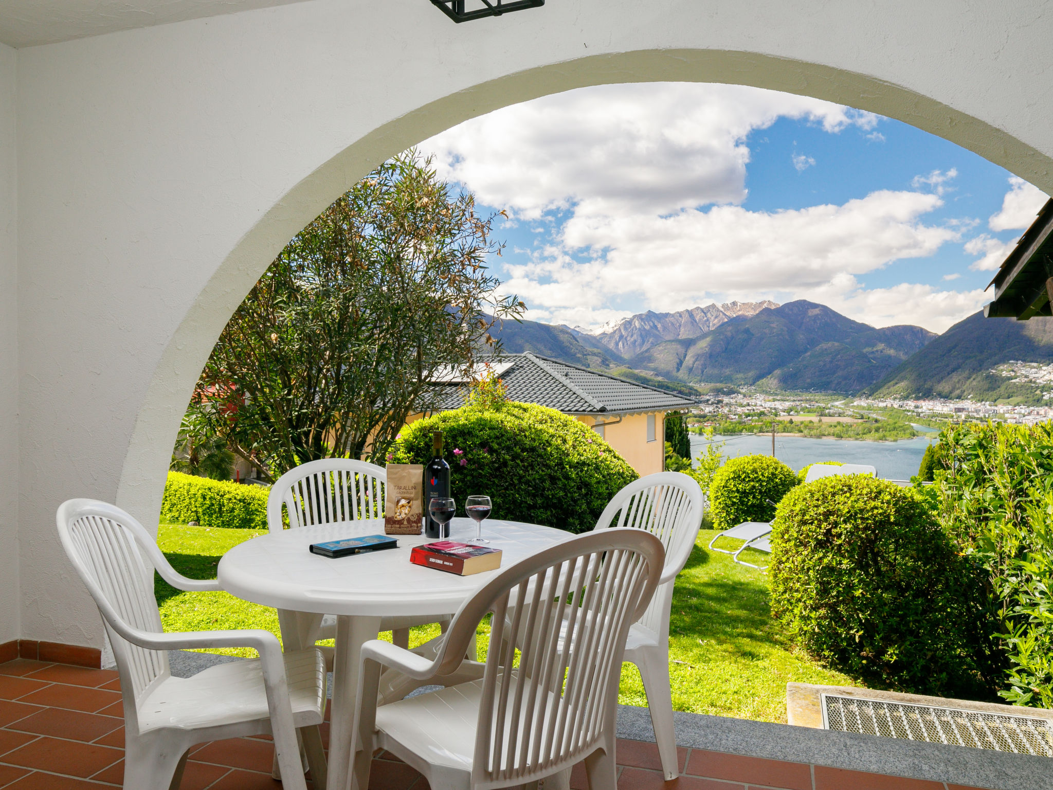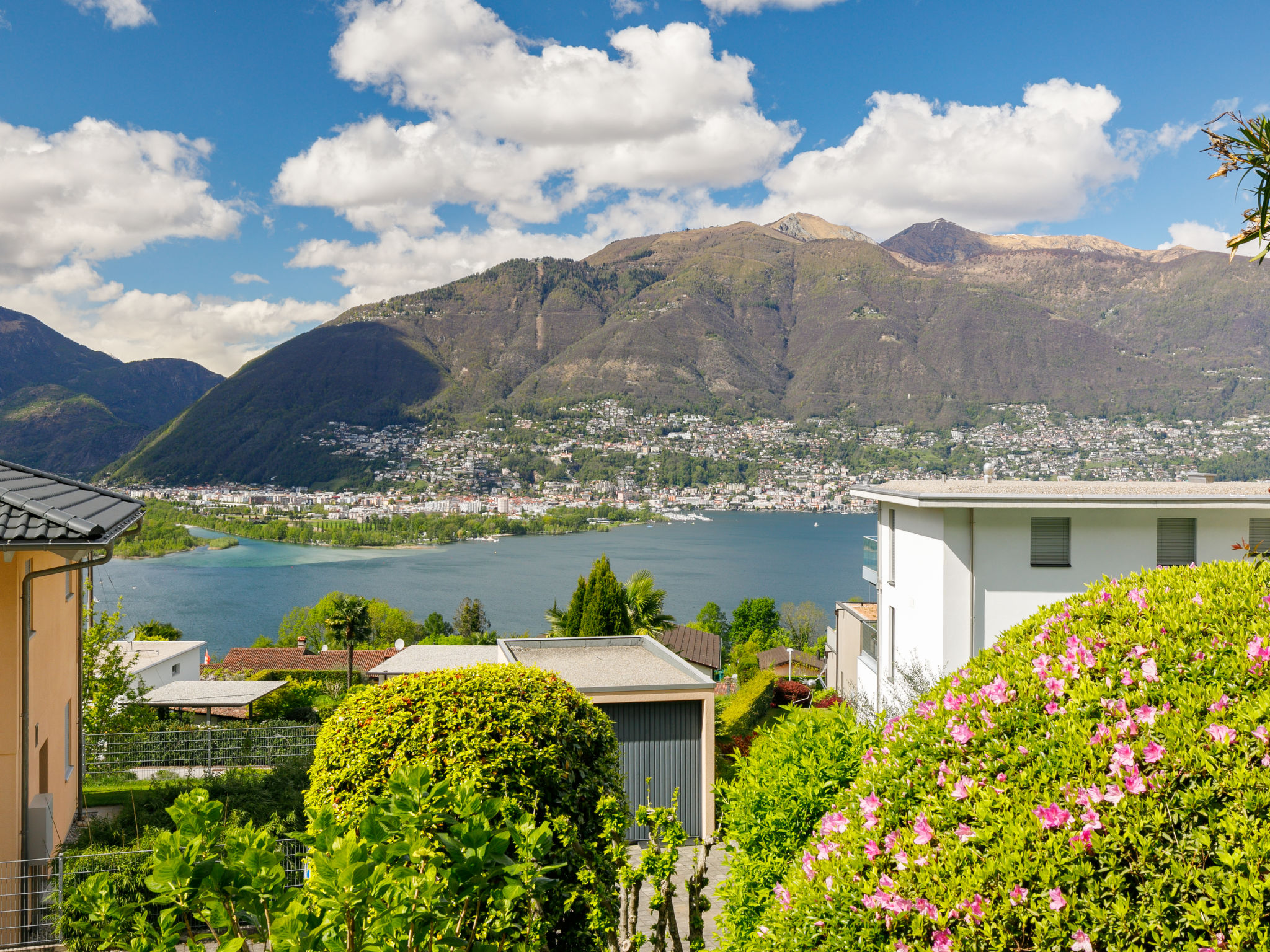 Piazzogna 19 km von Locarno: Moderne, komfortable Residenz "Miralago (Utoring)", umgeben von Bäumen und Wiesen. 4 Häuser in der Residenz. 39 Wohnungen in der Residenz. Oberhalb von Vira (3 km), im Bezirk Gambarogno, ruhige, sonnige, erhöhte Lage am Hang, direkt am Waldrand, 3 km vom See, in einer Sackgasse, Richtung Südosten. Zur Mitbenutzung: Liegewiese, Schwimmbad eckig beheizt (170 - 170 cm tief, saisonale Verfügbarkeit: 01.Apr.-31.Okt.). Aussendusche, Terrasse, Gartenmöbel. In der Anlage: Empfang, Aufenthaltsraum, Wireless LAN, Zentralheizung, Waschmaschine (zur Mitbenutzung, extra). Brötchenservice. Zufahrt bis zum Haus zum Grundstück. Parkplatz. Lebensmittelgeschäft, Restaurant 300 m, Bushaltestelle 50 m. Minigolf 4.5 km, Wanderwege ab Haus 100 m. Nahe gelegene Sehenswürdigkeiten: Parco Botanico, Piazzogna 300 m, Mercato Luino IT, Mercato Ponte Tresa IT, Bellinzona Unesco-Mercato, Swissminiature, Melide, Schokomuseum, Caslano. Bekannte Seen in der Umgebung sind gut erreichbar: Lago Maggiore, Lago di Lugano, Lago di Como, Lago Orta. Wandergebiete: Gambarogno, Indemini, Monte Tamaro und Splash and SPA, Rivera, Locarno - Ascona Cardada. Die vier typischen Tessiner Häuser verfügen über einen herrlichen Rundblick über den See. Pro Wohnung ist 1 Parkplatz gratis, jeder weitere kostet CHF 35.00/Woche. Wichtig, Bitte beachten: Der Pool ist unbeaufsichtigt und die Benützung erfolgt auf eigene Gefahr. Die Aufsichtspflicht für Kinder muss durch die Eltern wahrgenommen werden.