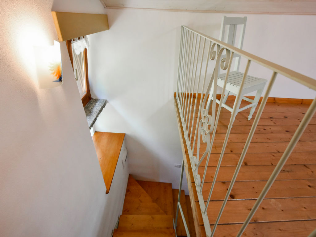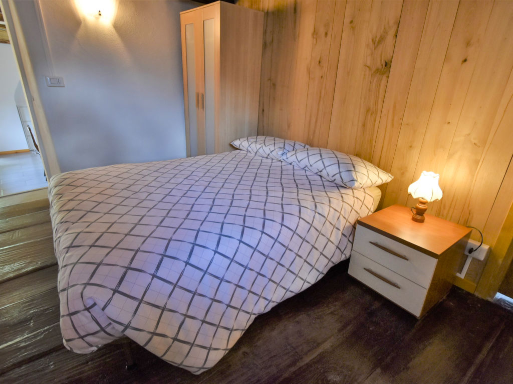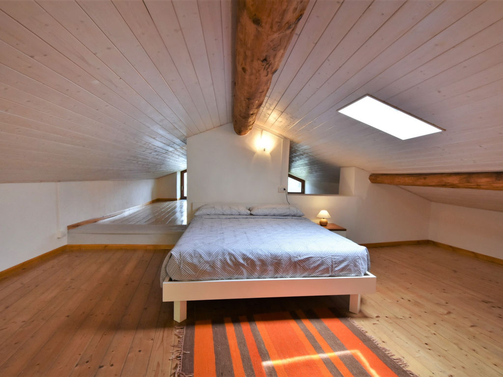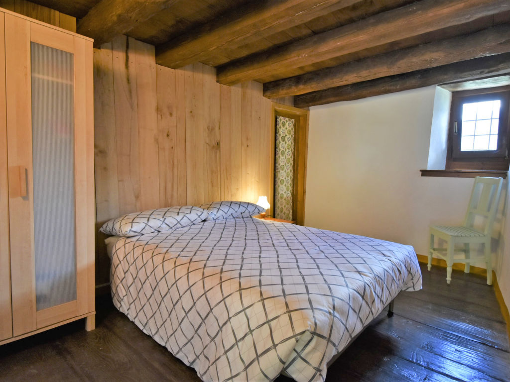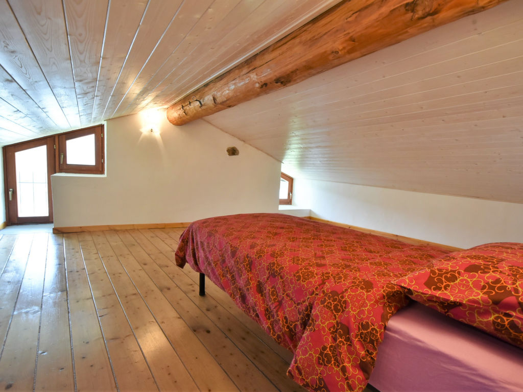 4-Zimmer-Wohnung 90 m2 auf 2 Stockwerken, im Erdgeschoss. Hell, vollständig renoviert im Jahre 2021, komfortabel und modern eingerichtet: grosses Wohn-/Esszimmer mit Esstisch und Heizofen. Ausgang zum Garten. 1 Zimmer mit 1 franz. Bett (140 cm). Kochnische (Backofen, Geschirrspüler, 4 Flammen, Wasserkocher, Mikrowelle, Tiefkühler). Dusche/Bidet/WC. Obergeschoss: 1 abgeschrägtes, offenes grosses Zimmer, Deckenhöhe 73 - 166 cm mit 1 Bett. 1 abgeschrägtes, offenes grosses Doppelzimmer, Deckenhöhe 100 - 197 cm mit Dachfenster. Holzheizung (extra). Parkettböden. Liegestühle (4). Schöne Panoramasicht auf die Berge, das Tal und den Garten. Zur Verfügung: Babybett, Haartrockner. Internet (Wireless LAN, gratis). Bitte beachten: Nichtraucher-Unterkunft. CIR:014022-LNI-00002