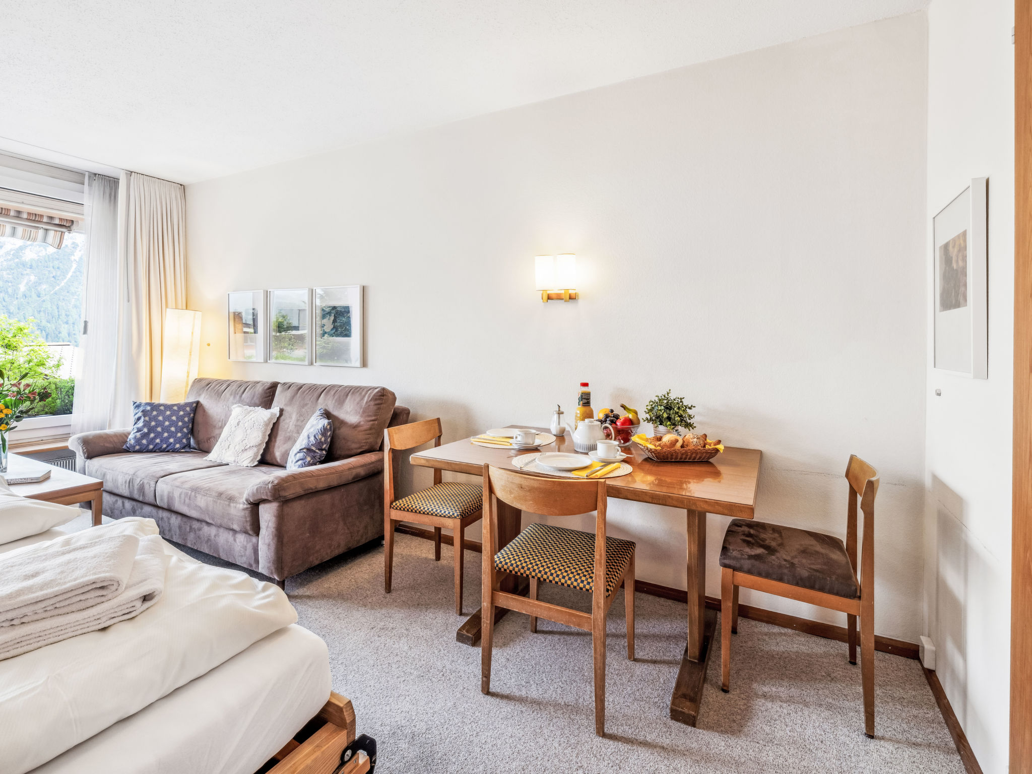 Appartementhaus "Promenade (Utoring)". Im Ort, 500 m vom Zentrum, ruhige Lage. Im Hause: Aufenthaltsraum, Tischtennis, Kiosk, Fahrstuhl, Skiraum, Zentralheizung, Waschmaschine (zur Mitbenutzung). Zufahrt bis zum Haus (Bergstrasse). Im Winter bitte Schneeketten mitbringen, im Winter 4x4 empfohlen. Parkplatz (beschränkte Anzahl, extra) beim Haus, Gemeinschaftsgarage (extra), öffentliches Parkhaus in 800 m. Einkaufsgeschäft 500 m. Bergbahn 500 m. Hauslieferdienst möglich. Schöne Wanderwege direkt vor dem Haus. Achtung: beschränkte Anzahl Parkmöglichkeiten! Parkplatz oder Garagenplatz müssen zwingend vorgängig beim Schlüsselhalter reserviert werden: Parkplatz CHF 5.00/Tag, gedeckter Parkplatz CHF 8.00/Tag, Garagenplatz CHF 16.00/Tag, zahlbar vor Ort. Zweckmässig eingerichtete Appartements mit Sat-TV (im Mietpreis inbegriffen, ausser bei Typ 10 und 12 CHF 40.00/Woche). Aufenthaltsraum mit Internetanschluss (WiFi). Skiabonnements sind an der Rezeption erhältlich.