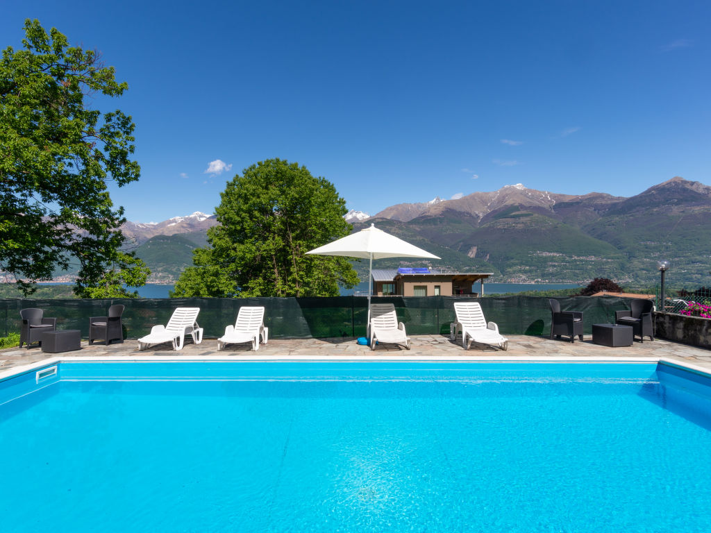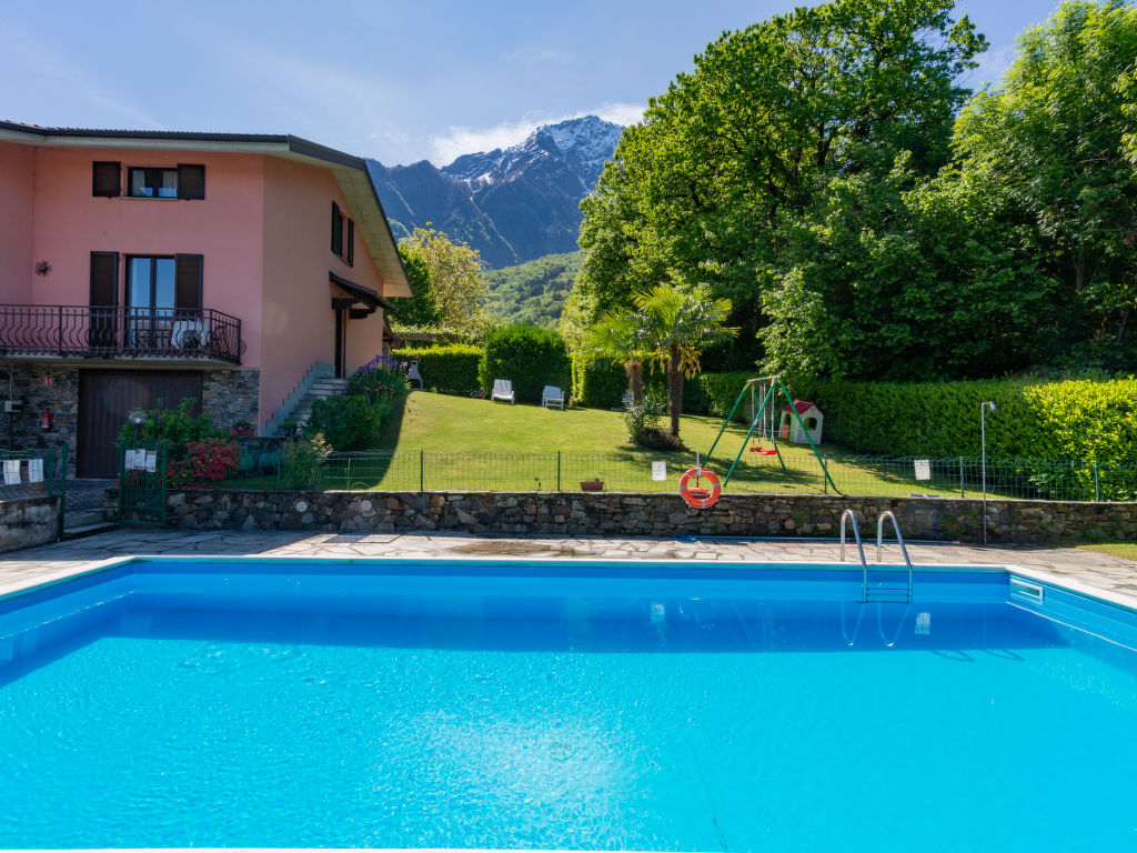 Alleinstehendes Doppelhaus "Oasi e Relax". Im Ortsteil Villatico, 2 km vom Zentrum von Colico, am Ortsrand, 40 km vom Zentrum von Lecco, 65 km vom Zentrum von Como, erhöhte Lage am Hang, 2 km vom See, in einer Sackgasse. Zur Mitbenutzung: Grundstück 1'000 m2 (eingezäunt), gepflegter Terrassengarten mit Rasen, Schwimmbad eingezäunt (10 x 5 m, saisonale Verfügbarkeit: 01.Mai.-30.Sep. Öffnungszeiten Schwimmbad: 08:00-20:00). Gartenmöbel, Poolpflege durch den Besitzer/Gärtner. Zur Alleinbenutzung: Tischtennis. Brötchenservice. Treppenweg bis zum Haus. Einkaufsgeschäft 750 m, Supermarkt 2 km, Bahnstation "Colico" 2 km, Grasstrand "'Lido'" 2 km. Jacht-Hafen 2 km, Golfplatz (18 Loch) 35 km.