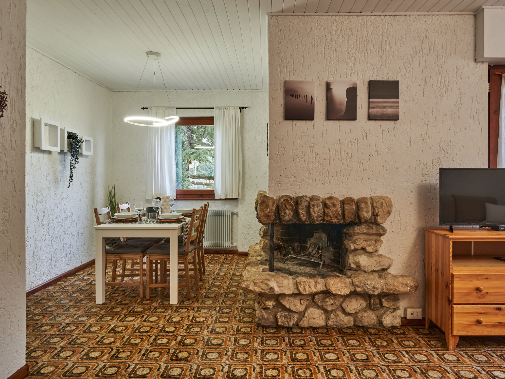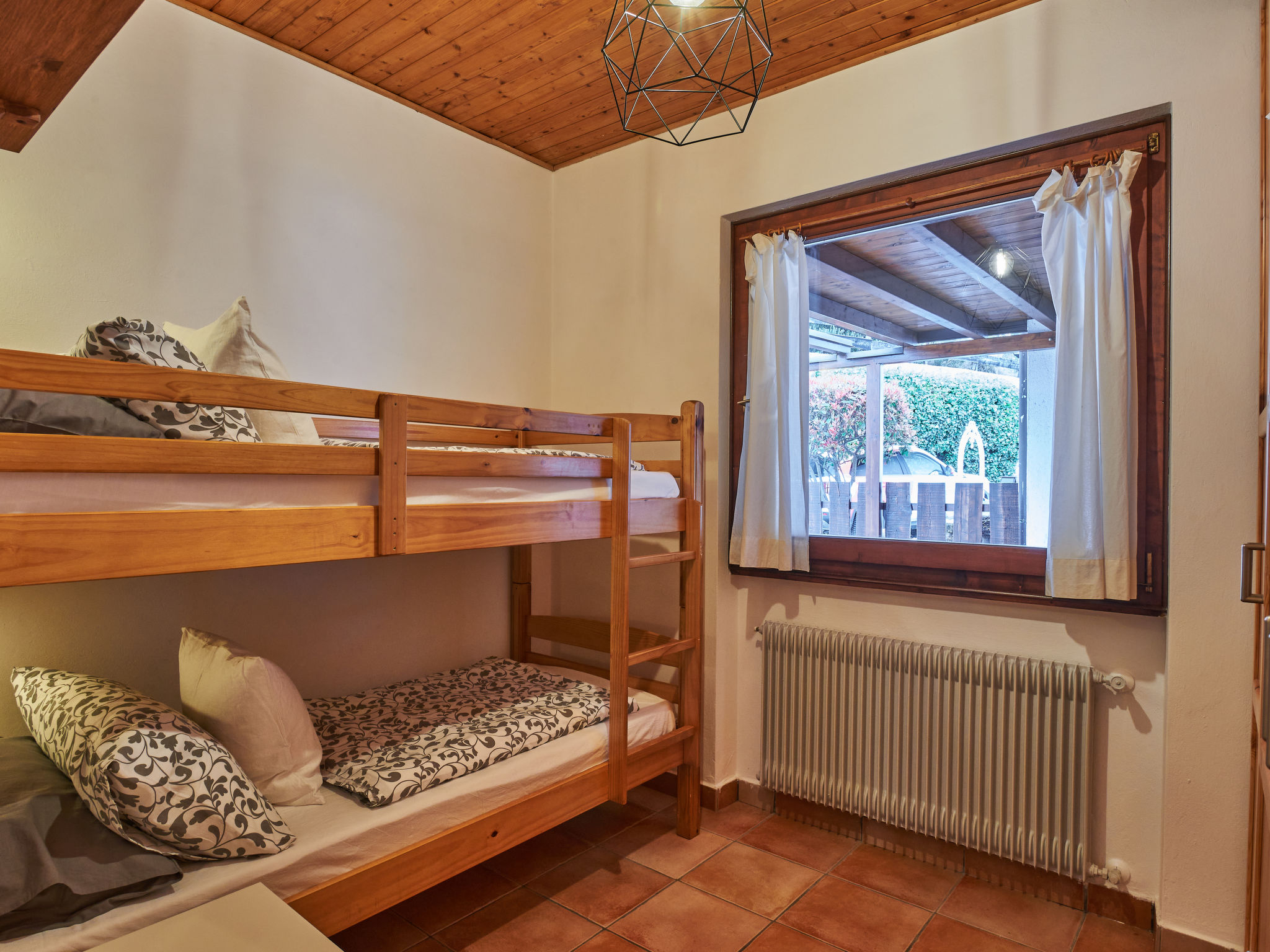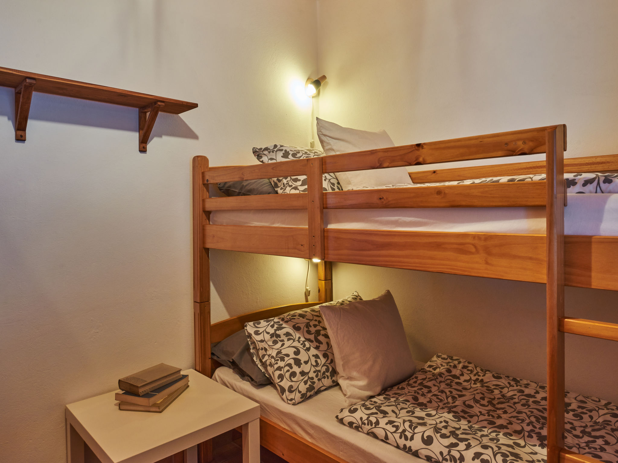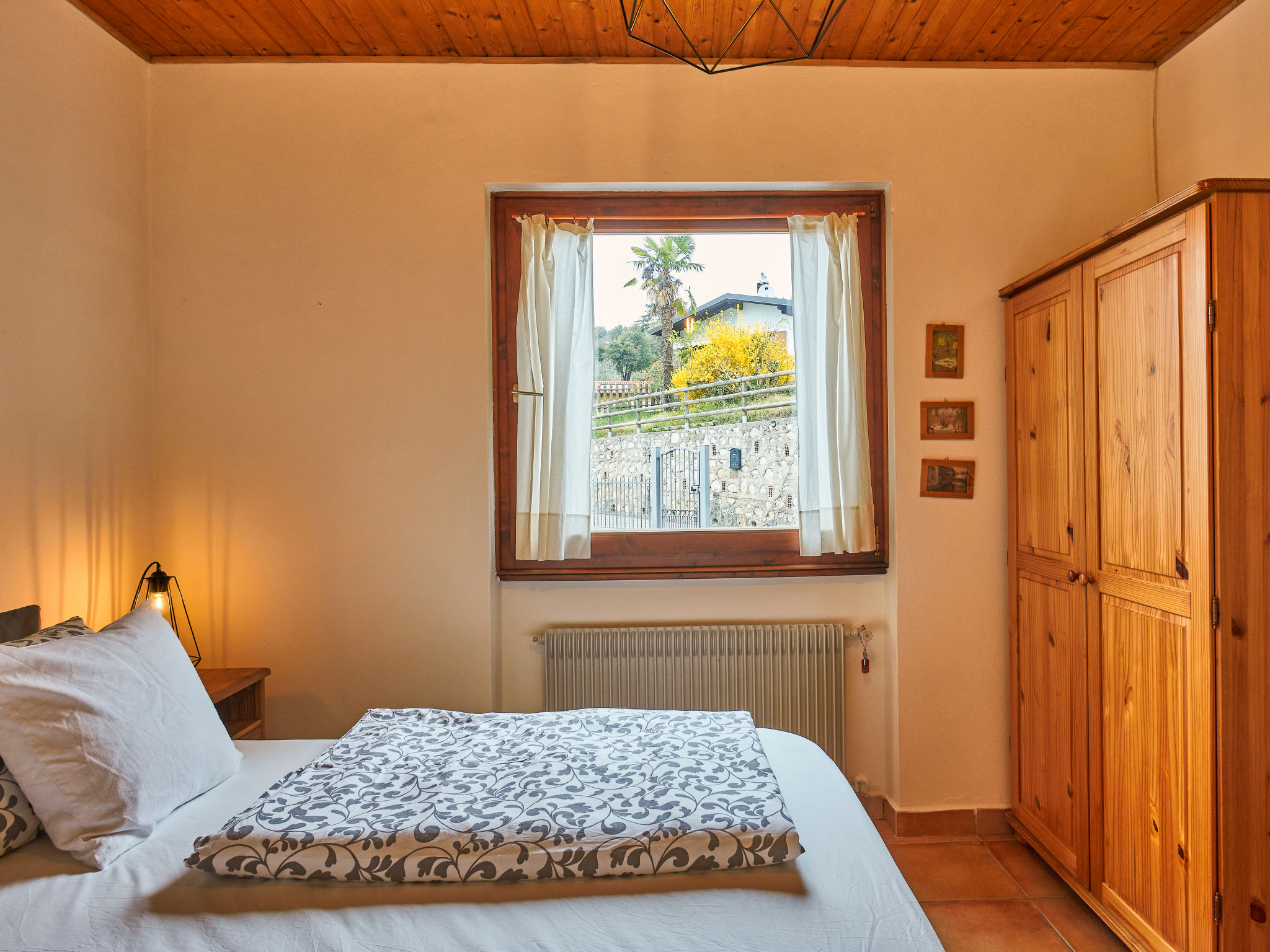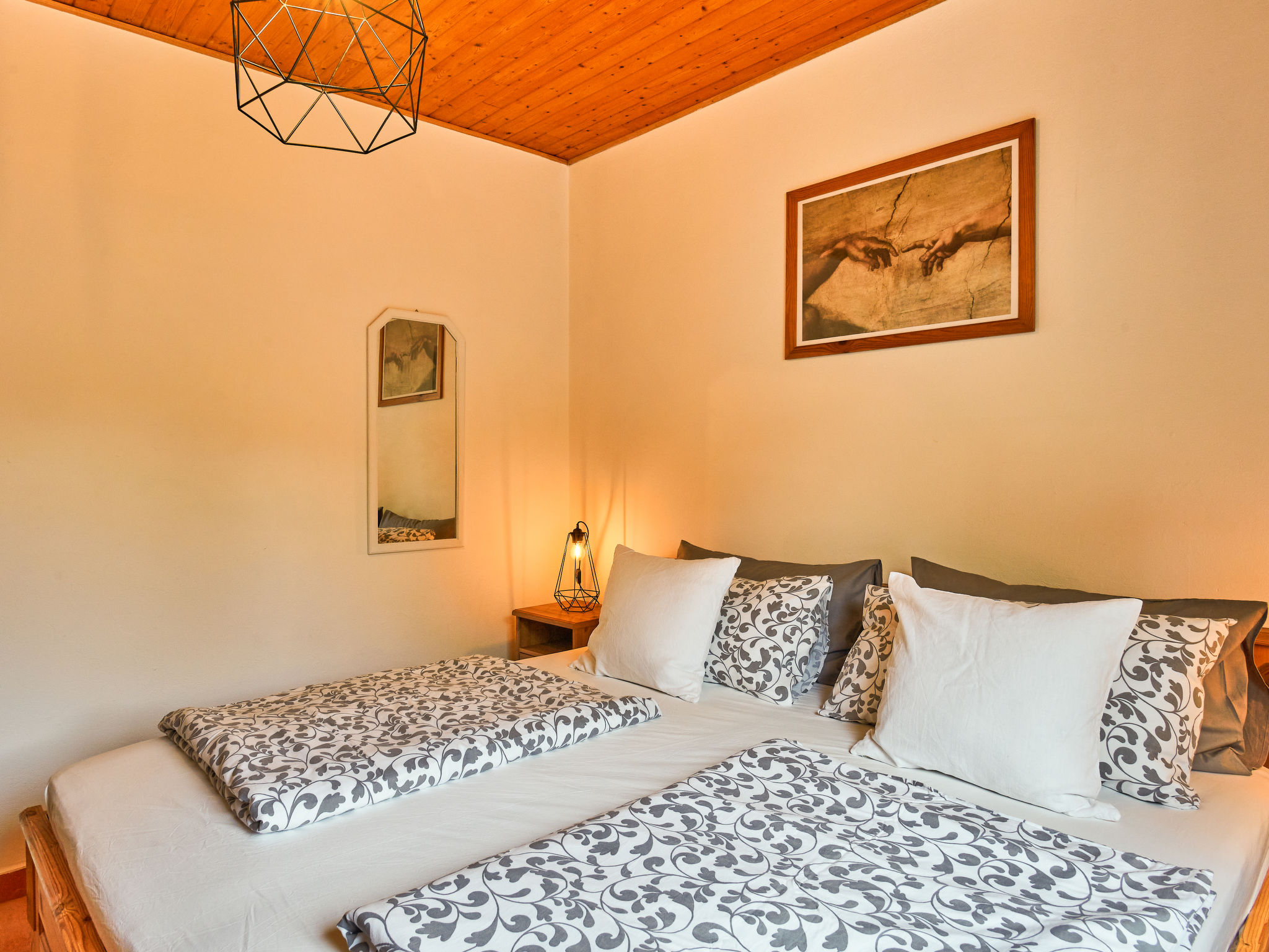 3-Zimmer-Haus 55 m2, im erhöhten Erdgeschoss. Rustikal eingerichtet: Wohn-/Schlafzimmer mit 1 Diwanbett (140 cm), Esstisch und Sat-TV. Ausgang zur Terrasse. 1 Doppelzimmer. 1 Zimmer mit 1 x 2 Etagenbetten. Kleine Küche (4 Induktionskochplatten, Toaster, Wasserkocher, elektrische Kaffeemaschine). Dusche/Bidet/WC. Ölheizung (extra). Terrasse überdacht. Terrassenmöbel, Liegestühle (2). Fernsicht auf den See. Zur Verfügung: Internet (Wireless LAN, gratis). Bitte beachten: Nichtraucher-Unterkunft. CIR:M0230450258