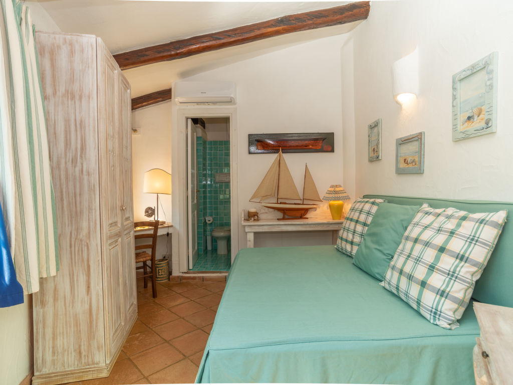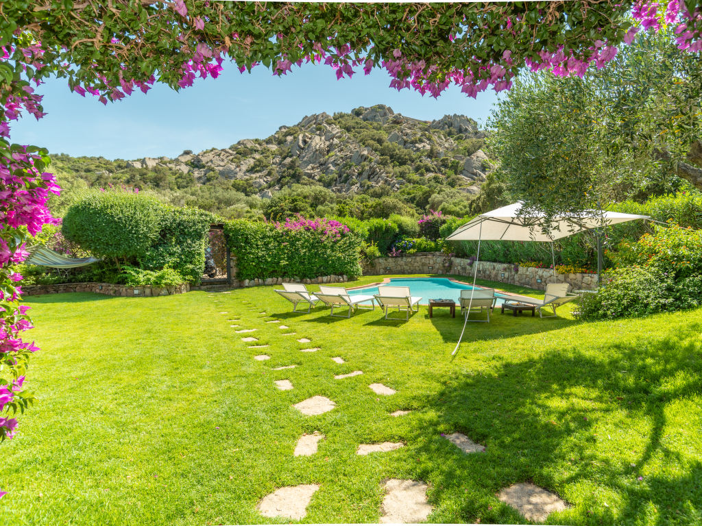 Komfortable Villa "Elisabetta", 40 m.ü.M., einseitig angebaut. Im Ortsteil Porto Rafael, 5 km vom Zentrum von Palau, 35 km vom Zentrum von Porto Cervo, am Hang, in einem Wohnquartier, 300 m vom Meer. Zur Alleinbenutzung: Grundstück 1'000 m2 (eingezäunt), gepflegter Garten mit Rasen und Bäumen, Obstgarten, Schwimmbad nierenförmig (12 x 4 m, 20 - 180 cm tief, 18.04.-31.10.). Aussendusche. Im Hause: Dachterrasse. Parkplatz (überdacht) beim Haus, öffentliche Parkplätze auf der Strasse. Einkaufsgeschäft 1 km, Supermarkt 2 km, Sandstrand "di Nelson" 300 m. Golfplatz (18 Loch) 35 km.