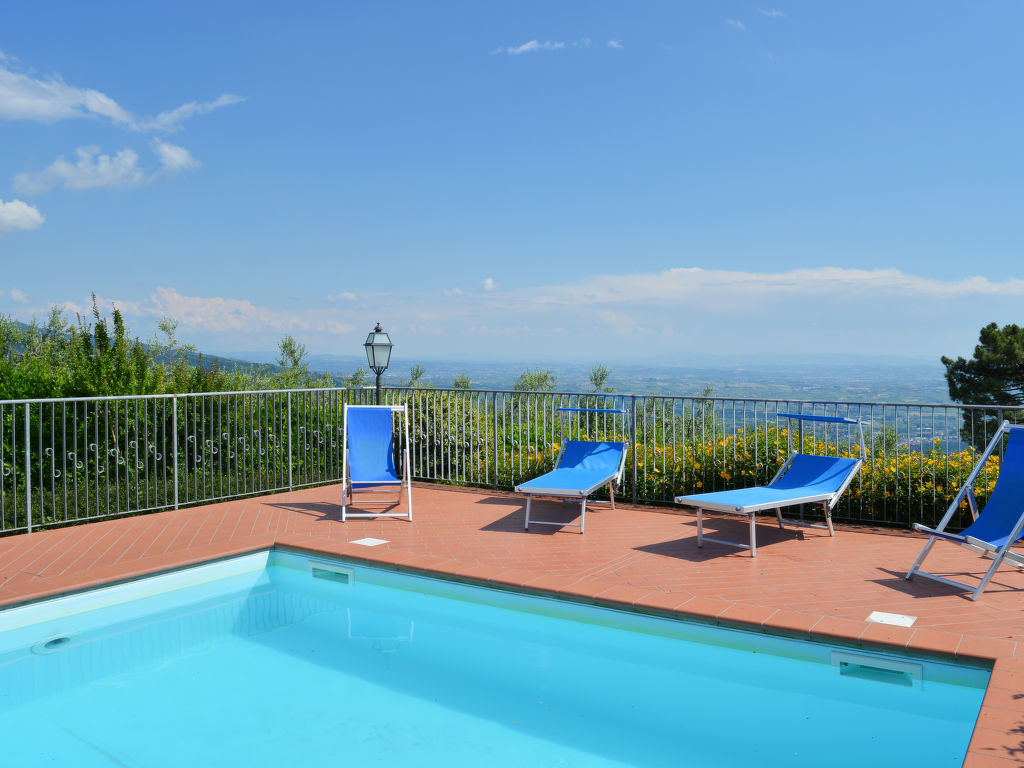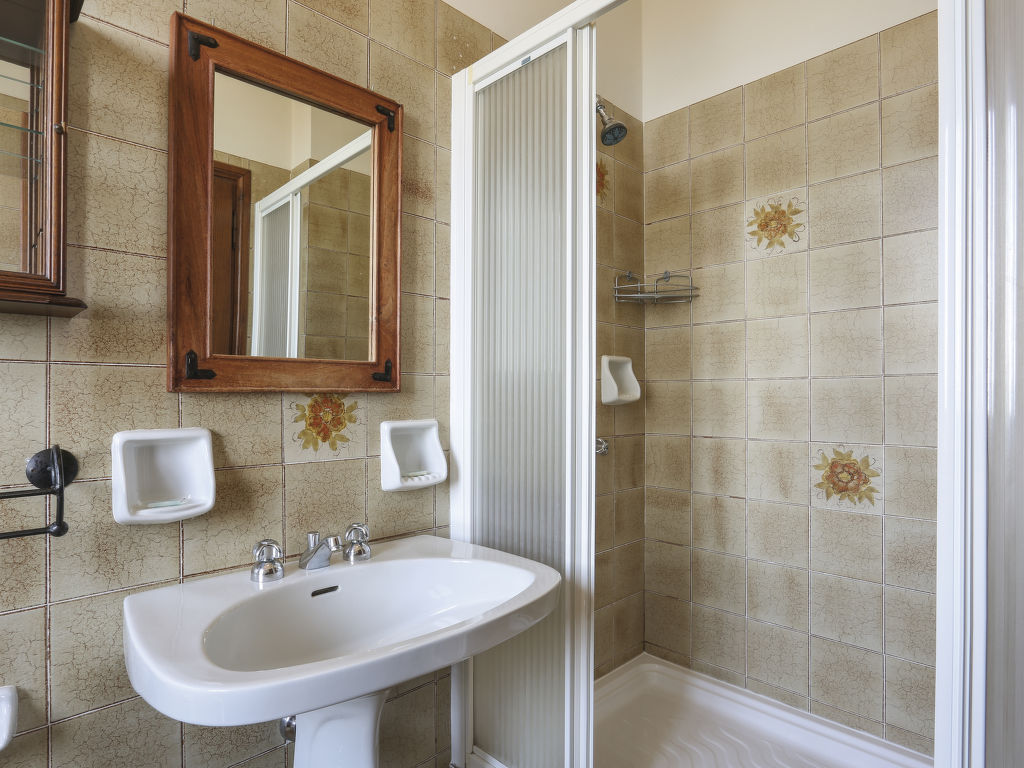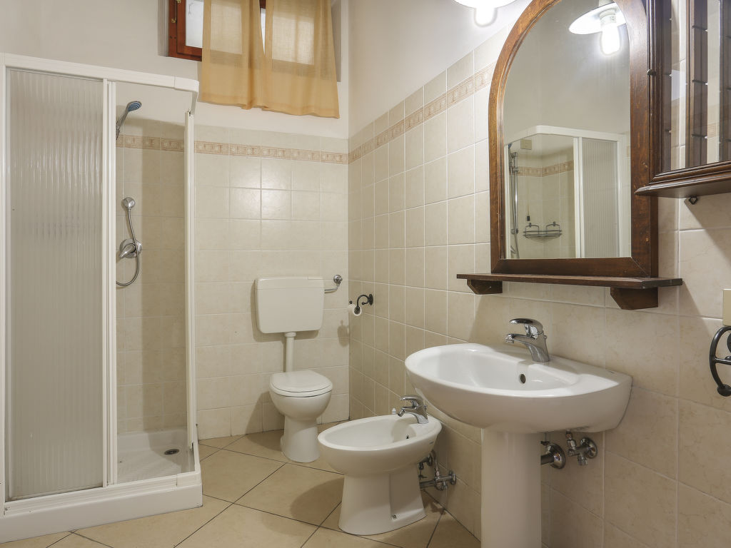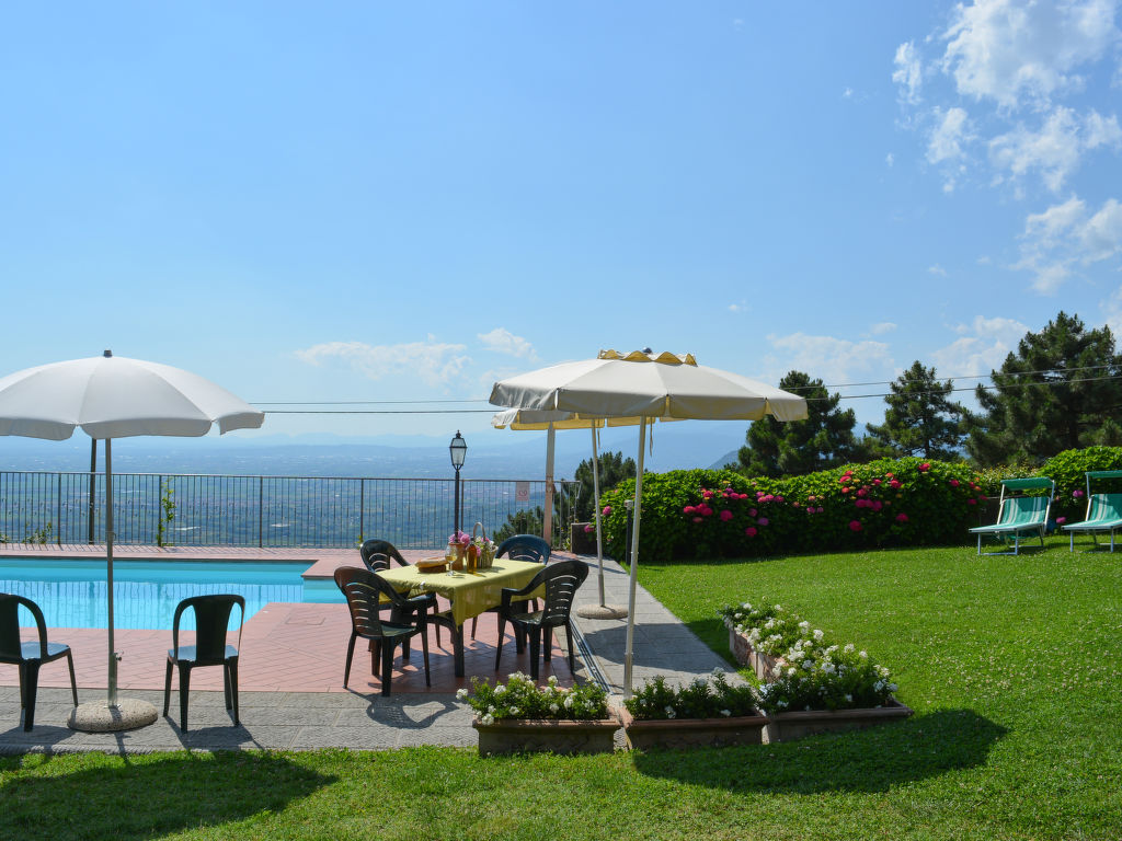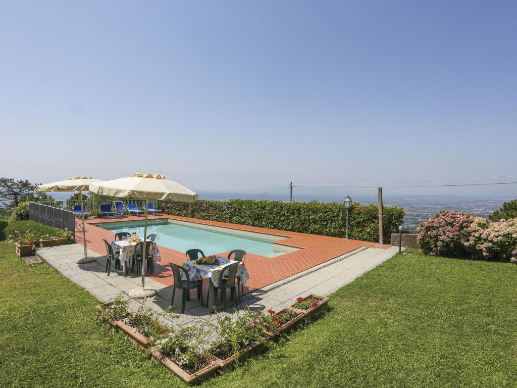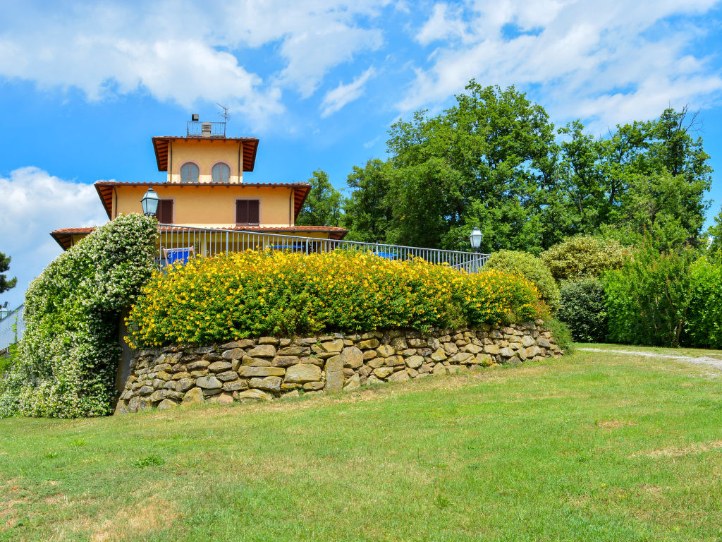 Grosses, alleinstehendes Herrenhaus "Villa Le Castagne", 400 m.ü.M.. 4 km vom Zentrum von San Baronto, 15 km vom Zentrum von Pistoia, 52 km vom Zentrum von Florenz, erhöhte Lage auf einem Hügel, im Grünen. Zur Alleinbenutzung: Grundstück 4 ha, grosser, gepflegter Garten (nicht eingezäunt) mit Rasen und Bäumen, Liegewiese, Schwimmbad eingezäunt (10 x 5 m, 10.04.-09.10.) mit Innentreppe. 500 m lange holprige Zufahrt bis zum Haus. Treppenweg bis zum Haus. Parkplatz (für 3 Autos) auf dem Grundstück. Einkaufsgeschäft 4 km, Supermarkt 5 km. Golfplatz (18 Loch) 5 km, Tennis 5 km. Ab Hof Verkauf von bäuerlichen Produkten.