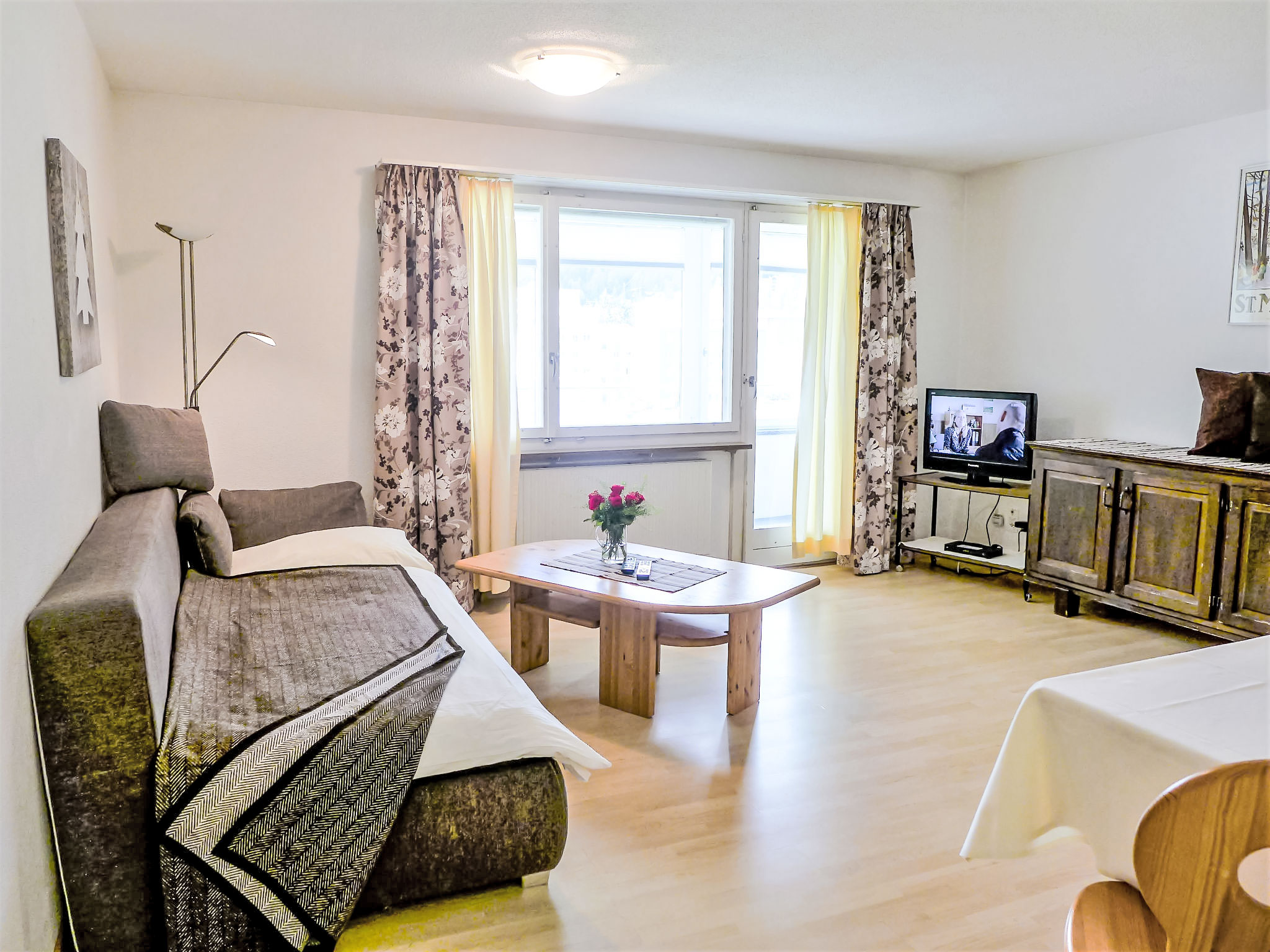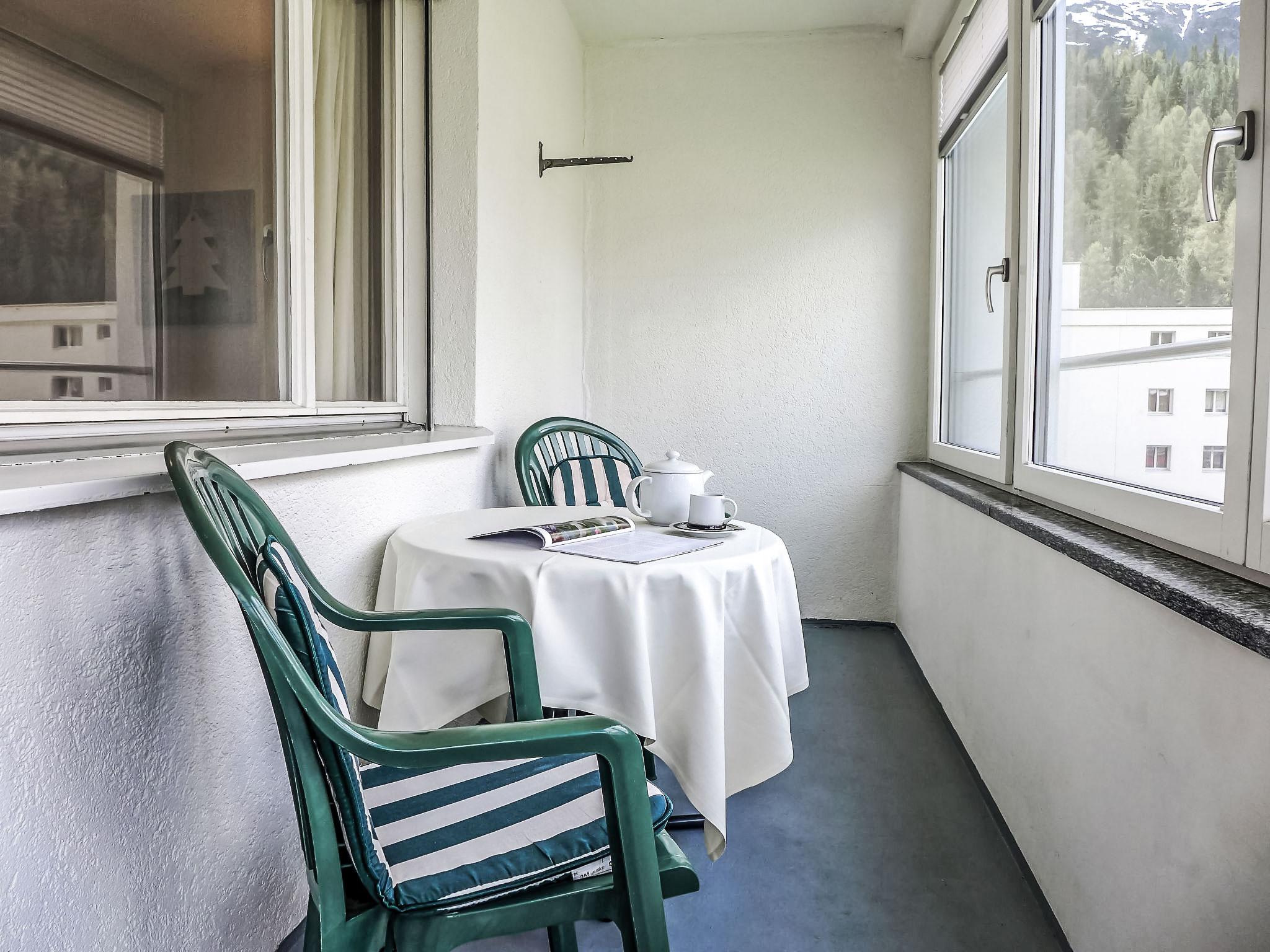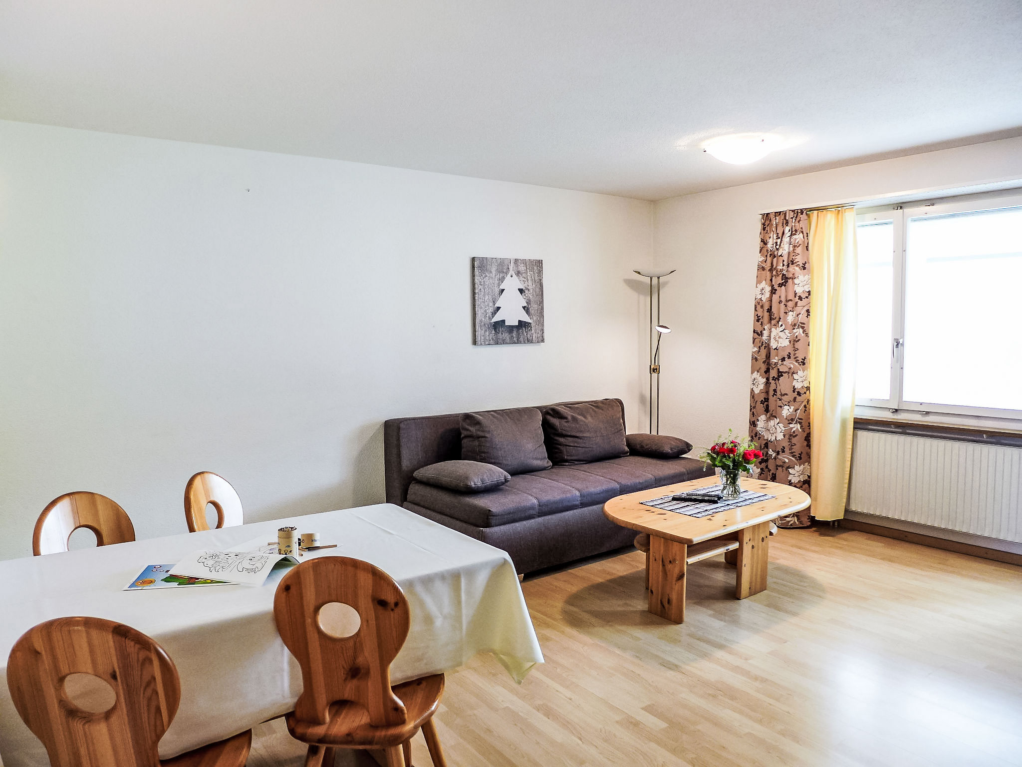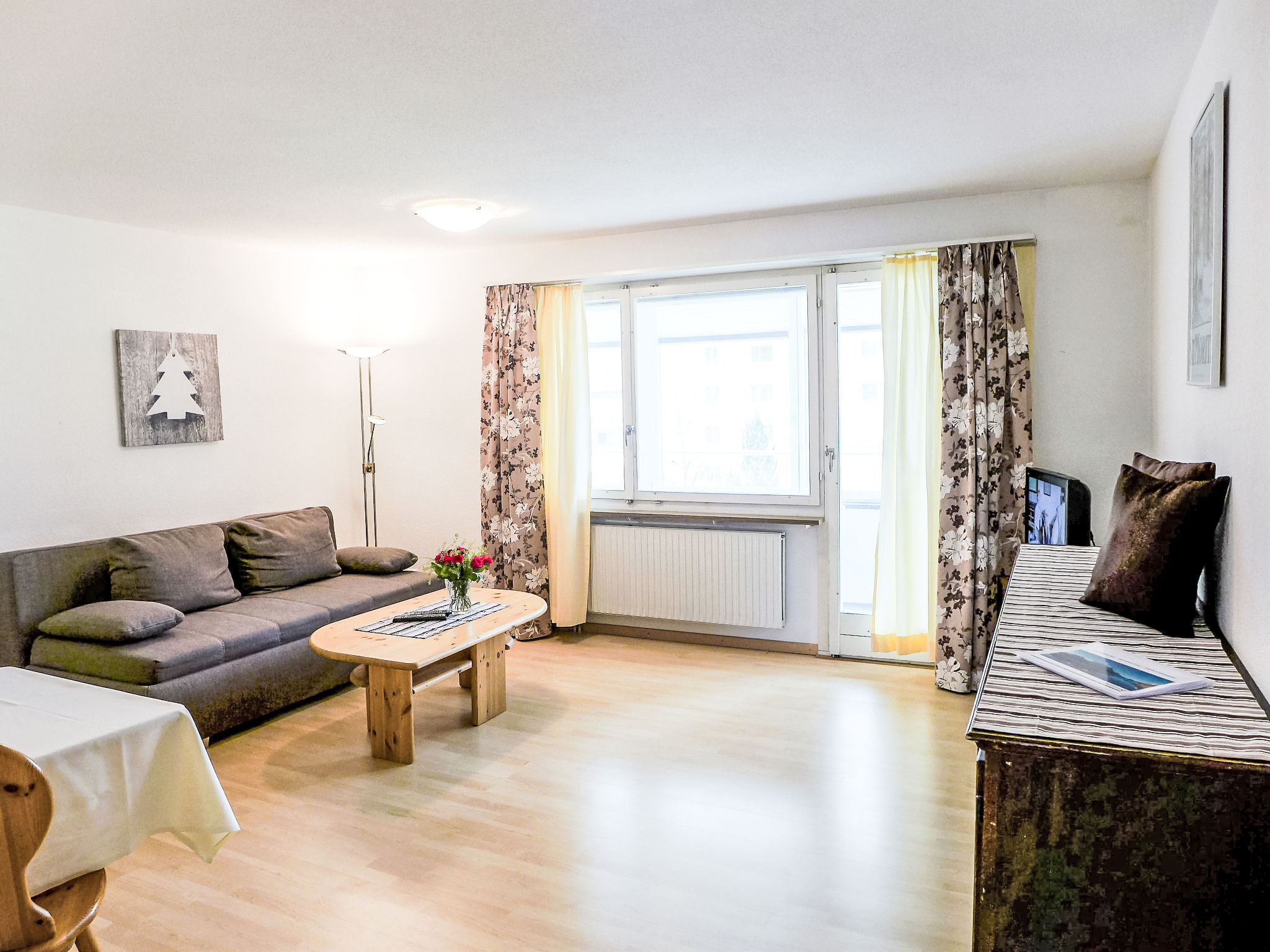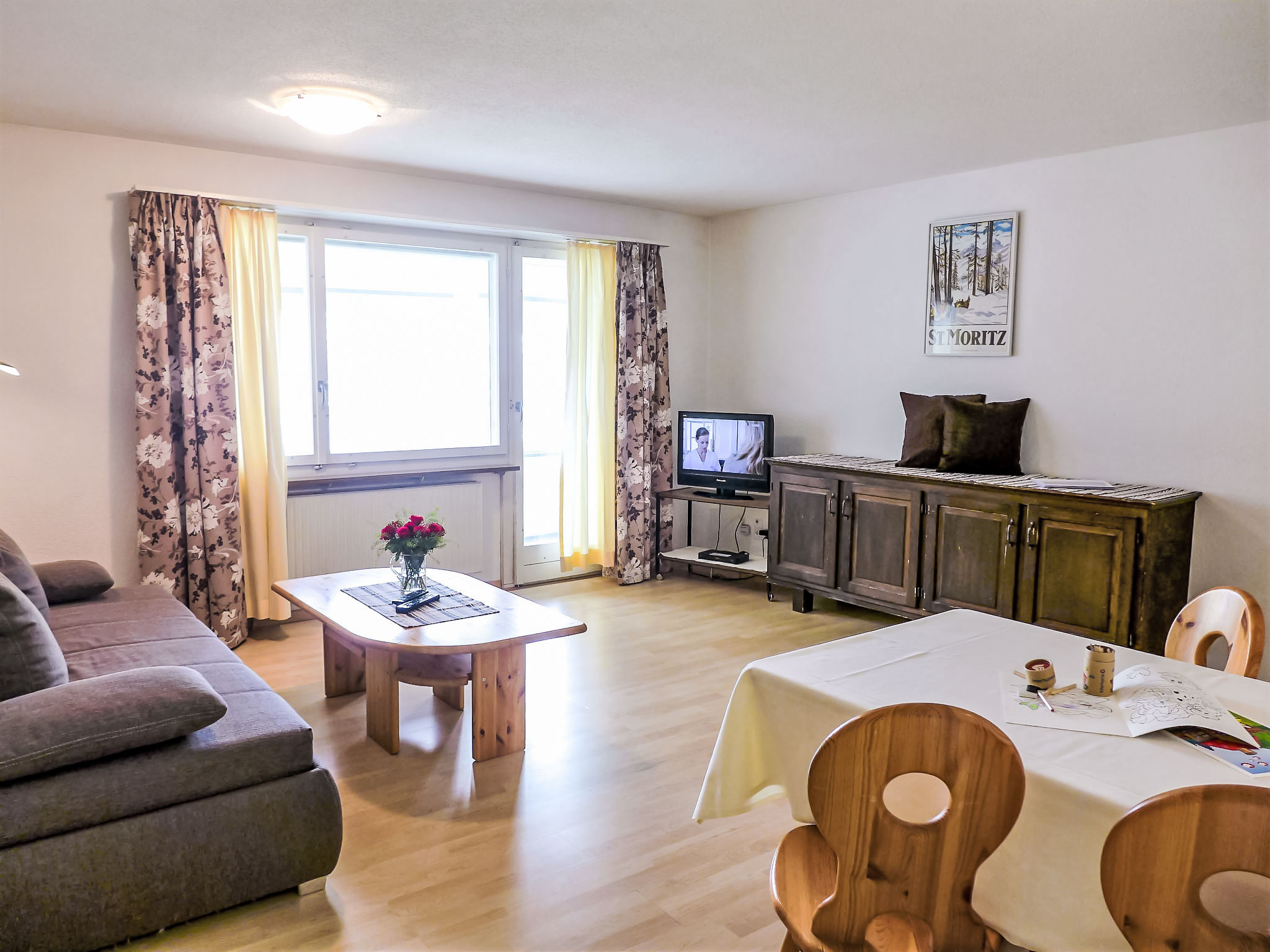 "Chesa Ova Cotschna 305", 2-Zimmer-Wohnung 51 m2 im 3. Stock, Westlage. Teilweise renoviert im Jahre 2014, zweckmässig und modern eingerichtet: Wohn-/Esszimmer mit 1 Doppeldiwanbett (2 x 80 cm, Länge 200 cm), Esstisch und TV (Flachbildschirm). Ausgang zur Loggia. 1 Zimmer mit 1 Doppelbett (2 x 90 cm, Länge 200 cm). Offene Küche (Backofen, 4 Glaskeramikherd Platten, Toaster, Wasserkocher, elektrische Kaffeemaschine, Kapseln für die Kaffeemaschine (Nespresso) extra). Bad/WC. Balkonmöbel. Sicht auf die Berge und die Ortschaft. Zur Verfügung: Haartrockner. Internet (Wireless LAN, gratis). Garage Nr. 304, Höhe 200 cm, Breite 220 cm. Bitte beachten: Nichtraucher-Unterkunft. 1 Haustier/Hund erlaubt.