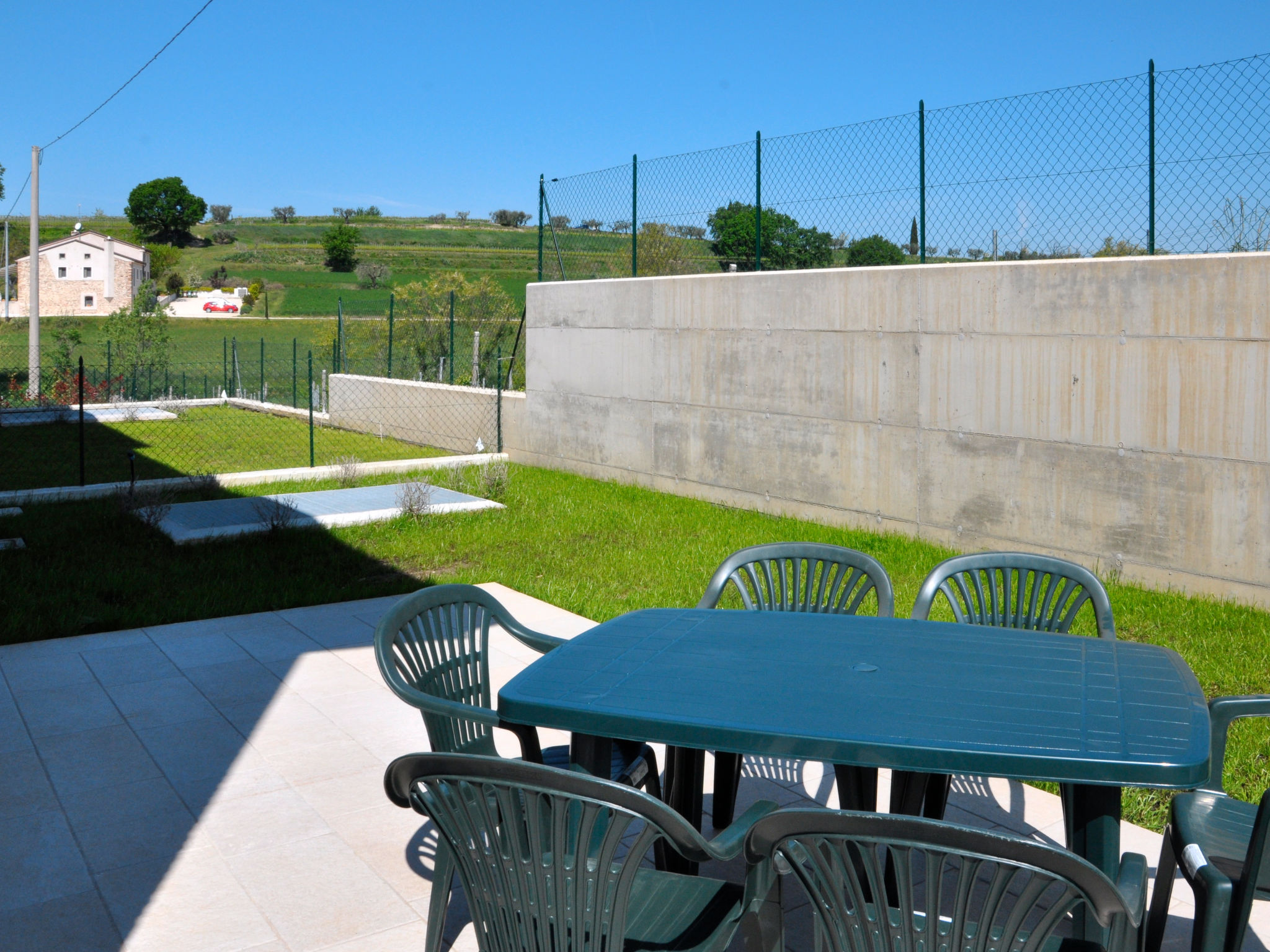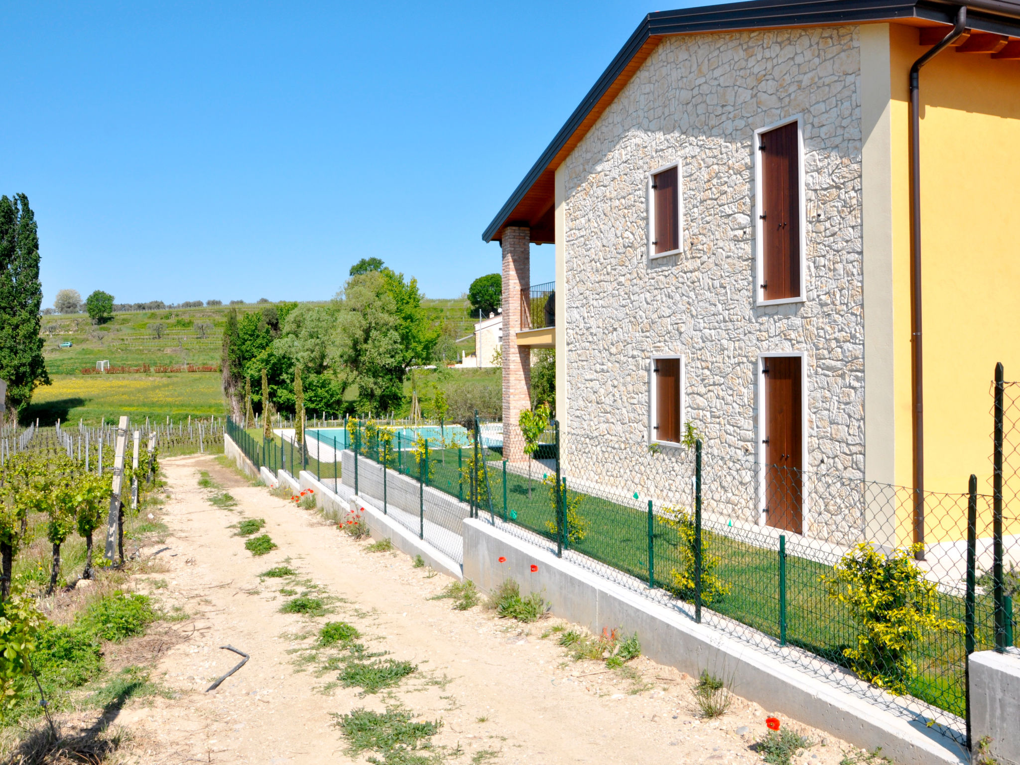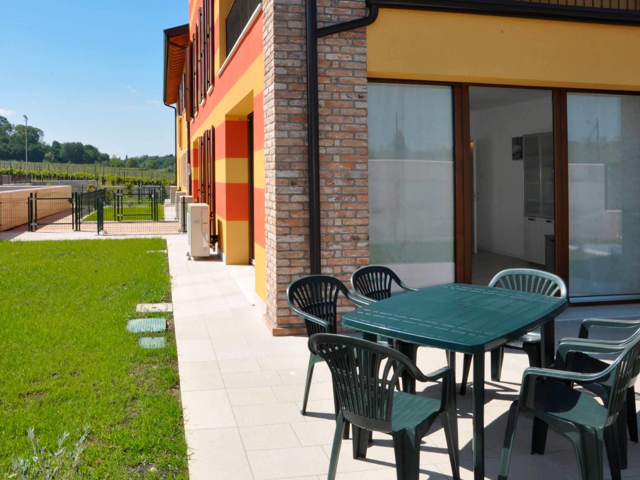 Die 2018 gebaute Residenz I MOLINI mit insgesamt 14 Einheiten steht im Ortsteil Colá, 3 km von Lazise entfernt. Ortsmitte Colá mit Einkaufsmöglichkeiten und Restaurants 1,5 km. Bardolino 6 km. Zum Strand bei Pacengo 2,5 km. Von dort schöne Promenade entlang des Sees bis nach Lazise (2,5 km). Das umzäunte Grundstück liegt eingebettet zwischen Weinreben und Wiesen. Pool (15 x 8 m, ca. 01.05.20-30.09.) mit Liegewiese und Außendusche zur gemeinsamen Nutzung. Zur Wohnung gehören 2 Garagenstellplätze, weitere Parkmöglichkeiten auf dem Parkplatz unmittelbar vor dem Grundstück. Zur Wohnung gehört eine möblierte Terrasse mit Gartenanteil (ca. 50 m²). Neue, moderne Einrichtung. Fliesenboden. Sat-TV. Waschmaschine. Im Wohnraum Klimaanlage (im Zeitraum 26.06.-28.08. im Preis inklusive). Solarheizung. Hinweis: Rauchen ist in der Wohnung nicht gestattet.