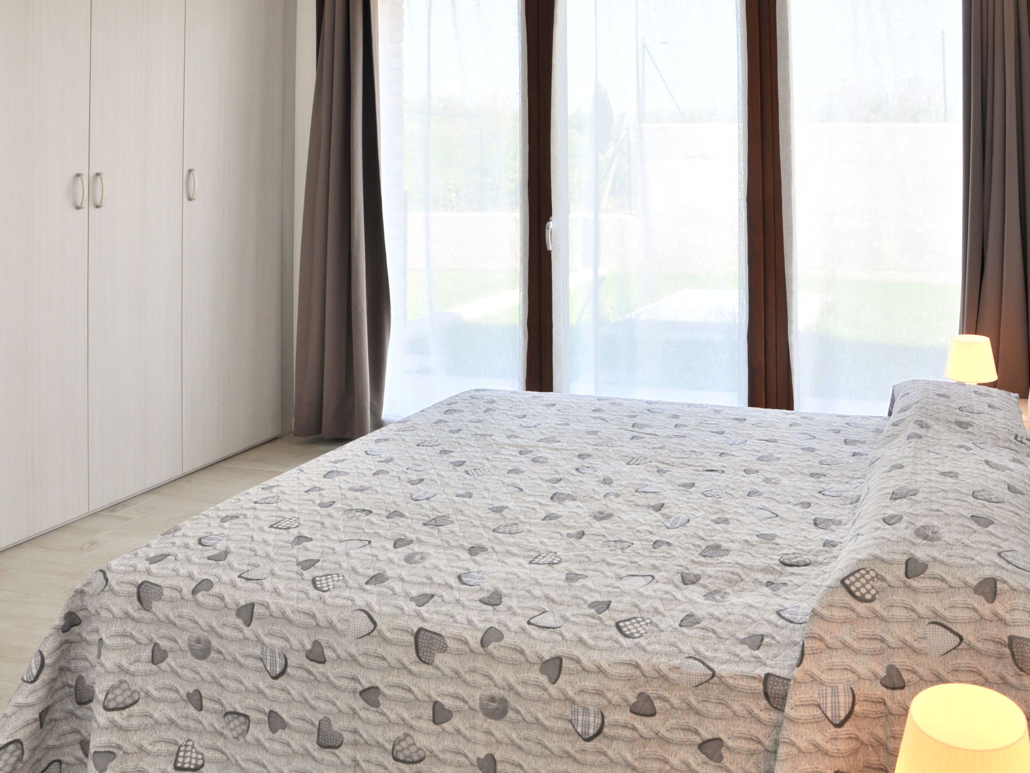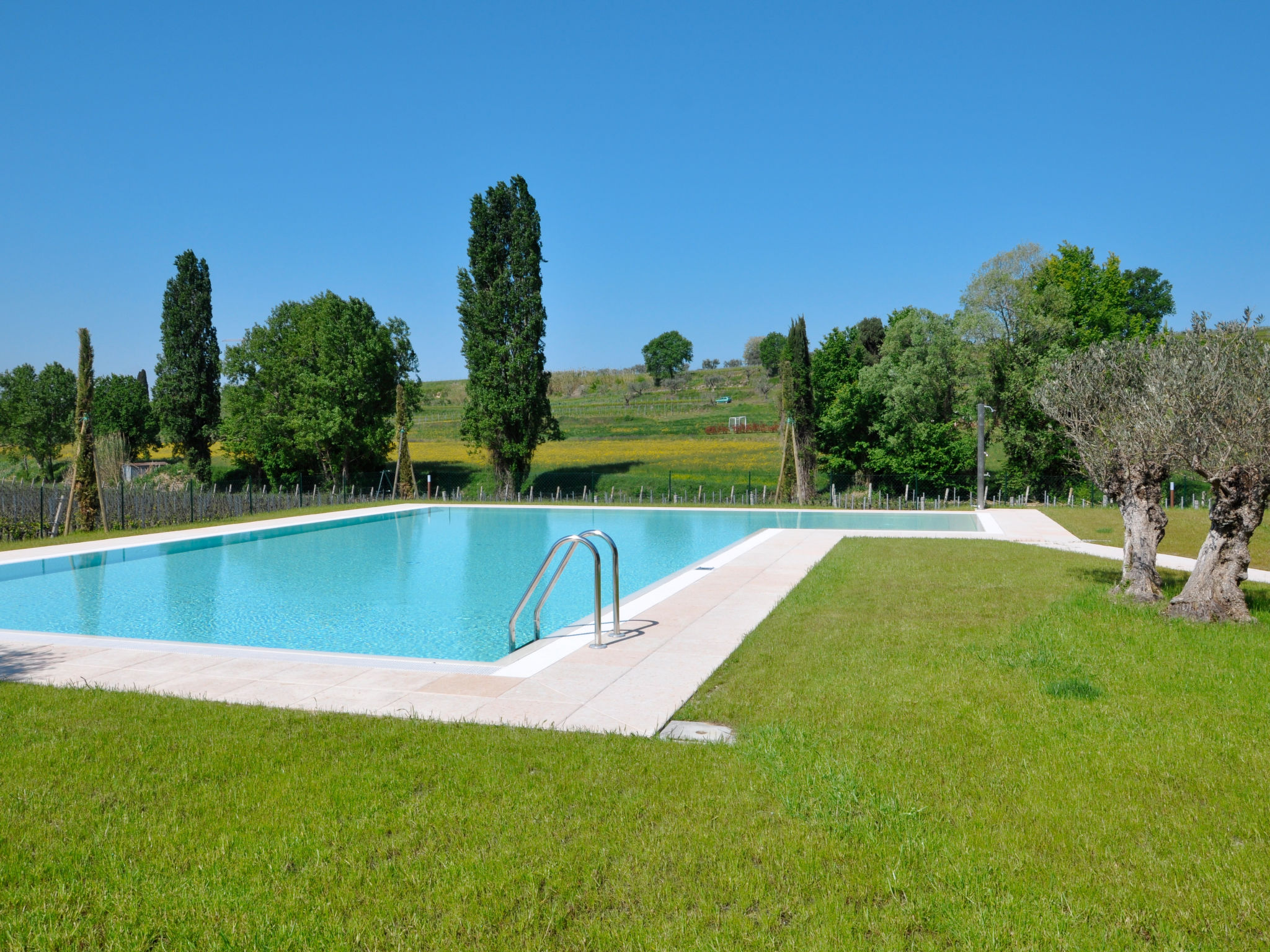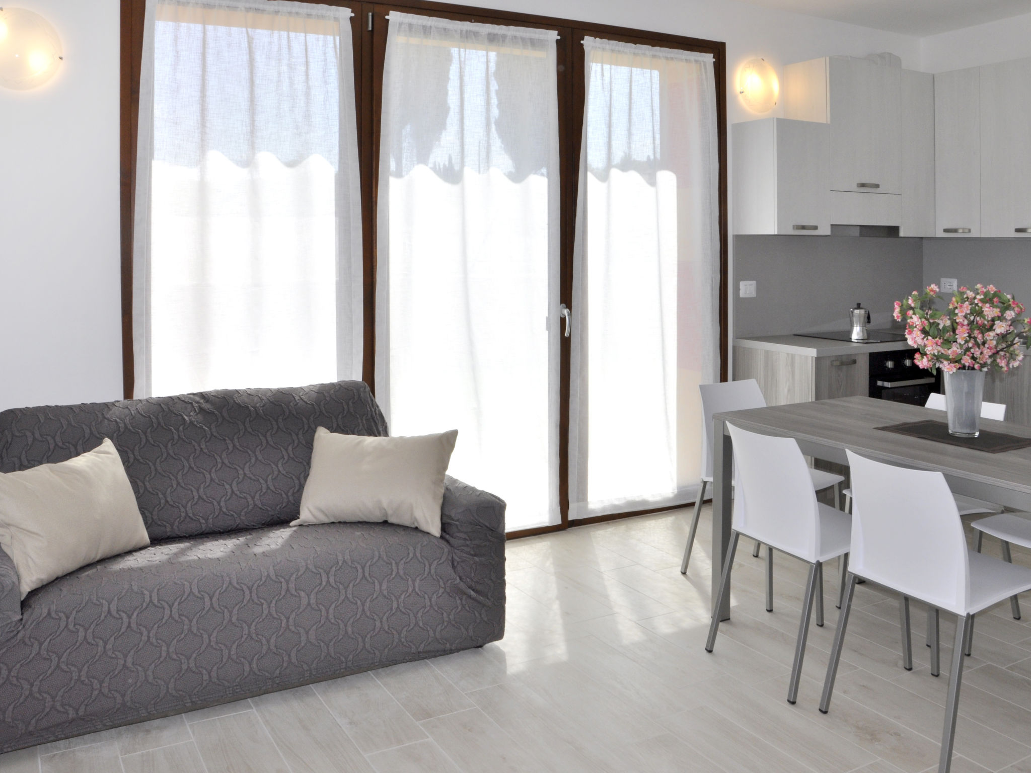 Die 2018 gebaute Residenz I MOLINI mit insgesamt 14 Einheiten steht im Ortsteil Colá, 3 km von Lazise entfernt. Ortsmitte Colá mit Einkaufsmöglichkeiten und Restaurants 1,5 km. Bardolino 6 km. Zum Strand bei Pacengo 2,5 km. Von dort schöne Promenade entlang des Sees bis nach Lazise (2,5 km). Das umzäunte Grundstück liegt eingebettet zwischen Weinreben und Wiesen. Pool (15 x 8 m, ca. 01.05.20-30.09.) mit Liegewiese und Außendusche zur gemeinsamen Nutzung. Zur Wohnung gehören 2 Garagenstellplätze, weitere Parkmöglichkeiten auf dem Parkplatz unmittelbar vor dem Grundstück. Zur Wohnung gehört eine möblierte Terrasse mit Gartenanteil (ca. 50 m²). Neue, moderne Einrichtung. Fliesenboden. Sat-TV. Waschmaschine. Im Wohnraum Klimaanlage (im Zeitraum 26.06.-28.08. im Preis inklusive). Solarheizung. Hinweis: Rauchen ist in der Wohnung nicht gestattet.