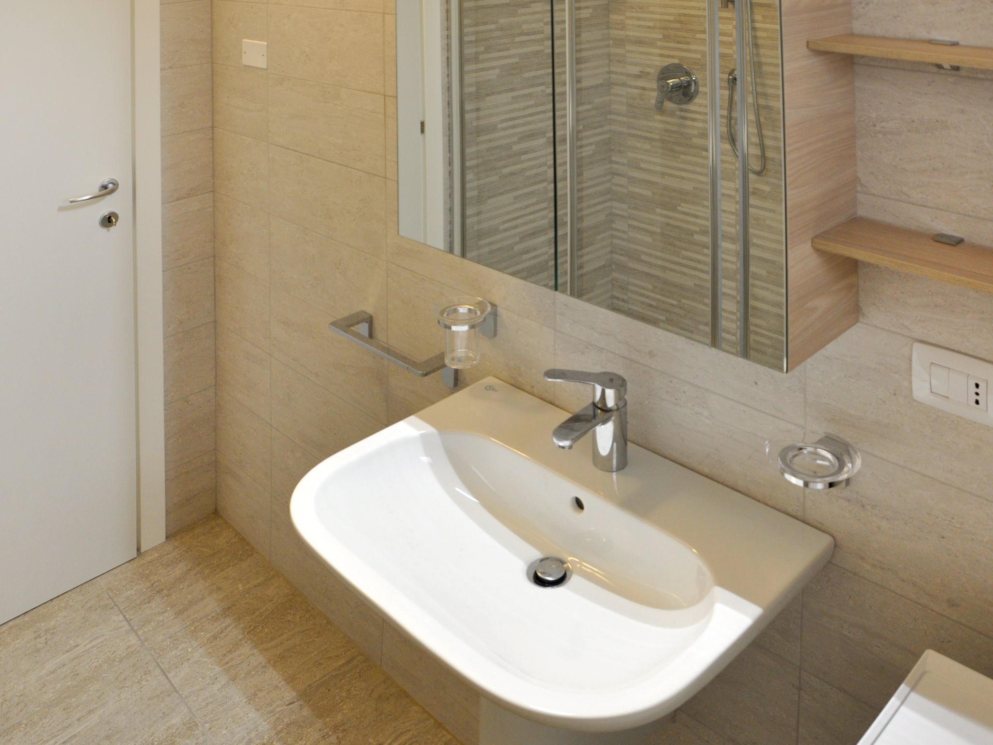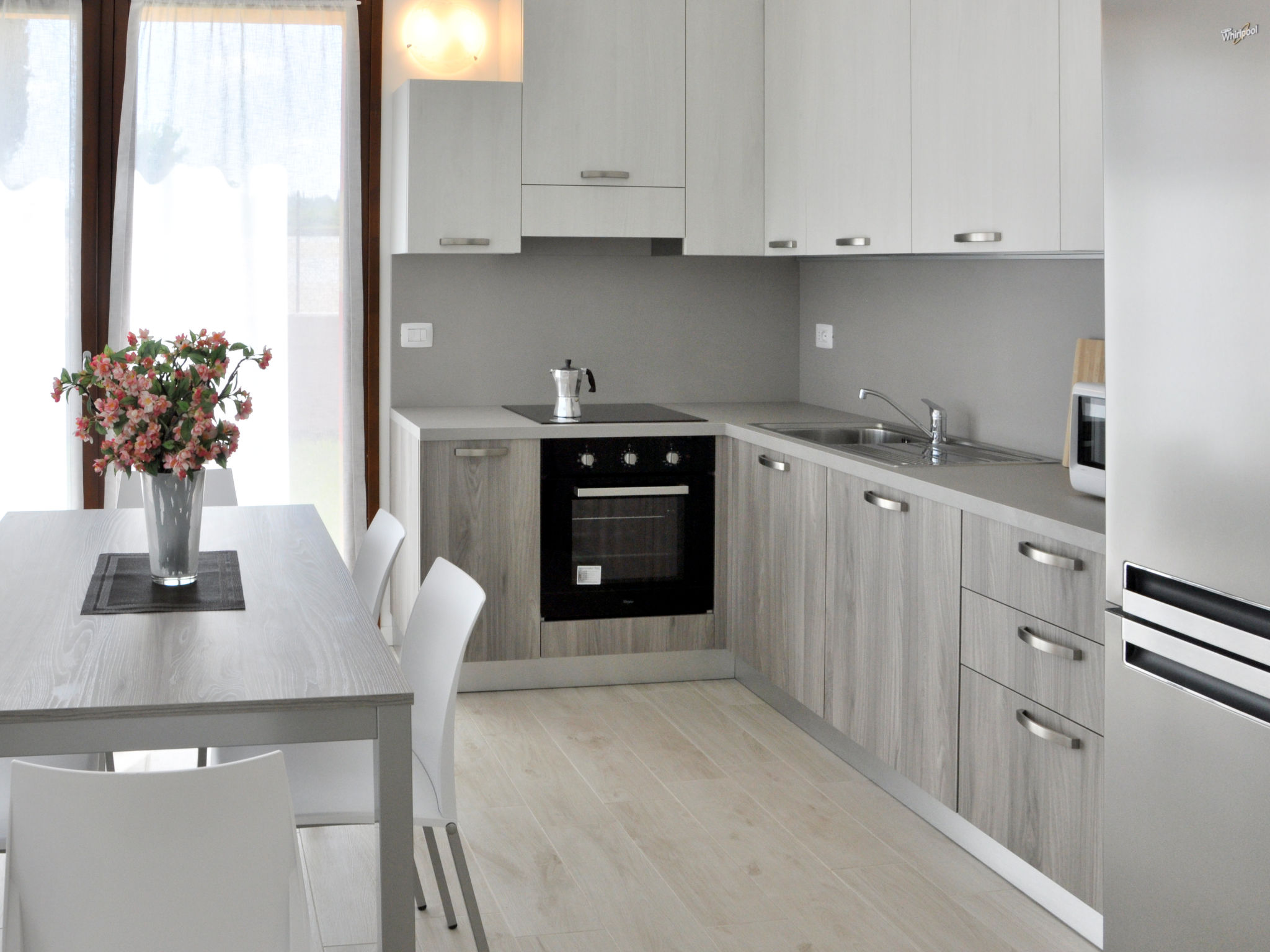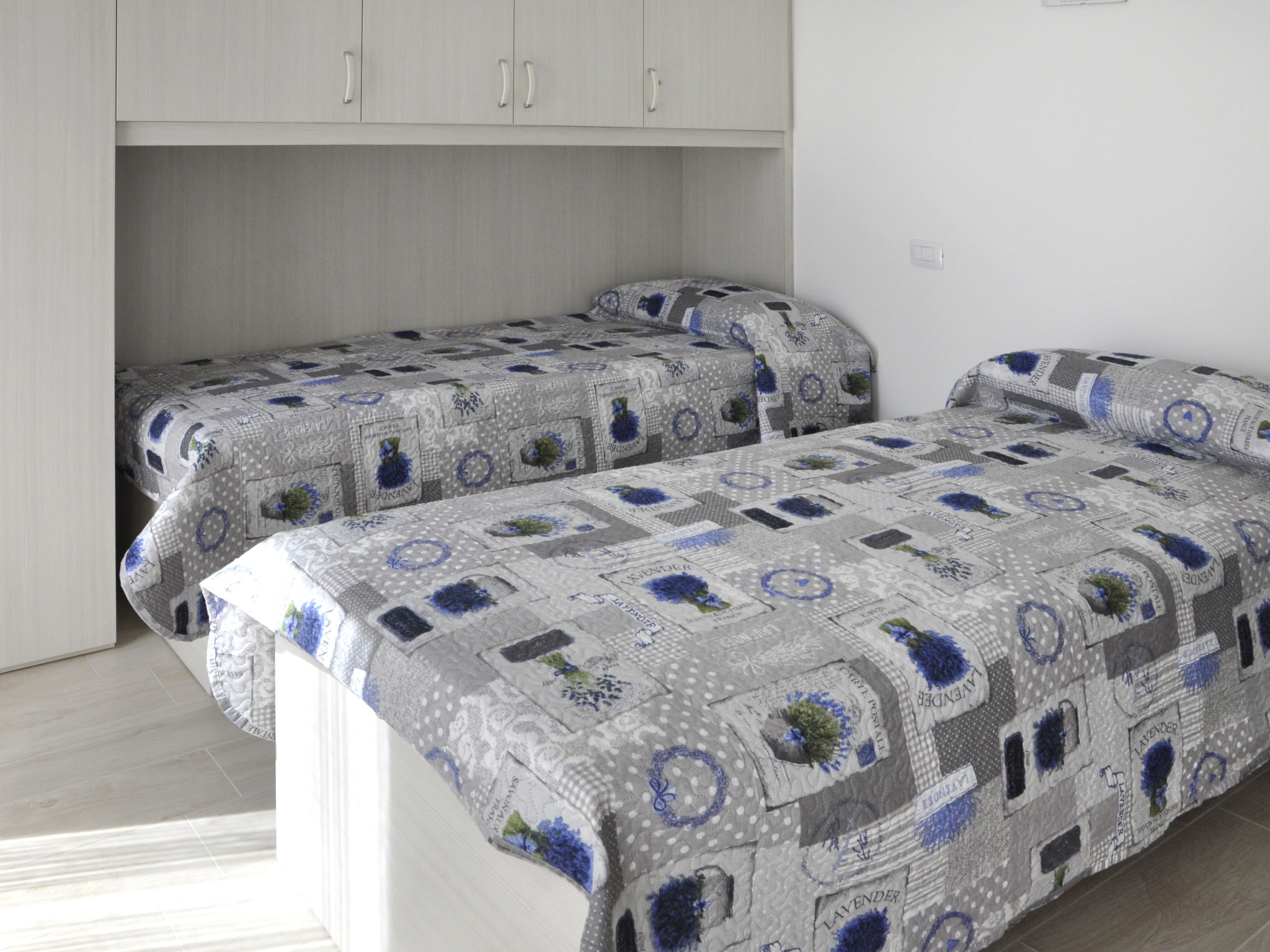 4-Zimmer-Wohnung, Erdgeschoss, ca. 80 m². Wohnraum mit Sitzcouch, Essplatz, Küchenzeile (4 Induktionsfelder, Backofen, Mikrowelle, Geschirrspüler, Kühl-/Gefrierkombination) und Terrassenausgang. Schlafzimmer mit franz. Bett (1,60 m breit), Dusche/WC und Terrassenausgang. Zweibettzimmer mit Terrassenausgang. Kleines Zweibettzimmer. Dusche/WC. CIR:M0230430305