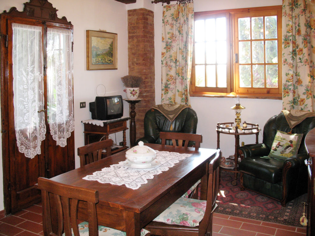 Die beiden Natursteinhäuser CROCINO und CROCINO II stehen mitten im Grünen, 3 km von Marti entfernt. Reizvoller Blick auf die schöne Hügellandschaft. Nach Montopoli 8 km. Zufahrt ca. 900 m über Schotterstraße, Toreinfahrt, gemeinsamer Parkplatz. Ca. 1,5 ha großes terrassiertes Hanggrundstück. Die separate Lage beider Häuser zwischen Wald und Olivenbäumen bietet unseren Kunden ausreichend Privatsphäre, sie können jedoch auch zusammen gebucht werden (MNT 304). Das Ferienhaus Crocino II (MNT 303) verfügt über eine möblierte Terrasse mit Sonnenliegen und Sonnenschirm. Das Ferienhaus Crocino (MNT 301) liegt ca. 50 m unterhalb, vom Parkplatz führt ein privater Fußweg mit einigen Stufen hinab. Hier Grünfläche und Terrasse mit Gartenmöbeln für 6 Personen, Sonnenschirm, Liegestühlen und gemauertem Außengrill. Die Besitzer bewohnen gelegentlich ein weiteres Haus auf dem Grundstück. Gemütliche, gepflegte Wohnatmosphäre. Gediegene Möblierung im klassischen Stil. Cottoböden. Holzbalkendecken, teils holzverkleidet. Sat-TV. MNT 301 mit Fliegengitter in den Schlafzimmern und Gas-Zentralheizung. MNT 303 mit Gasöfen. Hinweise: Die Häuser werden über eigene Zisternen mit Wasser versorgt (keine Trinkwasserqualität). Rauchen ist in den Häusern nicht gestattet.