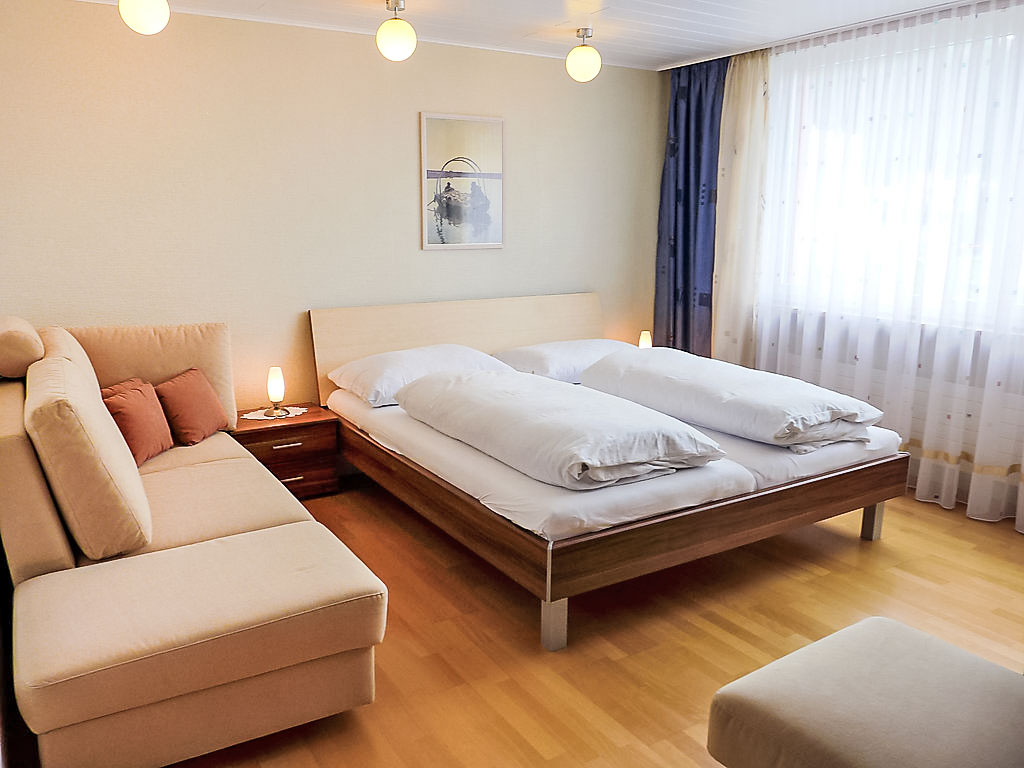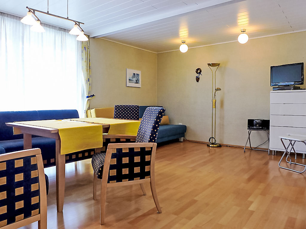 "Appartmenthaus Skyline 309", 2-Zimmer-Wohnung 53 m2 im 3. Stock. Hell, komfortabel eingerichtet: Wohn-/Schlafzimmer mit 2 Diwanbetten (90 cm, Länge 200 cm), Esstisch, Sat-TV und Radio. Ausgang zum Balkon, Richtung Südwesten. 1 Zimmer mit Schiebetür mit 1 Doppelbett (2 x 85 cm, Länge 190 cm). Offene Küche (4 Kochplatten, Backofen, Geschirrspüler, Toaster, Wasserkocher, elektrische Kaffeemaschine). Bad/WC. Parkettböden. Schöne Sicht auf die Berge und die Ortschaft. Zur Verfügung: Haartrockner. Parkplatz beim Haus. Geeignet für Familien.