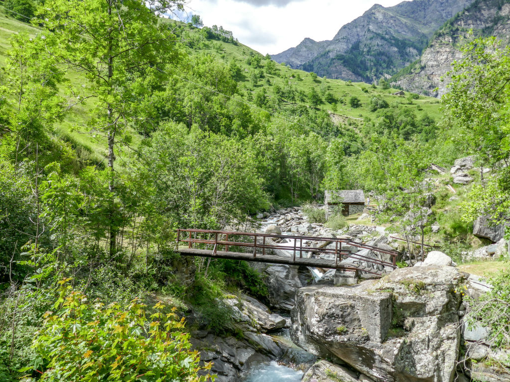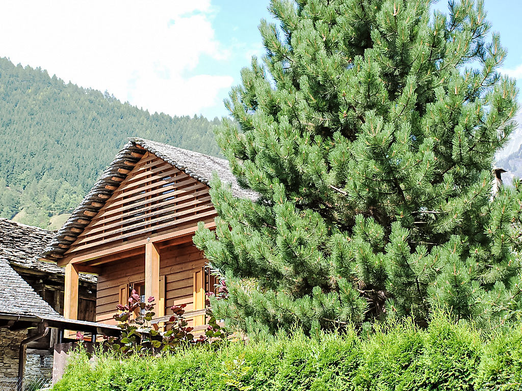 "Casa Fortuna", 3-Zimmer-Chalet 80 m2 auf 3 Stockwerken. Teilweise abgeschrägt, einfach und rustikal eingerichtet: offenes Wohn-/Esszimmer mit offenem Kamin, Radio und G-Heizofen. Ausgang zum Balkon. 1 Zimmer mit 1 Bett (90 cm, Länge 200 cm), 1 x 2 Etagenbetten (90 cm, Länge 200 cm). Offene Küche (4 Kochplatten, Backofen). Dusche/WC. Obergeschoss: 1 abgeschrägtes, offenes Zimmer mit 1 Doppelbett (1 x 160 cm, Länge 200 cm). Kleiner Gartensitzplatz. Terrassenmöbel, Gartengrill, Liegestühle (2). Schöne Sicht auf die Berge. Zur Verfügung: Kinderhochstuhl, Babybett bis 2 Jahre (extra). Bitte beachten: geeignet für Familien. Nichtraucher-Haus.