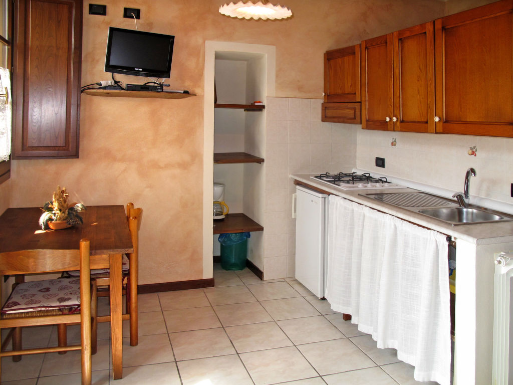 "Santa Margherita", 1-Zimmer-Wohnung 35 m2, im Erdgeschoss. Zweckmässig und schön eingerichtet: 1 offenes Zimmer mit 1 franz. Bett (160 cm). Wohnküche (Mini-Backofen, 4 Flammen, elektrische Kaffeemaschine) mit Esstisch und Sat-TV. Ausgang zur Terrasse. Dusche/WC. G-Heizung. Terrasse 16 m2. Terrassenmöbel. Schöne Panoramasicht. Zur Verfügung: Kinderhochstuhl, Babybett bis 2 Jahre. Internet (Wireless LAN, gratis). Bitte beachten: Nichtraucher-Unterkunft. Eigener Eingang.