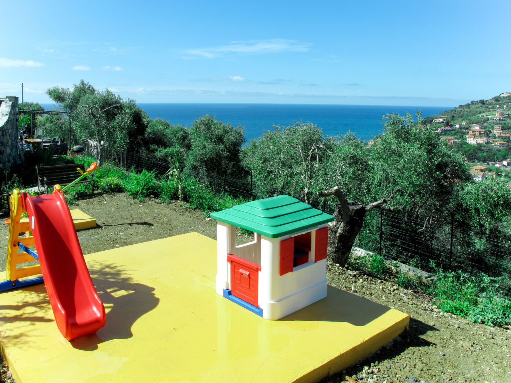 Kleine, schöne, gemütliche Residenz "Villa Monte Calvario". 5 Wohnungen in der Residenz. 2 km vom Zentrum von Imperia - Porto Maurizio, 5 km vom Zentrum von San Lorenzo al Mare, 23 km vom Zentrum von Sanremo, erhöhte Lage am Hang, in einem Wohnquartier, 1.5 km vom Meer, im Grünen. Zur Mitbenutzung: Grundstück 1'000 m2 mit Rasen und Pflanzen. Tischtennis, Kinderspielplatz (Rutschbahn, Schaukel). Treppenweg bis zum Haus. Parkplatz (beschränkte Anzahl) auf dem Grundstück. Supermarkt 600 m, Bahnstation "Imperia" 6 km, Sandstrand 2 km, Kieselstrand 1.5 km, Hallenbad 3 km. Jacht-Hafen 2 km, Reitstall 8 km, Radweg 2 km. Bitte beachten: In diesem Haus sind weitere Ferienwohnungen mietbar.