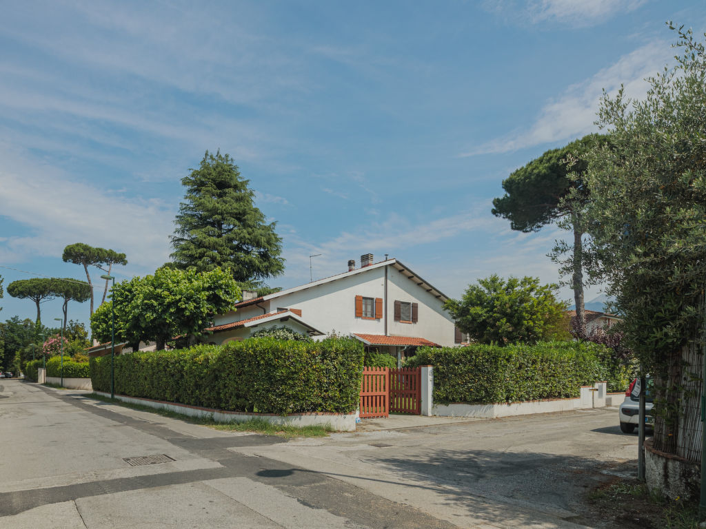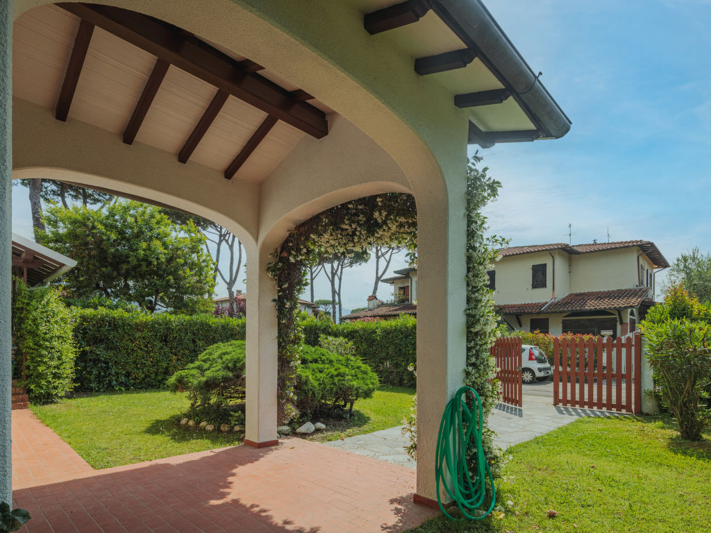 Haus "Bona". Im Ortsteil Vittoria Apuana, 3.2 km vom Zentrum von Forte dei Marmi, 16 km vom Zentrum von Viareggio, 37 km vom Zentrum von Lucca, in einem Wohnquartier, 1.1 km vom Meer. Zur Alleinbenutzung: Grundstück 300 m2 (eingezäunt), Pflanzen und Bäumen, Wiese. Terrasse, Gartenmöbel, Grill, Parkplatz (für 2 Autos) auf dem Grundstück. Einkaufsgeschäft 120 m, Supermarkt 750 m, Sandstrand 1.1 km. Golfplatz 1.3 km.
