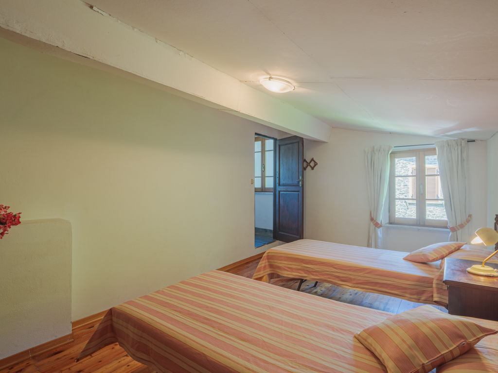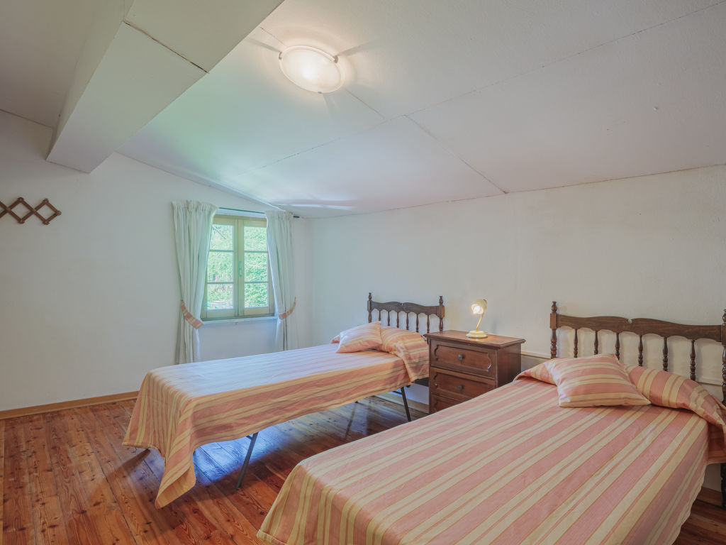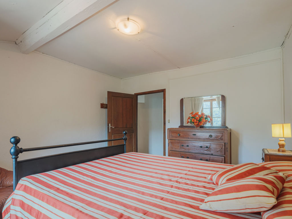 8-Zimmer-Haus 150 m2 auf 3 Stockwerken. Zweckmässig und rustikal eingerichtet: Wohnzimmer mit Sat-TV. 1 Zimmer mit 1 Doppelbett. Abgeschrägter Zwischenstock mit 2 Betten. Grosse Küche (Backofen, Geschirrspüler, 5 Flammen, Tiefkühler, elektrische Kaffeemaschine) mit offenem Kamin, Esstisch und Essecke. 2 Duschen/WC. Obergeschoss: 1 Zimmer mit 1 Doppelbett. 1 Zimmer mit 2 Betten. 1 Zimmer mit 1 franz. Bett (130 cm). 1 Zimmer mit 1 x 2 Etagenbetten. 2 Duschen/WC. Keine Heizmöglichkeit. Kleiner Balkon, Terrasse, Laube. Terrassenmöbel, Gartengrill, Liegestühle (4). Schöne Panoramasicht auf die Berge, das Tal und den Wald. Zur Verfügung: Waschmaschine, Bügeleisen, Babybett. Internet (Wireless LAN, gratis). Bitte beachten: Nichtraucher-Haus.