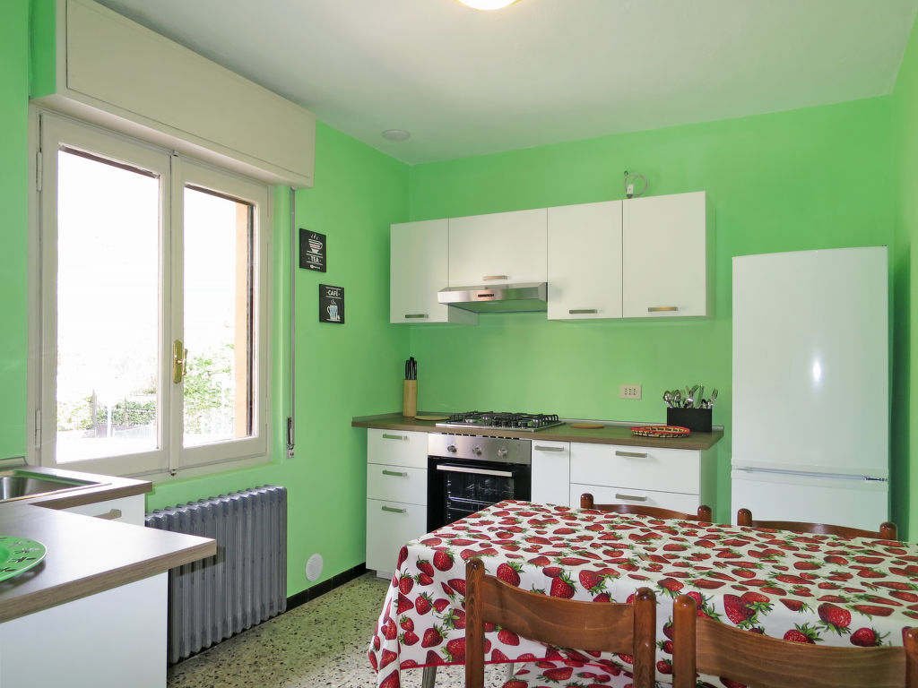 4-Zimmer-Wohnung, 1. Etage, ca. 85 m². Separater Zugang über Außentreppe. Wohnraum mit Sitzgruppe, Essplatz. Küche (4 Flammen, Backofen, Geschirrspüler, Kühl-/Gefrierkombination, Kaffeemaschine, Wasserkocher, Toaster) mit Essplatz für 4 Personen. 2 Schlafzimmer, jeweils mit franz. Bett (1,60 m breit). Zweibettzimmer. Bad/WC. CIR: 013047-CNI-00003