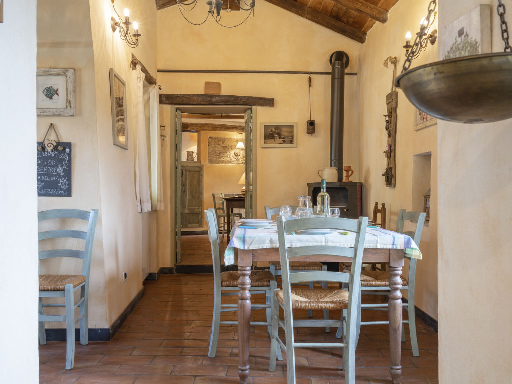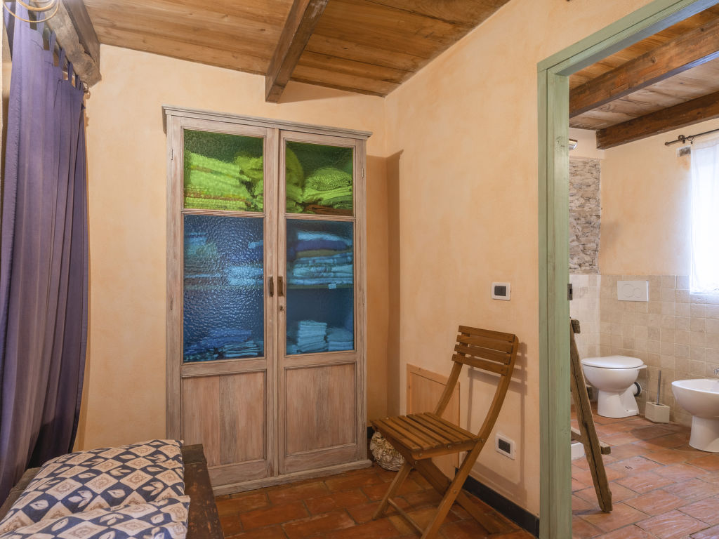 "Vittorina (CSB217)", 5-Zimmer-Haus 150 m2 auf 3 Stockwerken. Geschmackvoll und gemütlich eingerichtet: Esszimmer mit Schwedenofen und Esstisch. Ausgang zum Garten. Offene Küche (Backofen, Geschirrspüler, 4 Flammen, Toaster, Wasserkocher, Tiefkühler, elektrische Kaffeemaschine). Dusche/Bidet/WC. Obergeschoss: Wohnzimmer mit offenem Kamin und TV. Ausgang zur Terrasse. 1 Zimmer mit 1 franz. Bett (160 cm). 1 Zimmer mit 1 Bett (90 cm). Dusche/Bidet/WC. 2. Obergeschoss: 1 Zimmer mit 1 franz. Bett (140 cm). Ausgang zum Balkon. Parkettböden. Kleiner Balkon Terrasse, Laube. Terrassenmöbel, Gartengrill (mobil), Abstellkammer. Eingeschränkte Sicht auf die Landschaft. Zur Verfügung: Waschmaschine, Bügeleisen, Fliegengitter, Kinderhochstuhl, Babybett. Internet (Wireless LAN, gratis). Maximal 1 Haustier/Hund erlaubt. CITRA: 008018-LT-0003