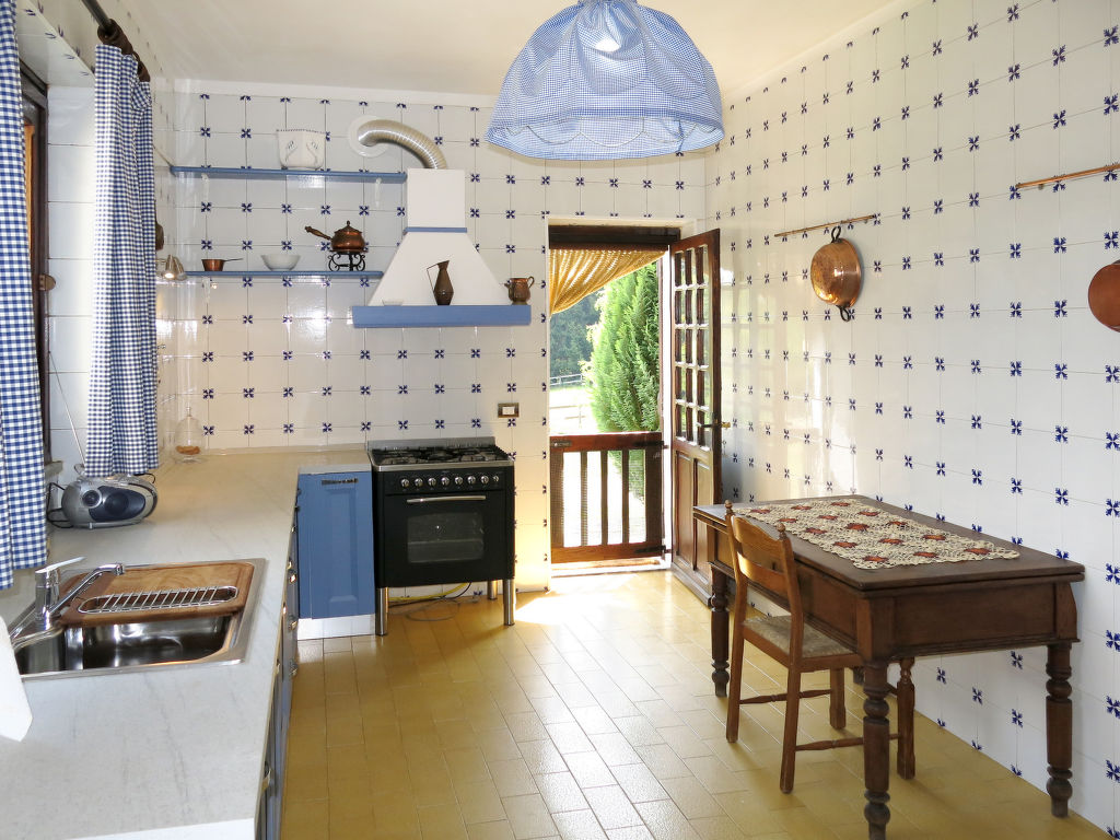 "La Bertolina (VVO300)", 7-Zimmer-Haus 400 m2 auf 2 Stockwerken. Teilweise renoviert im Jahre 2018, geschmackvoll eingerichtet: grosses Wohn-/Esszimmer mit offenem Kamin (nur Deko), TV und Stereoanlage. Ausgang zur Terrasse. Esszimmer mit Esstisch, TV und Holzofen. Küche (Backofen, Geschirrspüler, 5 Flammen, Toaster, Wasserkocher, Mikrowelle, Tiefkühler, elektrische Kaffeemaschine) mit TV. Ausgang zum Garten. Sep. WC. Obergeschoss: 1 Zimmer mit 1 franz. Bett (160 cm), Bad/WC und TV. 2 Zimmer, jedes Zimmer mit 1 franz. Bett (160 cm), Dusche/WC. 2 Zimmer, jedes Zimmer mit 2 Betten und Dusche/WC. Heizung. Parkettböden, Natursteinböden. Terrasse 20 m2, überdacht, grosser Gartensitzplatz. Terrassenmöbel, Gartengrill (mobil), Liegestühle. Schöne Panoramasicht auf die Landschaft und den Wald. Zur Verfügung: Waschmaschine, Bügeleisen, Kinderhochstuhl, Babybett. Internet (Wireless LAN, gratis). Bitte beachten: Nichtraucher-Haus. 2 Haustiere/Hunde erlaubt. Eigener Eingang. Bei Belegung mit weniger Personen als der maximalen Personenzahl stehen nicht alle Schlafzimmer zur Verfügung. CIR: 09608200001