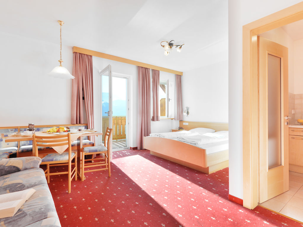 "Residence Egger 303", 1-Zimmer-Wohnung 32 m2 im 2. Stock. Hell, zweckmässig und gemütlich eingerichtet: Wohn-/Schlafzimmer mit 1 Doppelbett, Essecke und Sat-TV. Ausgang zum Balkon. Kleine Küche (Geschirrspüler, 4 Glaskeramikherd Platten, Toaster, Wasserkocher, Mikrowelle, elektrische Kaffeemaschine). Dusche/WC. Heizung. Teppichboden. Balkon. Balkonmöbel. Herrliche Panoramasicht auf die Berge und das Tal. Zur Verfügung: Safe, Kinderhochstuhl, Babybett. Internet (Wireless LAN, gratis). Bitte beachten: Nichtraucher-Unterkunft. 1 Haustier/Hund erlaubt. Es werden keine zusätzlichen Gebühren vor Ort fällig, ausgenommen der örtlichen Kurtaxe. Bettwäsche, Handtücher, Endreinigung und Stromkosten sind inkludiert.