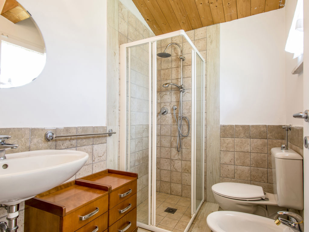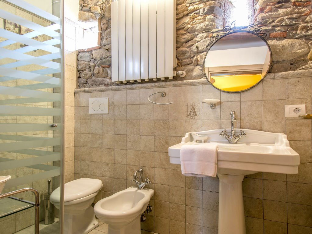 8-Zimmer-Haus 200 m2 auf 2 Stockwerken. Hell, antik und geschmackvoll eingerichtet: Wohnzimmer mit offenem Kamin, Sat-TV, Radio, CD und DVD. Wohn-/Schlafzimmer mit 1 franz. Bett (160 cm), Heizofen. Ausgang zum Garten. 1 Zimmer mit 1 franz. Bett (160 cm). Ausgang zur Terrasse. 1 Zimmer mit 1 franz. Bett (160 cm), Dusche/WC. Ausgang zum Garten. Offene Küche (Backofen, Geschirrspüler, 4 Flammen, Mikrowelle, Tiefkühler, elektrische Kaffeemaschine) mit Esstisch, Heizofen. Ausgang zur Terrasse. Dusche/WC. Obergeschoss: Durchgangszimmer mit 1 franz. Bett (160 cm), Dusche/WC. Verbundenes Zimmer mit 1 franz. Bett (160 cm). 1 Zimmer mit 2 Betten. 1 Zimmer mit 1 franz. Bett (160 cm). Dusche/WC. Heizung, Klimaanlage. Terrasse 60 m2 teilweise überdacht. Terrassenmöbel, Gartengrill, Liegestühle, Abstellkammer. Panoramasicht. Zur Verfügung: Waschmaschine, Bügeleisen, Kinderhochstuhl, Babybett bis 2 Jahre. Internet (Wireless LAN, gratis). Bitte beachten: Nichtraucher-Unterkunft. Maximal 2 Haustiere/Hunde erlaubt. Keine interne Verbindung zwischen den separaten Wohneinheiten. Bei Belegung mit weniger Personen als der maximalen Personenzahl steht das Nebengebäude nicht zur Verfügung.
