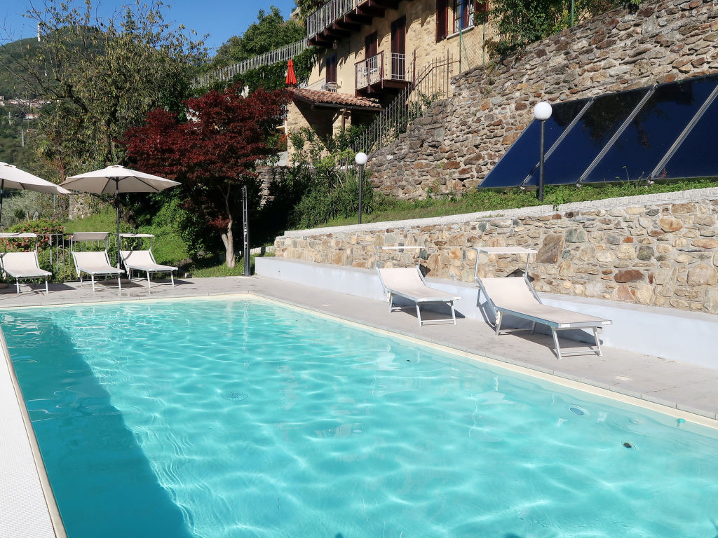 Haus VIOLA steht in bester Panoramalage am Hang oberhalb der Altstadt von Gravedona. Ortsmitte ca. 350 m zu Fuß, Strand 2 km. Die Straße zu den höher gelegenen Dörfern Peglio, Livo und Dosso führt am Haus vorbei. Die Besitzer wohnen in der 2. Etage. Umzäuntes Gartengrundstück in steiler, terrassierter Hanglage mit Grill zur gemeinsamen Nutzung. Über Treppen erreicht man auf der höchsten Hangterrasse, oberhalb des Hauses mit wunderbarem Seeblick, den Pool (10,40 x 4,20 m, 1,20 m tief, 01.05.-01.10.), zur gemeinsamen Nutzung mit den Besitzern und den Gästen des Nachbarhauses (2 Wohnungen). Poolmobiliar. 1 reservierter Parkplatz pro Wohnung. Die Ferienwohnung GRV 261 hat einen teilüberdachten Südostbalkon mit Seeblick. GRV 262 hat einen Südbalkon mit Markise, Mobiliar und Zugang zu Terrasse, jeweils mit wunderbarem Seeblick auf den oberen und mittleren Comer See. Die Wohnungen wurden zur Saison 2019 umfassend renoviert. Sie sind gut und modern eingerichtet. Laminat- und Fliesenboden. Waschmaschine. Sat-TV. Internetzugang (WLAN, inklusive). Gas-Zentralheizung. Klimaanlage (in GRV 262 nicht in allen Räumen).