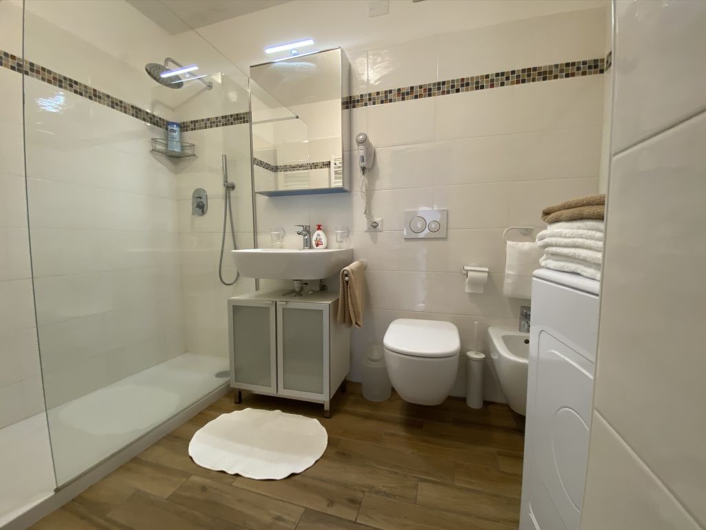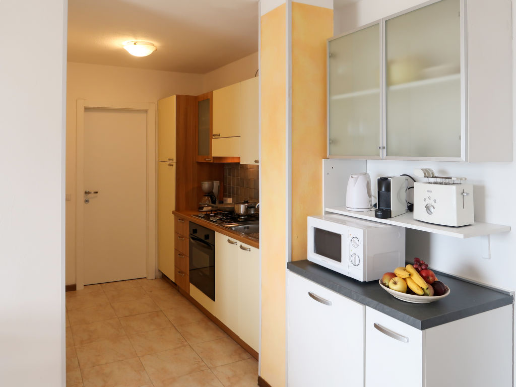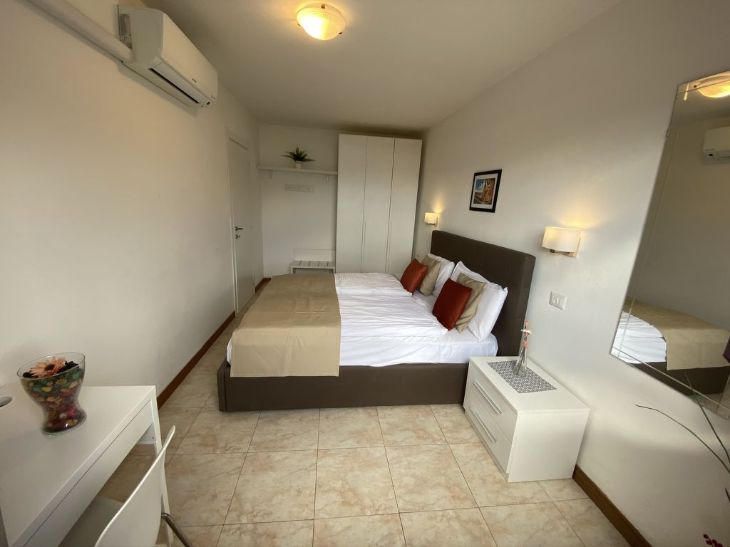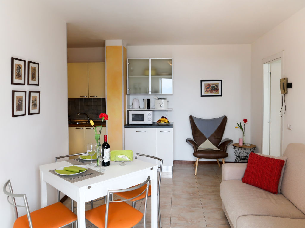 3-Zimmer-Wohnung, Hochparterre, ca. 45 m². Separater Zugang über Außentreppe und Balkon in Wohnraum mit Sitzcouch, Essplatz und Küchenzeile (4 Flammen, Backofen, Mikrowelle, Geschirrspüler, Kühlschrank, Kaffeemaschine, Wasserkocher, Toaster). Schlafzimmer mit franz. Bett (1,60 m breit). Zweibettzimmer. Neue Dusche/WC. CIR: 013249-CNI-00141