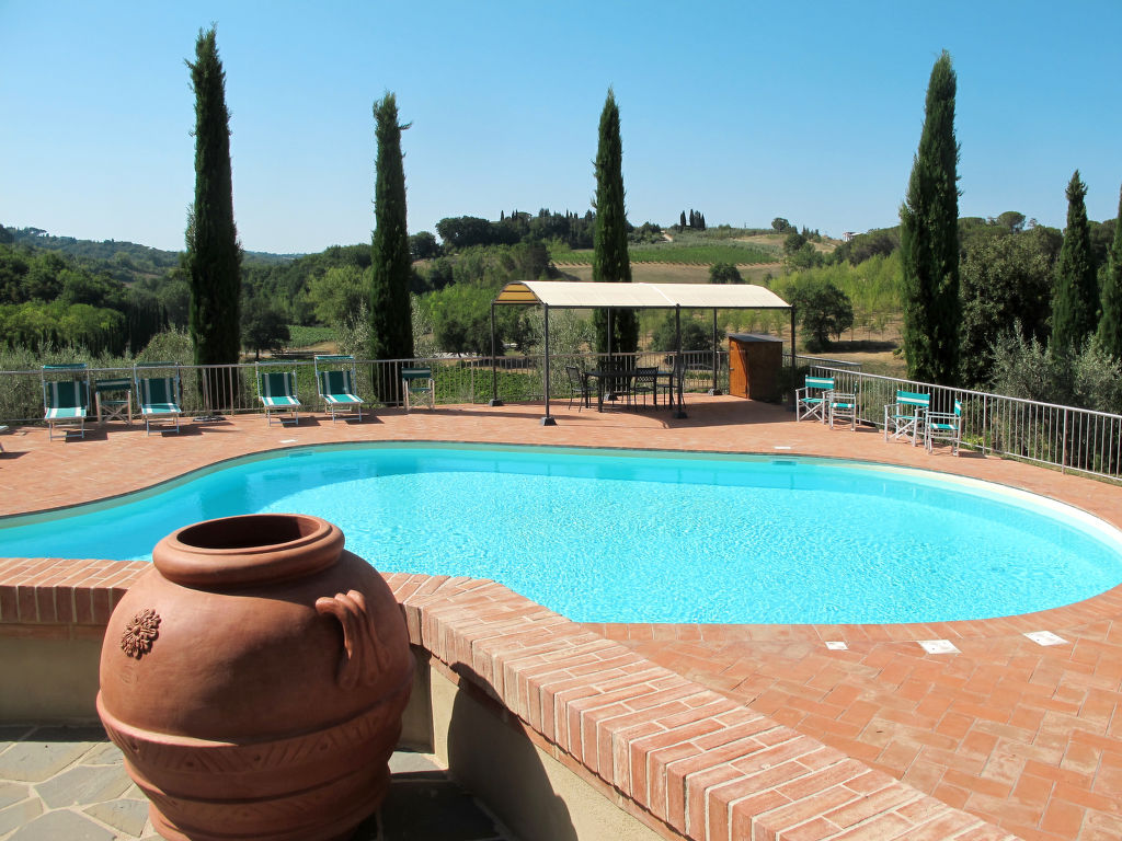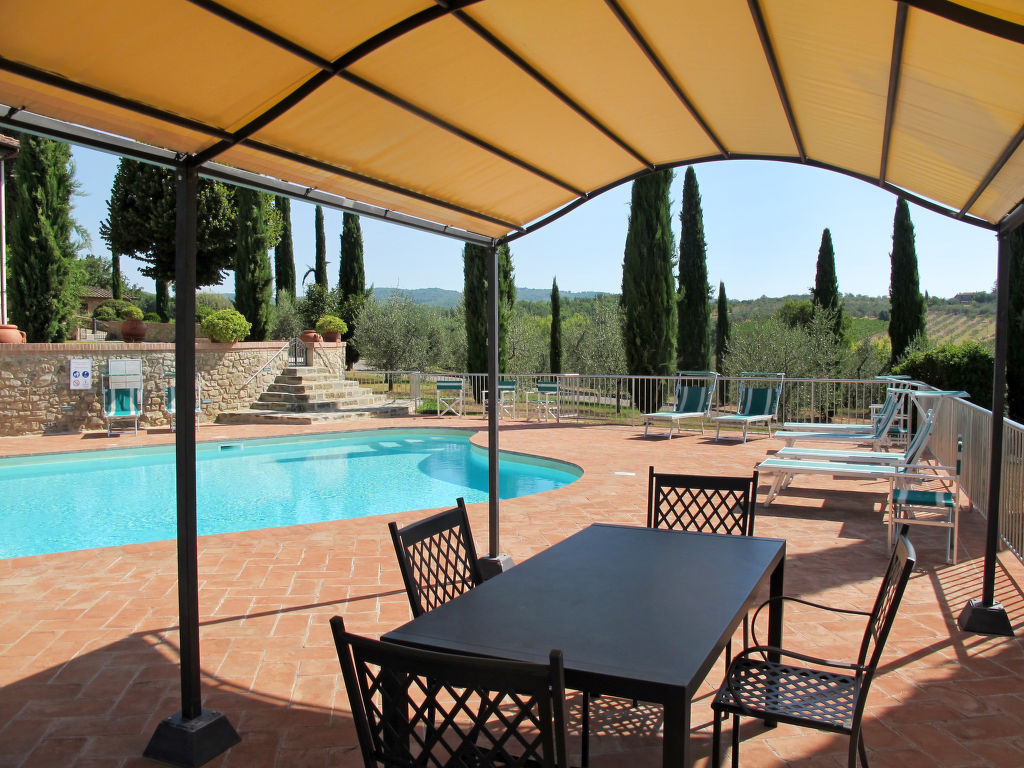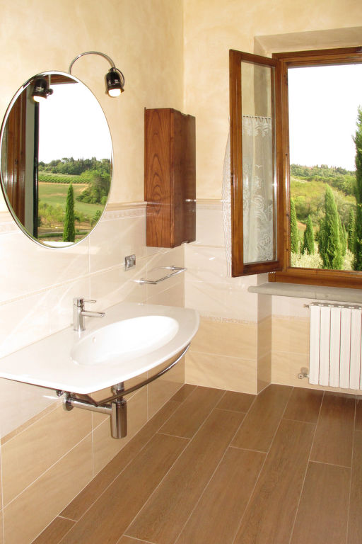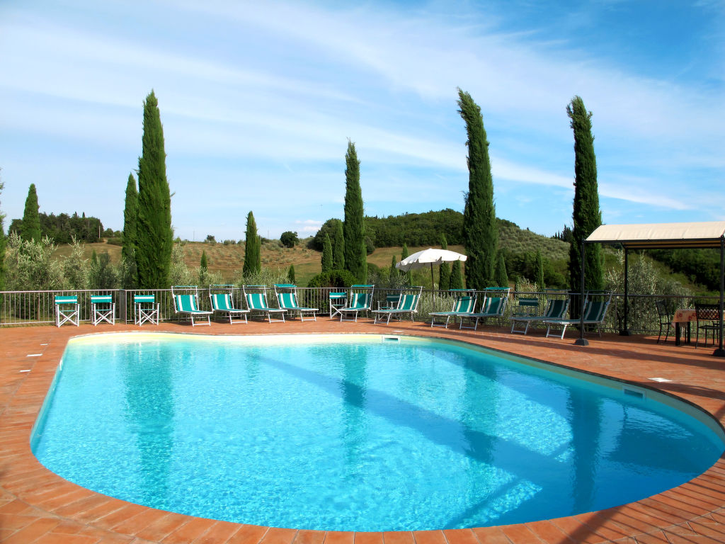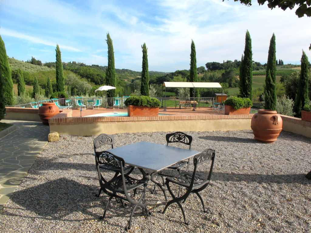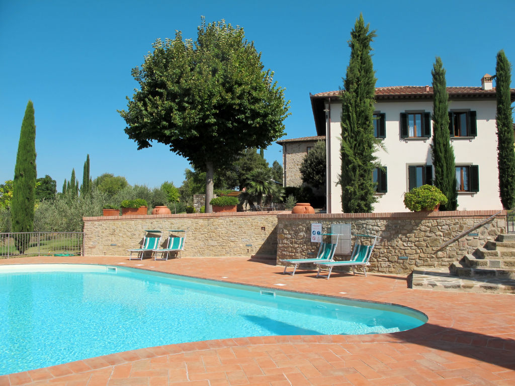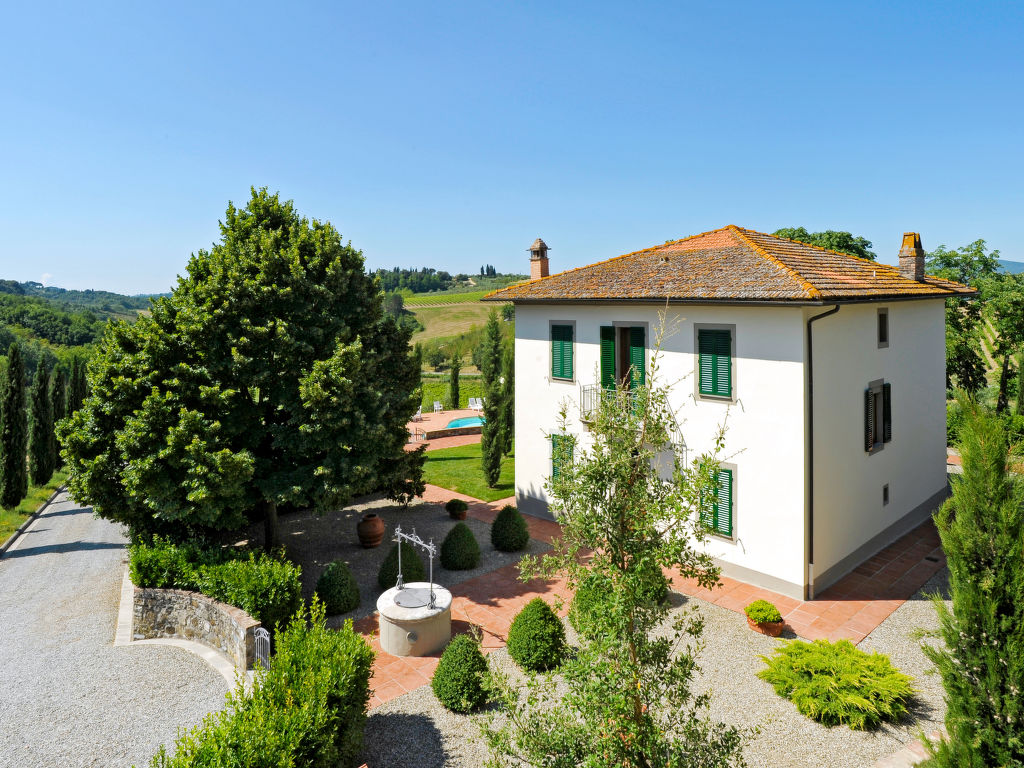 Komfortabel auf Weingut Villa "Le Gallozzole", aus dem 18. Jahrhundert, umgeben von Bäumen und Weinbergen. Oberhalb von Quercegrossa (3 km), 10 km vom Zentrum von Castellina in Chianti, 9 km vom Zentrum von Siena, ausserhalb des Ortes, 50 km vom Zentrum von Florenz, auf einem Hügel, im Grünen. Zur Mitbenutzung: Grundstück 1 ha mit Bäumen. Zur Alleinbenutzung: schöner, gepflegter Garten 1'000 m2 (eingezäunt) mit Blumen und Bäumen, Wiese, Schwimmbad (77 m2, 120 - 195 cm tief, 02.05.-24.10.). Aussendusche, Terrasse. In der Anlage: Empfang, Wireless LAN. 300 m lange Zufahrt (Naturweg). Parkplatz auf dem Grundstück. Lebensmittelgeschäft 3 km, Supermarkt 5 km, Restaurant 4 km, Bahnstation "Badesse" 5 km. Nahe gelegene Sehenswürdigkeiten: Wine area Chianti Classico 10 m. Ab Hof Verkauf von bäuerlichen Produkten.