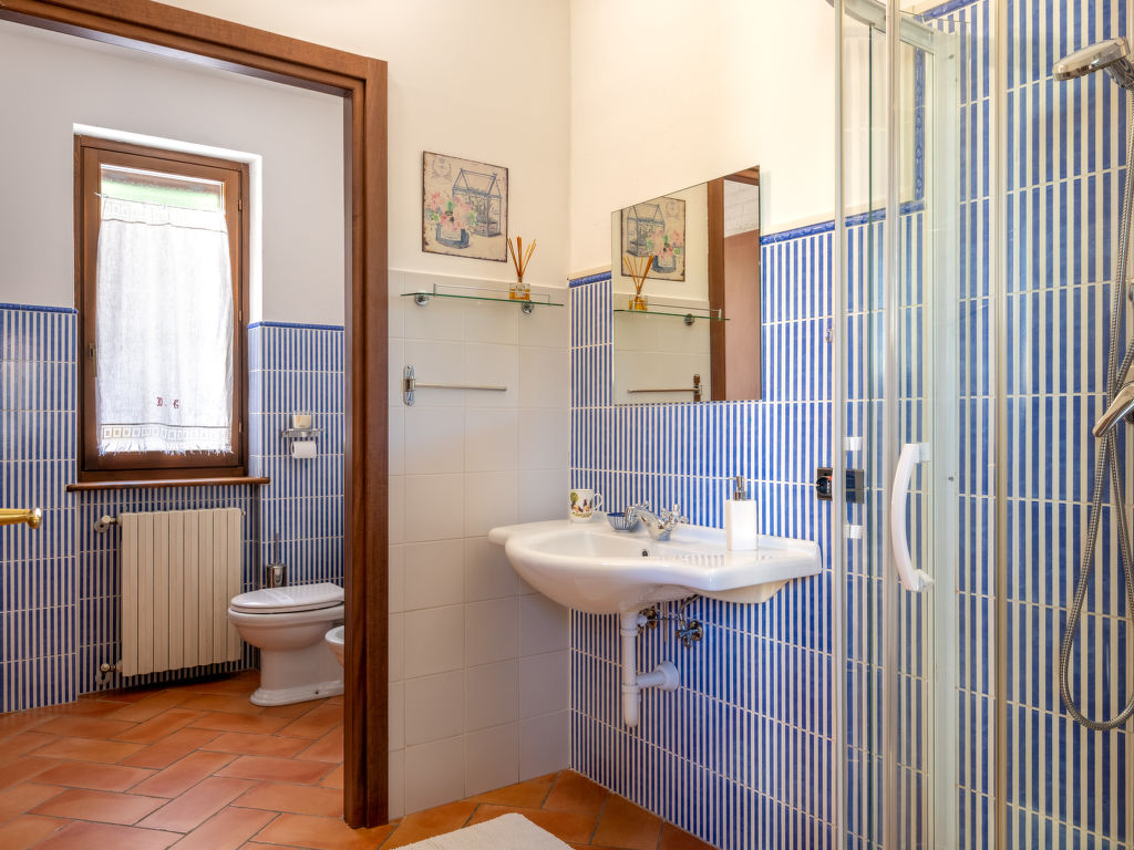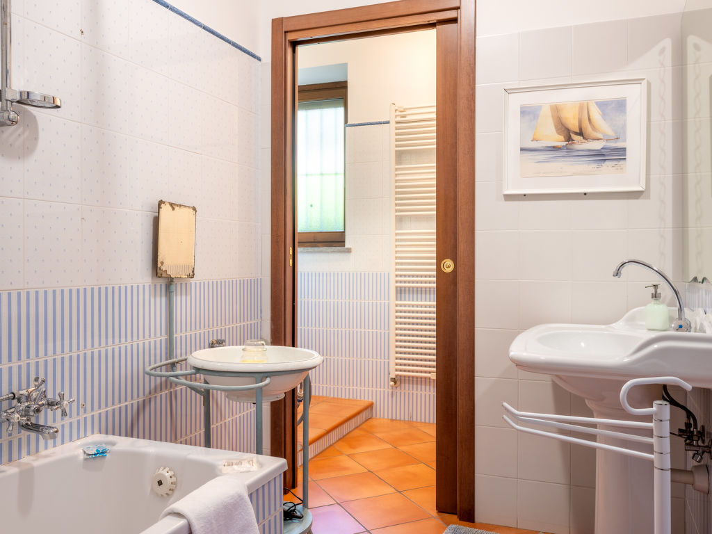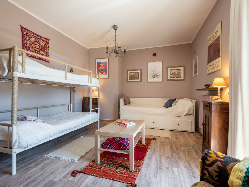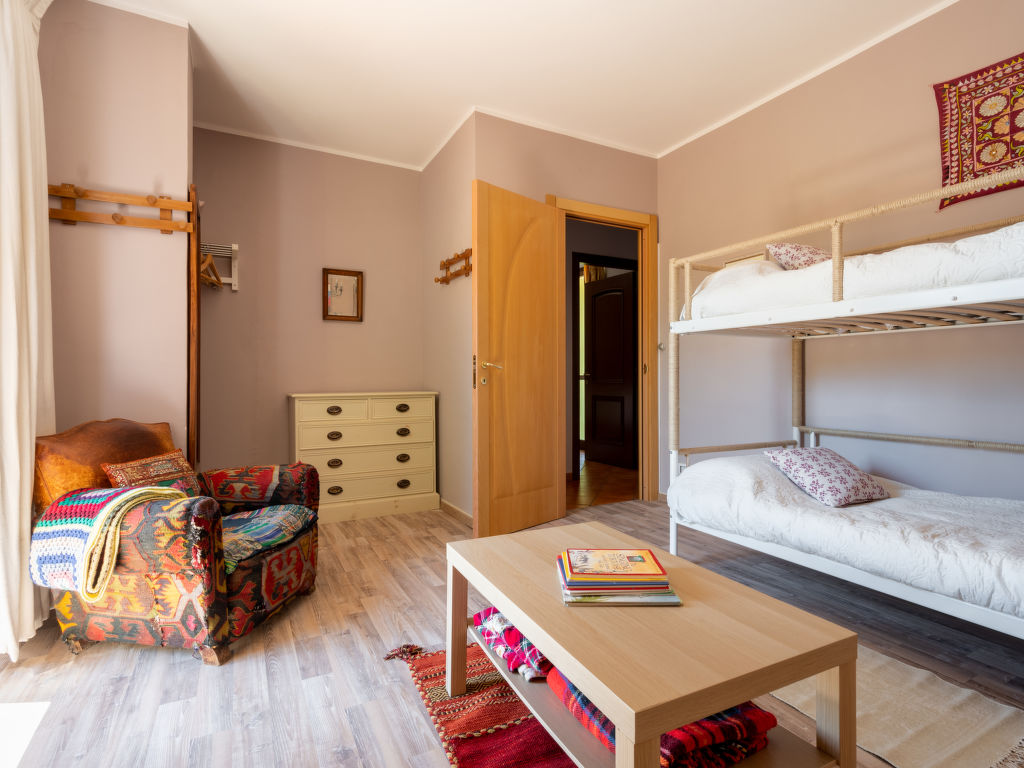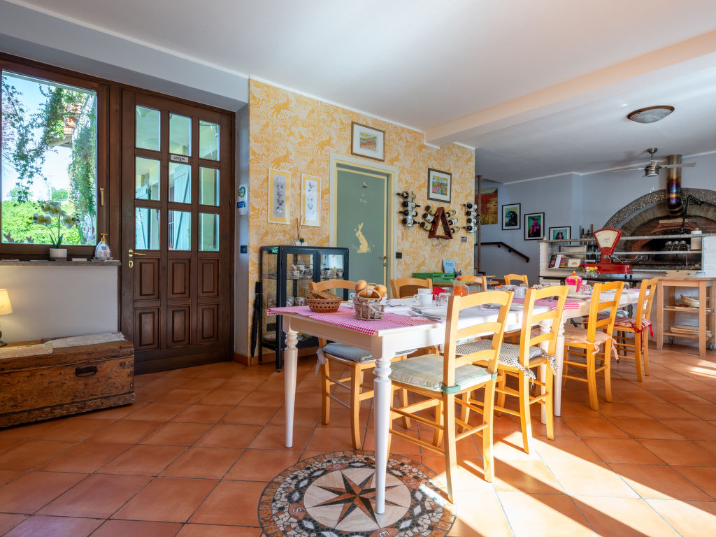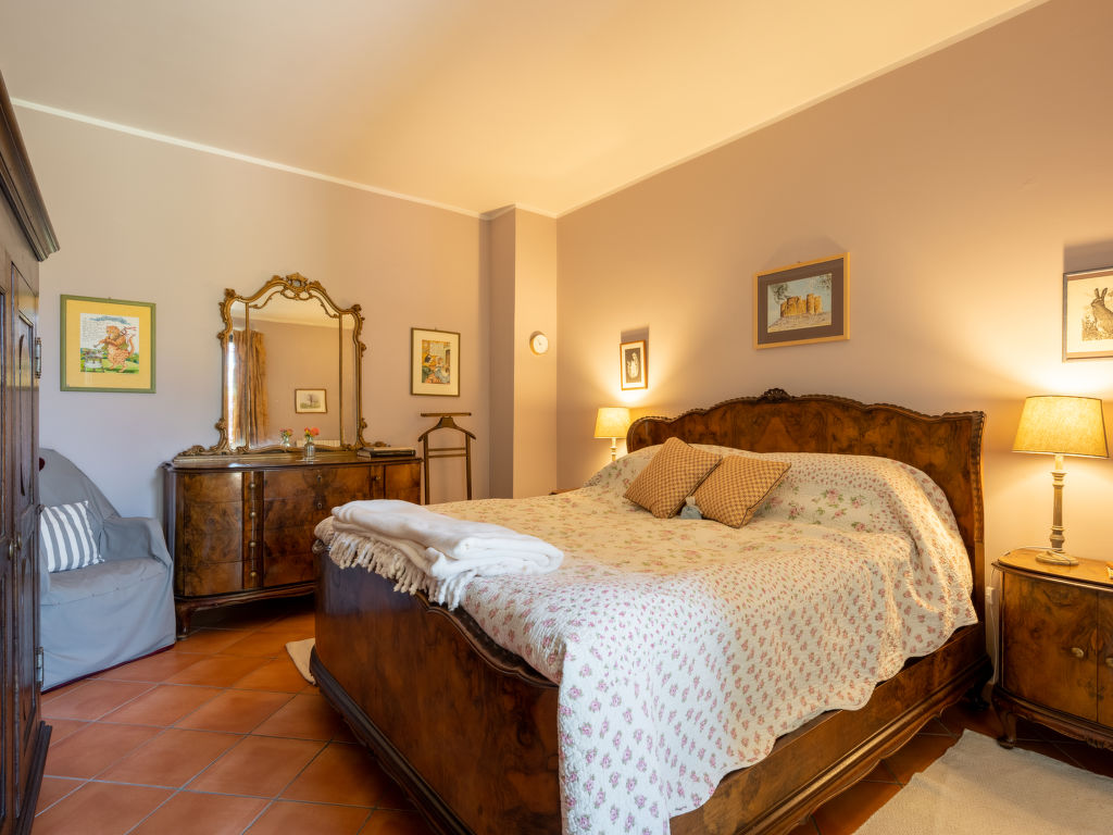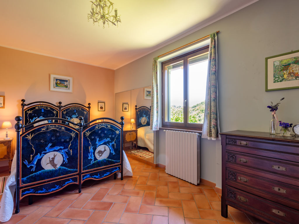 "La Lepre Danzante (BOG100)", 6-Zimmer-Doppelhaushälfte 180 m2 auf 2 Stockwerken. Hell, renoviert im Jahre 2019, gemütlich eingerichtet: Wohn-/Schlafzimmer mit 1 Bett, offenem Kamin und TV. Ausgang zum Garten. 1 Zimmer mit 1 franz. Bett (160 cm), Dusche/WC. Küche (Backofen, 4 Flammen, Toaster, Wasserkocher, Tiefkühler, elektrische Kaffeemaschine) mit Esstisch. Ausgang zum Garten. Sep. WC. Obergeschoss: 1 Zimmer mit 1 franz. Bett (160 cm). 1 Zimmer mit 1 Bett und 1 Doppeldiwanbett (160 cm). Ausgang zum Balkon. 1 Zimmer mit 1 Doppelbett. Ausgang zum Balkon. 1 Zimmer mit 1 Bett und 1 x 2 Etagenbetten, 1 Ausziehbett. Dusche/WC, Sitzbad/WC. G-Heizung. 2 Balkone, Terrasse. Terrassenmöbel, Balkonmöbel, Gartengrill. Panoramasicht auf die Landschaft. Zur Verfügung: Waschmaschine, Kinderhochstuhl, Babybett. Internet (Wireless LAN, gratis). Bitte beachten: Nichtraucher-Unterkunft. 2 Haustiere/Hunde erlaubt. Bei Belegung mit weniger Personen als der maximalen Personenzahl stehen nicht alle Schlafzimmer zur Verfügung. CIR:00402400005