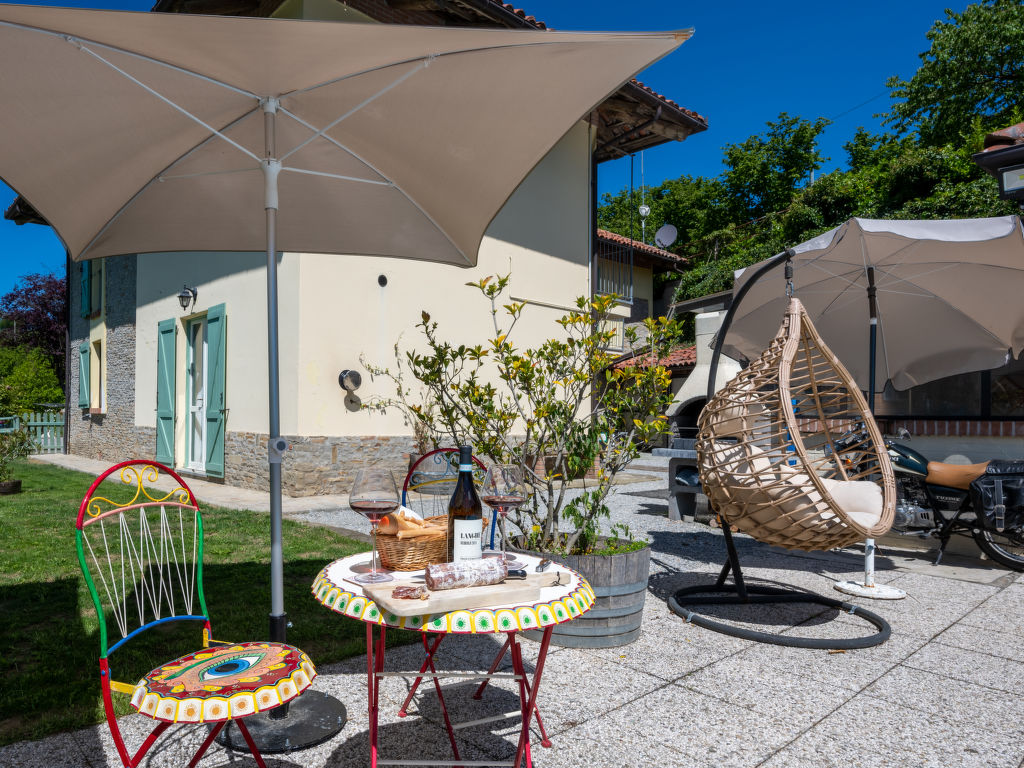 Gemütlich auf Weingut Landhaus "La Lepre Danzante", auf 2 Stockwerken. 7 km vom Zentrum von Borgomale, 1.5 km vom Zentrum von Benevello, 12 km vom Zentrum von Alba. Zur Mitbenutzung: Grundstück 3'500 m2 (eingezäunt), Terrassengarten mit Rasen, Naturgarten, Schwimmbad (14 x 6 m, 130 - 280 cm tief, saisonale Verfügbarkeit: 01.Mai.-15.Okt.). Dusche/WC im Poolbereich, Aussendusche, Parkplatz (für 4 Autos) auf dem Grundstück. Einkaufsgeschäft 600 m, Supermarkt 1.5 km, Bahnstation "Alba" 12 km. Der Besitzer akzeptiert keine Jugendgruppen. Ab Hof Verkauf von bäuerlichen Produkten. Bitte beachten: Besitzer wohnt in separatem Hausteil. Eigentümer hat einen Hund.
