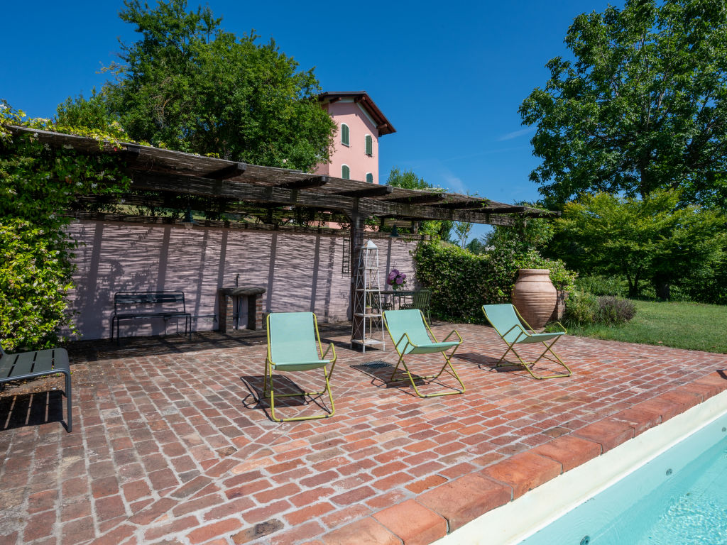 Das Landhaus CASA BRIC DEL VENTO, das zu einem ca. 10 ha großen Anwesen gehört, steht in idyllischer Lage auf einem Hügelrücken mit herrlicher Sicht auf den alten Ortskern von Soglio, die angrenzenden hauseigenen Weinberge und auf die Seealpen. Ortsmitte Soglio 3 km. Zufahrt ca. 600 m über ansteigende, schmale Straße. Ferngesteuertes Einfahrtstor. Parkplatz. Ein Hausteil wird als Ferienhaus vermietet, ein zweiter, kleinerer Hausteil bleibt verschlossen. Auf Wunsch Weinprobe und Verkauf von hauseigenen Weinen. Rund um das Haus ca. 3000 m² großer umzäunter, gepflegter Garten in leichter Hanglage mit Weinreben, Obstbäumen, Rasenflächen und bunten Blumenbeeten. Unterhalb des Hauses schön gelegener Pool (13 x 6 m, 1,20-2,20 m tief, 01.05.-15.10.) mit Liegestühlen und Sonnenliegen zur alleinigen Nutzung. Ca. 20 m2 große Poolterrasse mit Bastmatten-Pergola, Essplatz und Sommerküche (Kochfeld, Kühlschrank). Außendusche. Dusche/WC. Am Ferienhaus möblierte Terrasse unter berankter Pergola, seitlich des Hauses weitere Terrasse mit Essplatz. Außengrill. Tischtennis, Trampolin, Basketballkorb. Stilvolle, gute Einrichtung mit geschmackvollen Landhausmöbeln, teils mit Antiquitäten. Angenehme Wohnatmosphäre. Ziegelsteindecken. Cotto- und Holzdielenböden. Sat-TV (deutsche Programme). Internetzugang (WLAN, inklusive). Stereoanlage. Waschmaschine. Alarmanlage. Gas-Zentralheizung. Hinweis: Rauchen ist im Haus nicht gestattet. Der Besitzer akzeptiert keine Jugendgruppen.