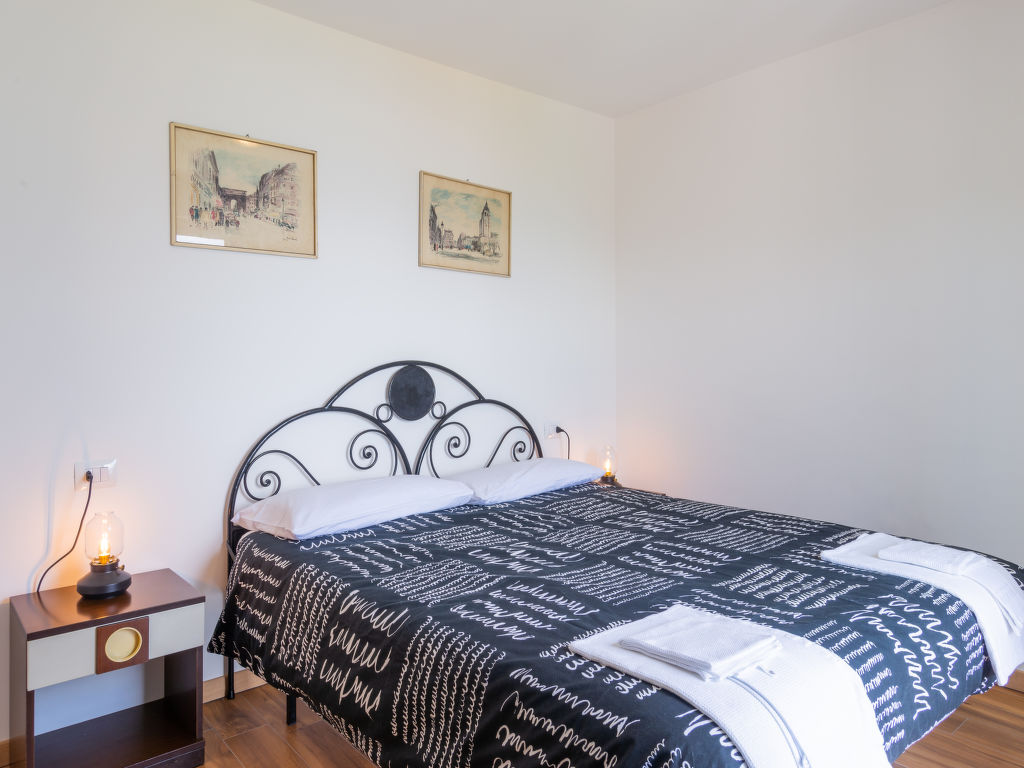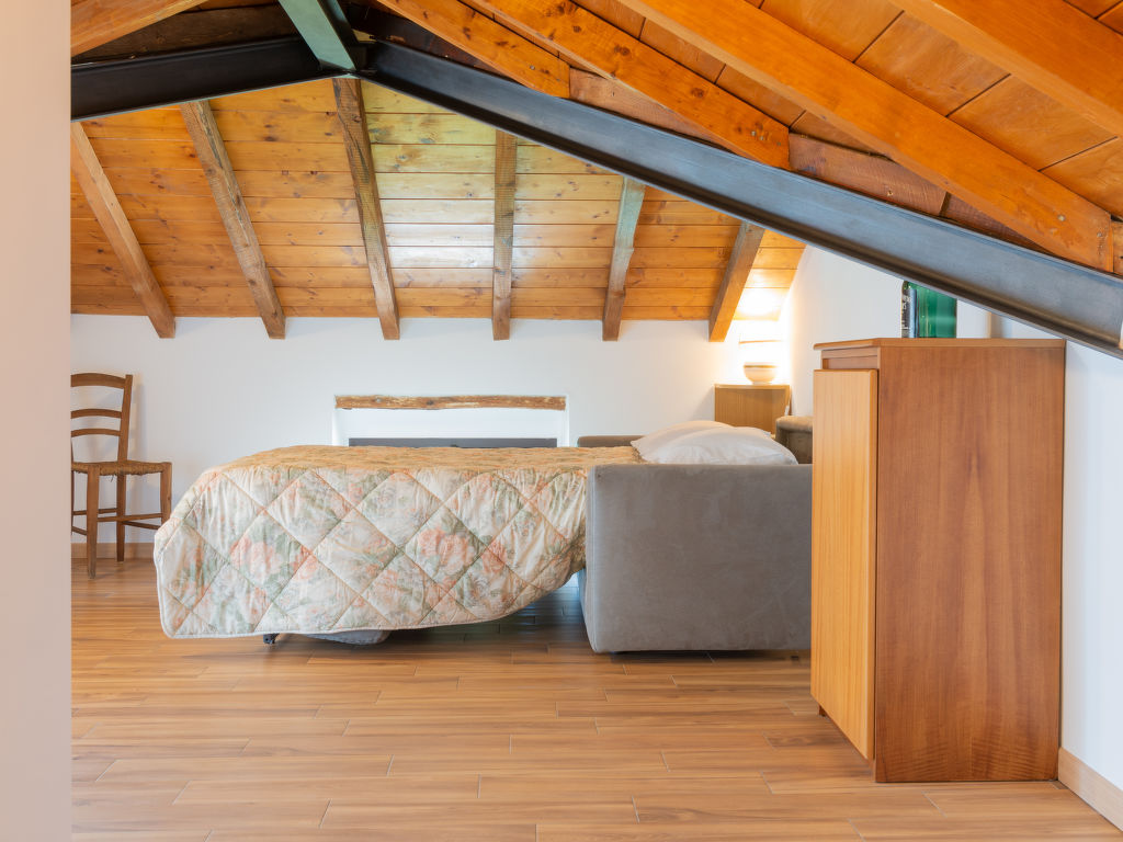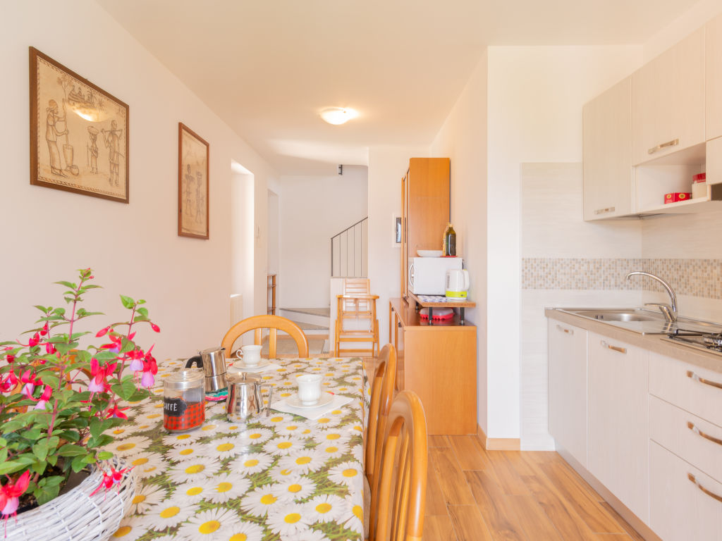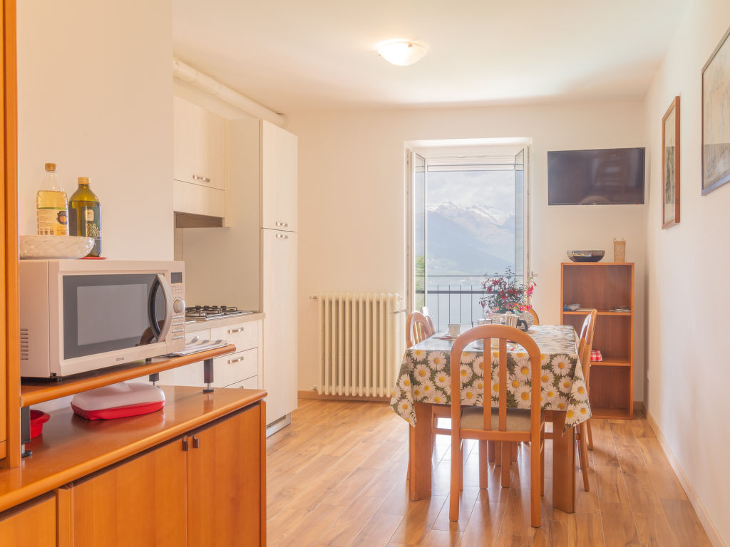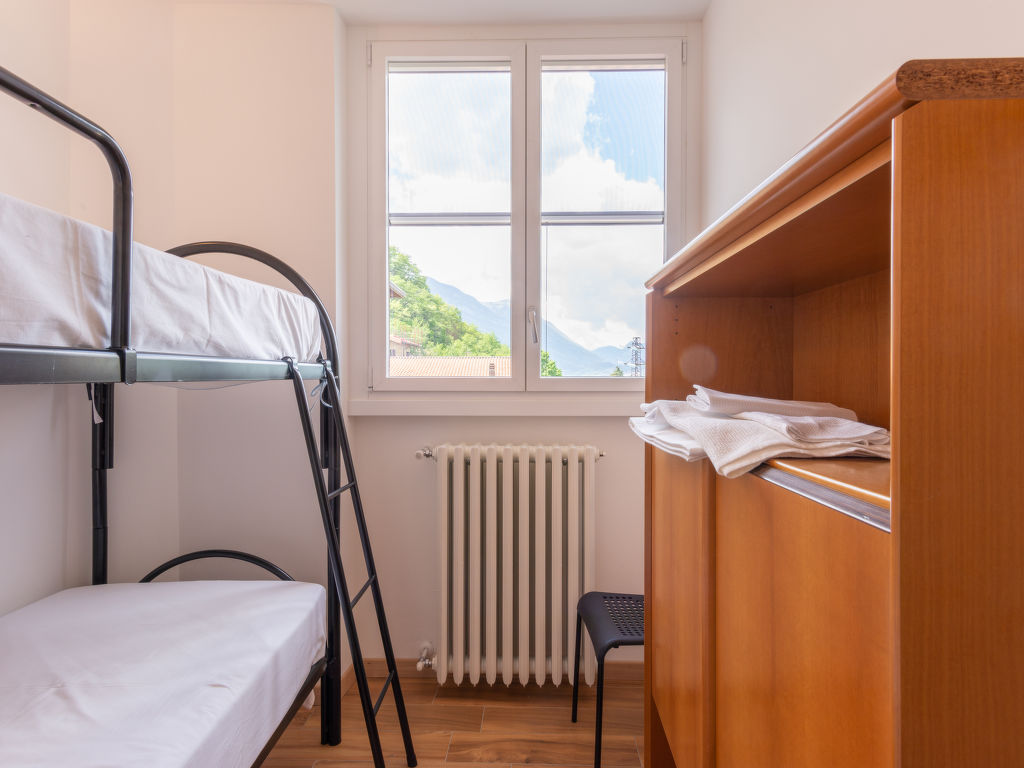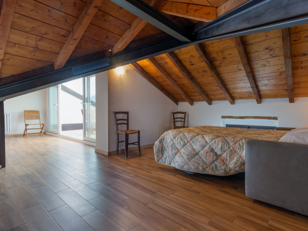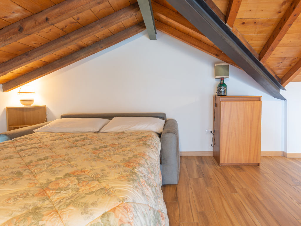 "Alloro", 4-Zimmer-Wohnung auf 2 Stockwerken im 2. Stock. Geräumig und hell, komfortabel eingerichtet: 2. Obergeschoss: 1 Doppelzimmer mit 1 Doppelbett. Ausgang zum Balkon. 1 Zimmer mit 1 x 2 Etagenbetten. Wohnküche (4 Kochplatten, Geschirrspüler, Toaster, Wasserkocher, Mikrowelle, Tiefkühler) mit Esstisch, Sat-TV. Ausgang zum Balkon. Dusche/WC. Dachgeschoss: 1 offenes Zimmer, ohne Schrank mit 1 Doppeldiwanbett. Ausgang zur Terrasse. Sep. WC. G-Heizung. Balkon 6 m2, Terrasse 10 m2. Balkonmöbel, Liegestühle (2). Herrliche Sicht auf den See und die Berge. Zur Verfügung: Babybett bis 2 Jahre. Internet (Wireless LAN, gratis). Bitte beachten: Nichtraucher-Unterkunft. CIR: 097067-CNI-00086