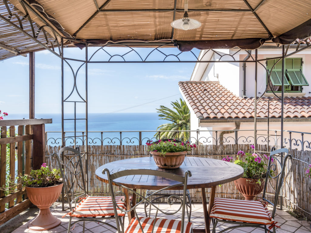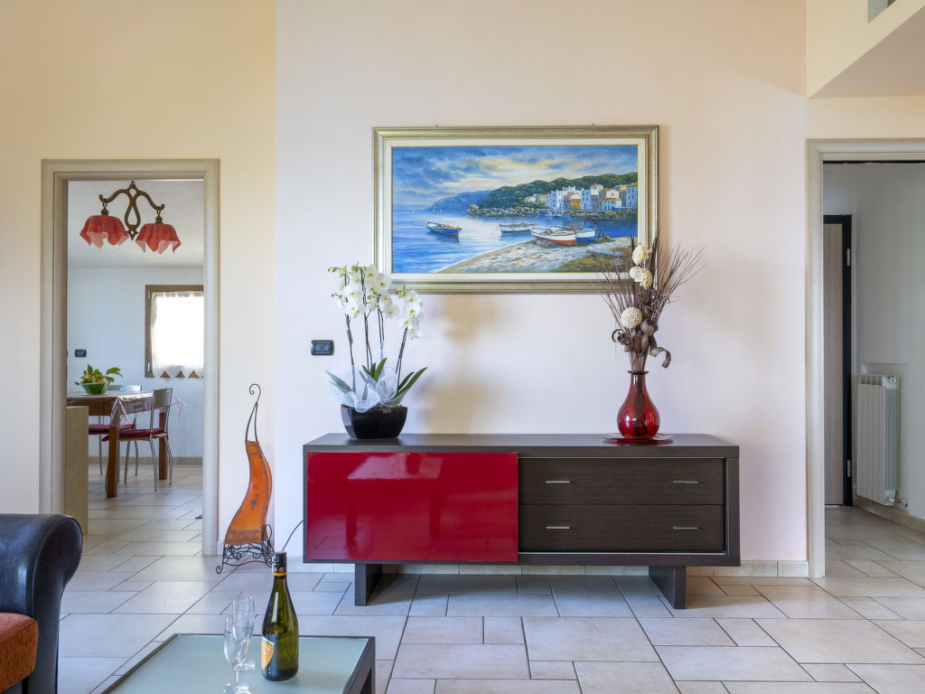 "Ginestra (VMA110)", 3-Zimmer-Wohnung 74 m2 im 2. Stock. Hell, modern und geschmackvoll eingerichtet: Wohnzimmer mit Sat-TV, DVD, E-Heizung und Klimaanlage. Ausgang zum Balkon. 2 Zimmer, jedes Zimmer mit 1 franz. Bett (160 cm). Küche (Backofen, Geschirrspüler, 4 Flammen, Toaster, Wasserkocher, Tiefkühler) mit Esstisch. Dusche/Bidet/WC. G-Heizung. Kleiner Balkon 5 m2, grosse Terrasse 20 m2 teilweise überdacht, Garten, Rasen, Laube. Terrassenmöbel, Balkonmöbel, Gartengrill (mobil), Liegestühle (2), Abstellkammer. Herrliche Panoramasicht auf das Meer, die Landschaft und die Bucht. Zur Verfügung: Waschmaschine, Bügeleisen. Internet (Wireless LAN, gratis). Bitte beachten: Nichtraucher-Unterkunft. Eigener Eingang. CITRA: 008065-LT-0112