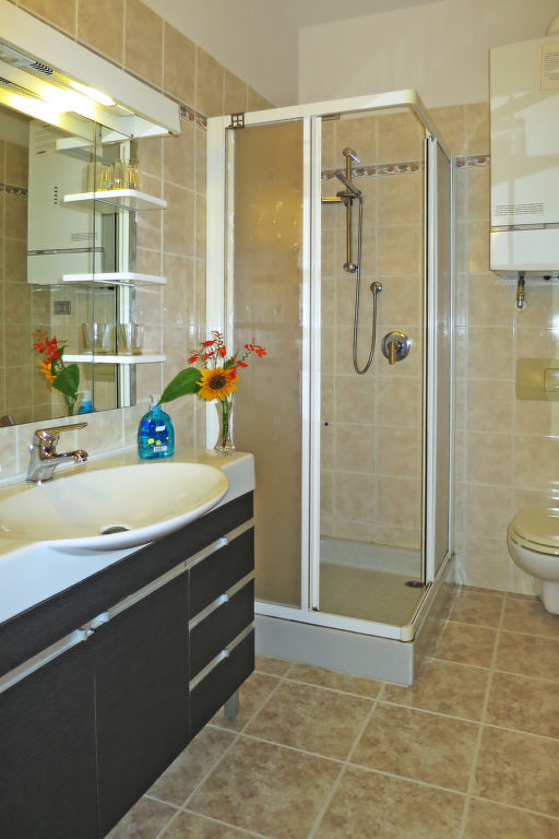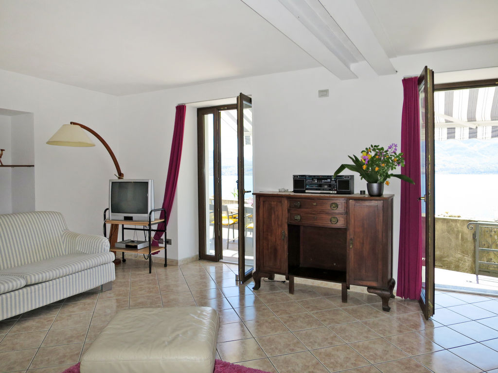 "della Nonna (CNR120)", 3-Zimmer-Wohnung 70 m2, im Erdgeschoss, Ostlage. Hell, renoviert, schön eingerichtet: Wohn-/Schlafzimmer mit 1 Diwanbett, Sat-TV, Internationale TV-Sender und CD. Ausgang zur Terrasse. 1 Zimmer mit 1 Doppelbetten. Ausgang zur Terrasse. 1 Zimmer mit 2 Betten. Offene Küche (4 Kochplatten, Backofen, Mikrowelle, Tiefkühler, elektrische Kaffeemaschine) mit Esstisch. Dusche/WC. G-Heizung. Heizung nur verfügbar von 15.10. bis 01.05. Terrasse. Terrassenmöbel, Liegestühle (2). Panoramasicht auf den See. Zur Verfügung: Kinderhochstuhl, Babybett bis 2 Jahre. Bitte beachten: Nichtraucher-Unterkunft. Maximal 1 kleines Haustier/Hund erlaubt. Eigener Eingang. CIR: 10301600034