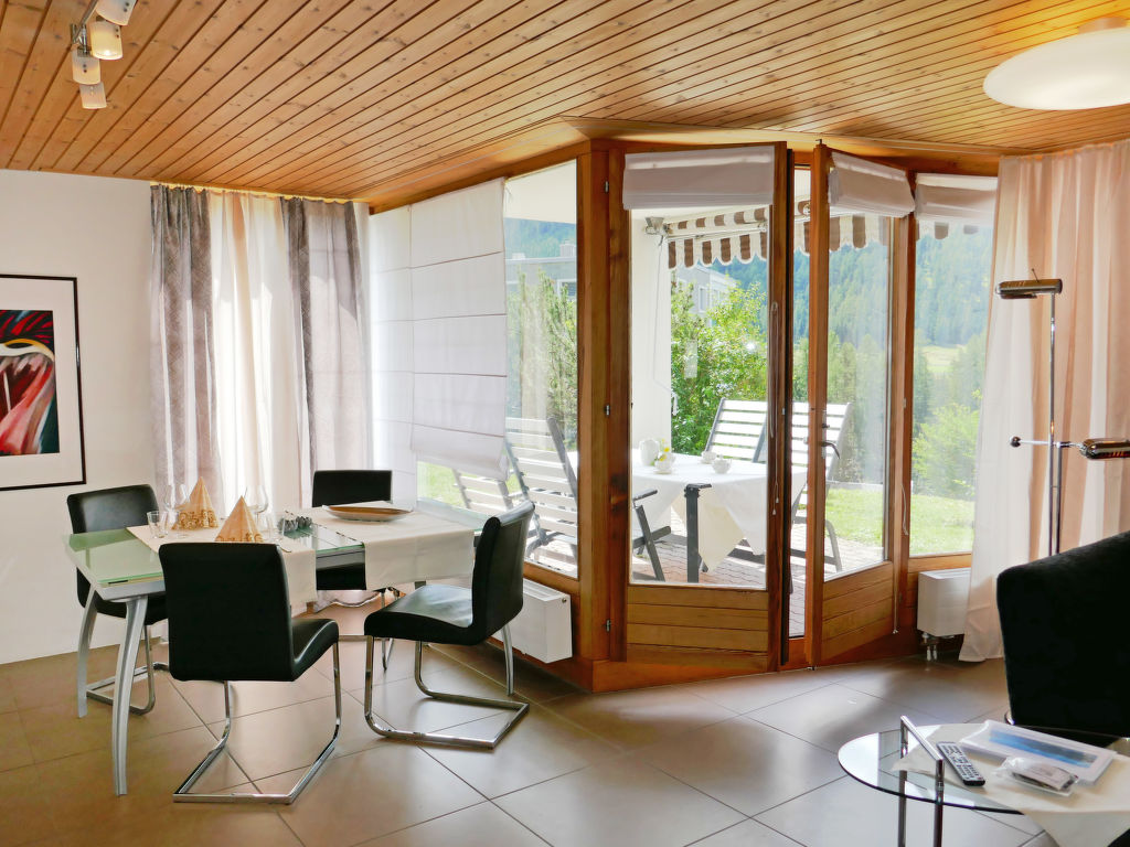 "Chesa Piz Cotschen", 2-Zimmer-Wohnung 45 m2, im Erdgeschoss. Hell, schön und modern eingerichtet: Wohn-/Esszimmer mit 1 Doppeldiwanbett (1 x 140 cm, Länge 200 cm) (2 Pers.), Esstisch und TV. Ausgang zum Gartensitzplatz, Richtung Süden. 1 Zimmer mit 1 Doppelbett. Küche (Backofen, Geschirrspüler, 4 Glaskeramikherd Platten, Toaster, Wasserkocher, elektrische Kaffeemaschine, Kapseln für die Kaffeemaschine (Nespresso) extra). Bad/WC. Heizung. Grosser Gartensitzplatz. Terrassenmöbel. Schöne Sicht auf die Berge und die Landschaft. Zur Verfügung: Haartrockner. Internet (Wireless LAN, gratis). Garage Nr. W2, Höhe 150 cm, Breite 200 cm. Bitte beachten: Nichtraucher-Unterkunft, Nichtraucher-Haus. :grössere Fahrzeuge müssen in einem gebührenpflichtigen öffentlichen Parkplatz im Ort parkiert werden.