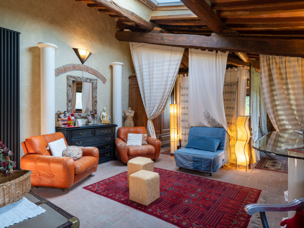 Landsitz "Le Buche", umgeben von Feldern. 5 km vom Zentrum von Pelago, 7 km vom Zentrum von Pontassieve, 30 km vom Zentrum von Firenze. Zur Mitbenutzung: Grundstück 10'000 m2 (eingezäunt), gepflegter Garten mit Rasen und Bäumen. Zur Alleinbenutzung: Aufstellpool (9 x 4 m, 01.05.-30.09.). Rutschbahn, Aussendusche, Poolpflege durch den Besitzer/Gärtner. Koch möglich (extra). Halbpension auf Anfrage (extra). 1.8 km lange holprige Zufahrt (Naturweg). Parkplatz auf dem Grundstück. Supermarkt 2 km, Bahnstation "Pontassieve" 7 km. Reitstall 8.5 km. Bitte beachten: Der Besitzer wohnt im selben Haus. Eigentümer hat einen Hund.