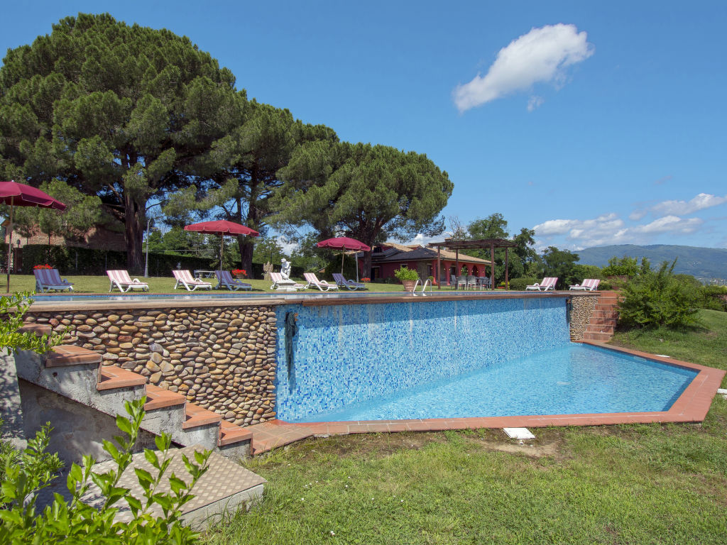 Sehr schöne Villa "Villa Taioli". 1 km vom Zentrum von Montecarlo, 5 km vom Zentrum von Pescia, 16 km vom Zentrum von Lucca, 50 km vom Meer. Zur Alleinbenutzung: Garten 4'000 m2 (eingezäunt) mit Rasen, Schwimmbad (15 x 8 m, 140 cm tief, 25.04.-10.10.). Kinderbecken, Aussendusche, Terrasse, Gartenmöbel. 100 m lange Zufahrt (Naturweg). Parkplatz auf dem Grundstück. Supermarkt 2 km, Restaurant 600 m, Bahnstation "Altopascio" 6 km, Sandstrand "Viareggio" 50 km.