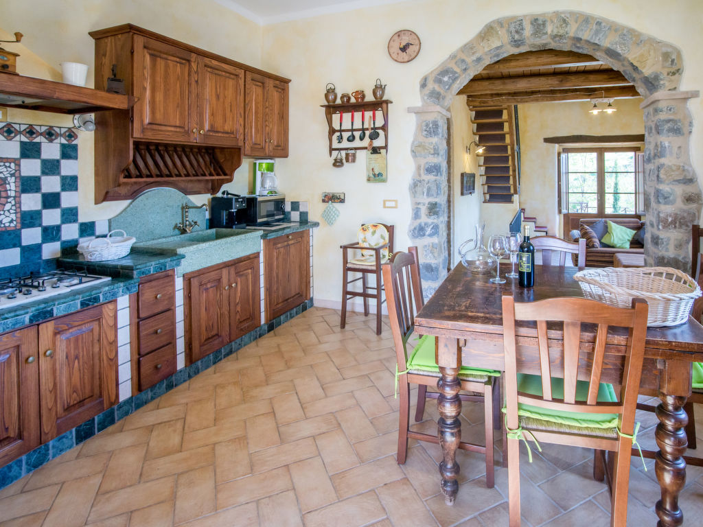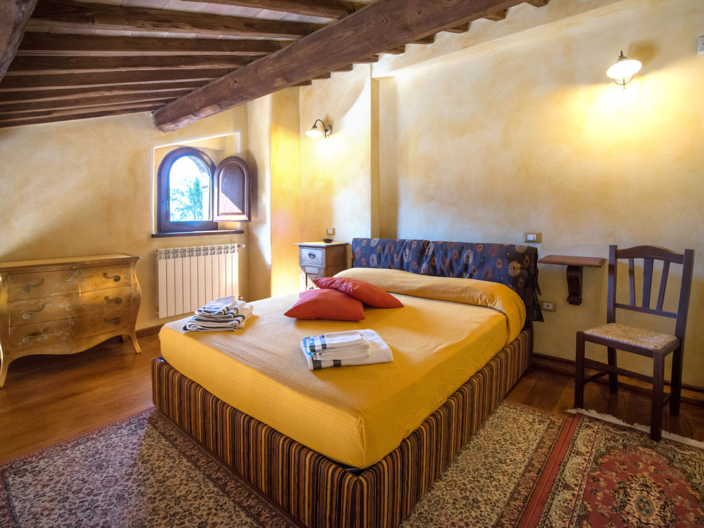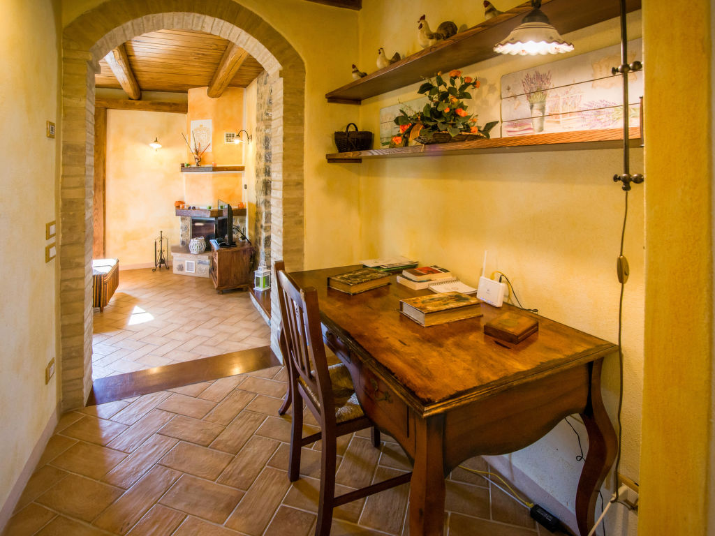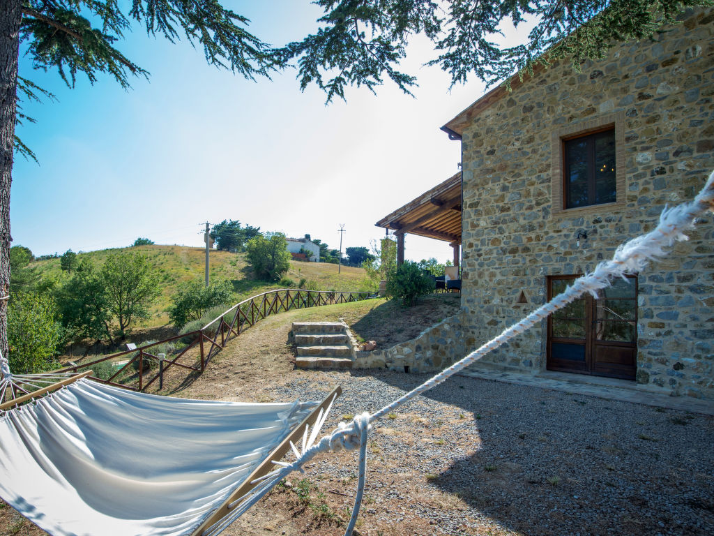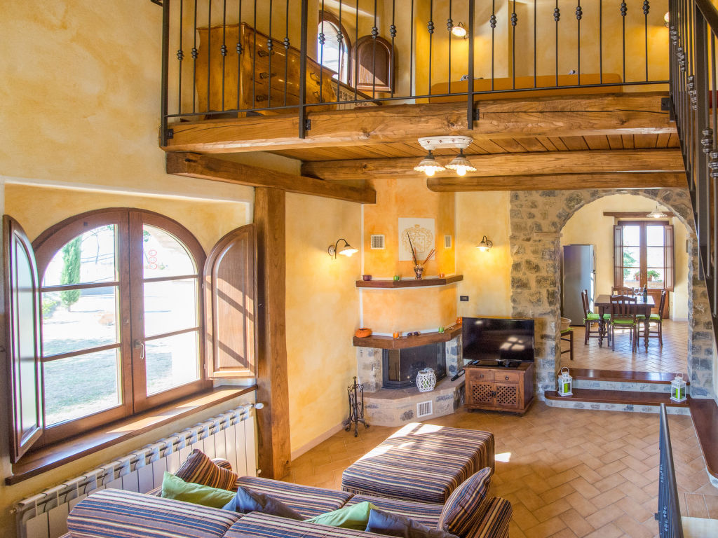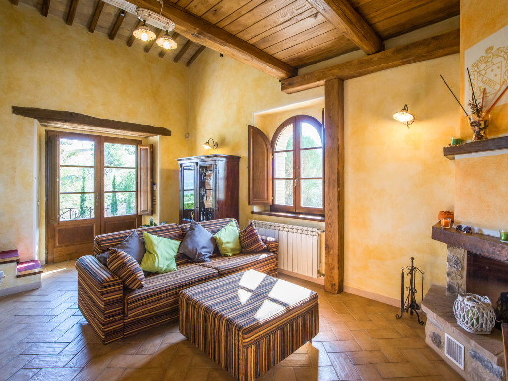 "Villa al Sole", 4-Zimmer-Haus 135 m2 auf 2 Stockwerken. Geschmackvoll und gemütlich eingerichtet: Wohnzimmer mit offenem Kamin, Sat-TV, Radio und CD. Ausgang zur Terrasse. 1 Zimmer mit 1 franz. Bett (160 cm). Ausgang zur Terrasse. 1 Zimmer mit 1 franz. Bett (160 cm). 1 Zimmer mit 2 Betten. Offene Küche (Backofen, Geschirrspüler, 5 Flammen, Toaster, Wasserkocher, Mikrowelle, Tiefkühler, elektrische Kaffeemaschine) mit Esstisch. Ausgang zur Terrasse. Bad/Bidet/WC, Dusche/Bidet/WC, Whirlbadewanne. Obergeschoss: abgeschrägte, offene Galerie mit 1 franz. Bett (160 cm), Dusche/Bidet/WC. G-Heizung. Grosse Terrasse überdacht, kleine Terrasse überdacht. Terrassenmöbel, Gartengrill, Liegestühle, Abstellkammer. Herrliche Sicht auf das Tal, die Landschaft, den Wald und Val d'Orcia, Monte Amiata. Zur Verfügung: Waschmaschine, Safe, Fliegengitter, Kinderhochstuhl, Babybett. Internet (Wireless LAN, gratis). Bitte beachten: Nichtraucher-Unterkunft. Maximal 1 Haustier/Hund erlaubt.