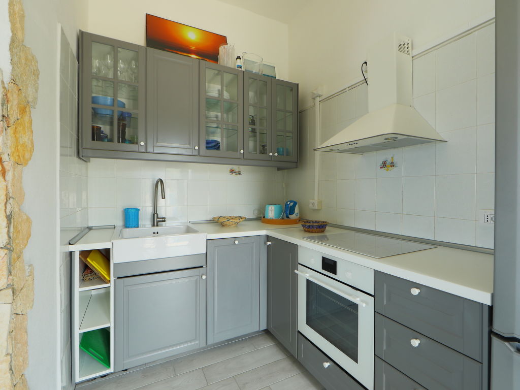 3-Zimmer-Haus 75 m2. Komfortabel und gemütlich eingerichtet: Wohn-/Esszimmer mit TV (Flachbildschirm). 2 Doppelzimmer. Wohnzimmer. Offene Küche (4 Kochplatten, Backofen, Geschirrspüler, Tiefkühler). Dusche/Bidet/WC. Klimaanlage. Parkettböden. Grosse Terrasse 60 m2, Terrasse 30 m2. Terrassenmöbel, Liegestühle. Sehr schöne Panoramasicht auf das Meer. Zur Verfügung: Waschmaschine. Internet (Wireless LAN, gratis). 1 Haustier/Hund erlaubt.