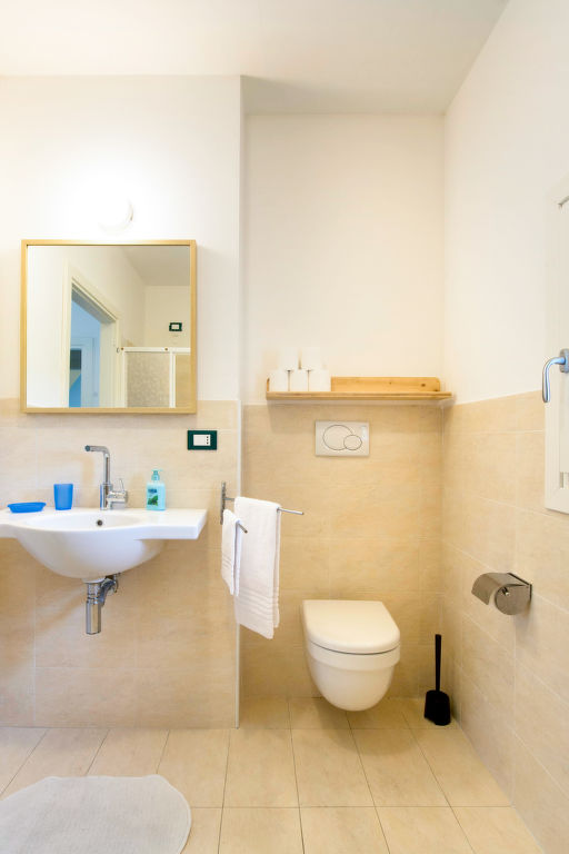 "Ea Bianca (BSA213)", 4-Zimmer-Wohnung 75 bis 85 m2. Modern und geschmackvoll eingerichtet: Wohn-/Schlafzimmer mit 1 Doppeldiwanbett, Esstisch und TV. 1 Zimmer mit 1 Doppelbett. 2 Zimmer, jedes Zimmer mit 2 Schlafmöglichkeiten. Kochnische (Backofen, Geschirrspüler, 4 Flammen). 2 Duschen/WC. Heizung, Klimaanlage. Balkon oder Terrasse. Balkonmöbel. Zur Verfügung: Waschmaschine, Kinderhochstuhl, Babybett (extra). Maximal 1 kleines Haustier/Hund erlaubt.