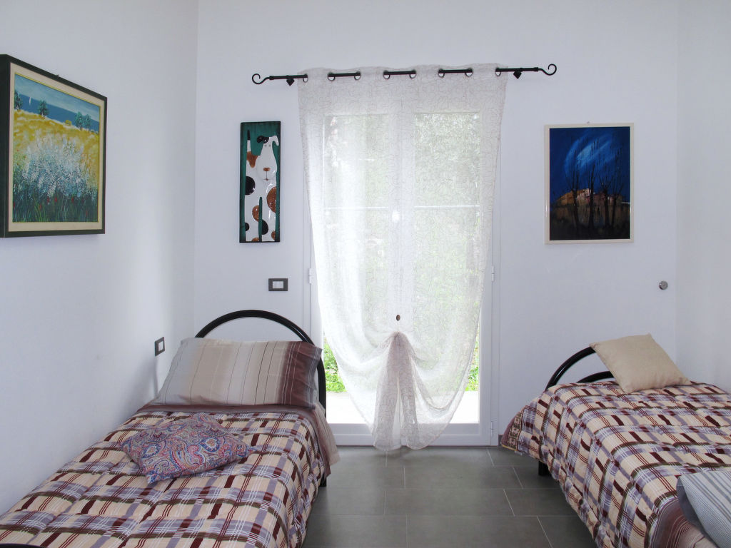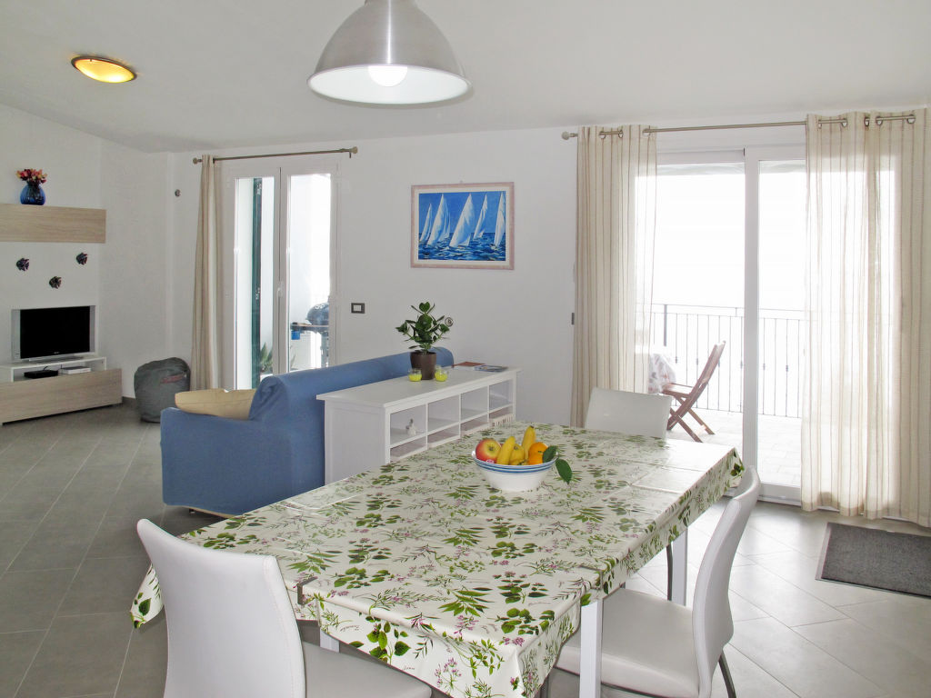 "La Perla del Mediterraneo", 3-Zimmer-Haus 60 m2. Hell, modern und stilvoll eingerichtet: Wohn-/Schlafzimmer mit 1 Doppeldiwanbett (Länge 180 cm), Esstisch, Sat-TV, Radio, CD, E-Heizung und Klimaanlage. Ausgang zur Terrasse. 1 Zimmer mit 1 franz. Bett (160 cm). Ausgang zur Terrasse. 1 Zimmer mit 2 Betten (80 cm). Ausgang zur Terrasse. Offene Küche (Backofen, Geschirrspüler, 4 Flammen, Toaster, Wasserkocher, Mikrowelle, Tiefkühler, elektrische Kaffeemaschine). 2 Duschen/WC. Terrasse, Gartensitzplatz. Terrassenmöbel, Gartengrill (mobil), Liegestühle (4). Herrliche Sicht auf das Meer. Zur Verfügung: Waschmaschine, Bügeleisen, Kinderhochstuhl, Babybett. Internet (Wireless LAN, gratis). Bitte beachten: Nichtraucher-Unterkunft. CITRA: 008017-LT-0015