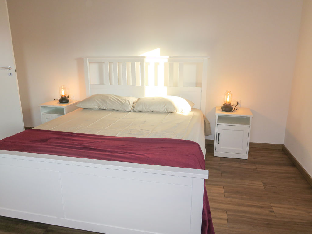 "Casa di Nonno", 3-Zimmer-Haus 120 m2. Geräumig, stilvoll eingerichtet: Wohn-/Schlafzimmer mit 1 Doppeldiwanbett und Sat-TV. Ausgang zum Garten. Grosse Küche (Backofen, Geschirrspüler, 4 Induktionskochplatten, Tiefkühler) mit Esstisch. Dusche/WC. Obergeschoss: 1 Doppelzimmer. 1 Zimmer mit 2 Betten. Dusche/WC. Fussbodenheizung. Balkon. Liegestühle (2). Zur Verfügung: Waschmaschine, Fliegengitter, Kinderhochstuhl, Babybett bis 2 Jahre. Internet (Wireless LAN). Parkplatz. Bitte beachten: Nichtraucher-Haus. Das Erdgeschoss ist für Rollstuhlfahrer geeignet.